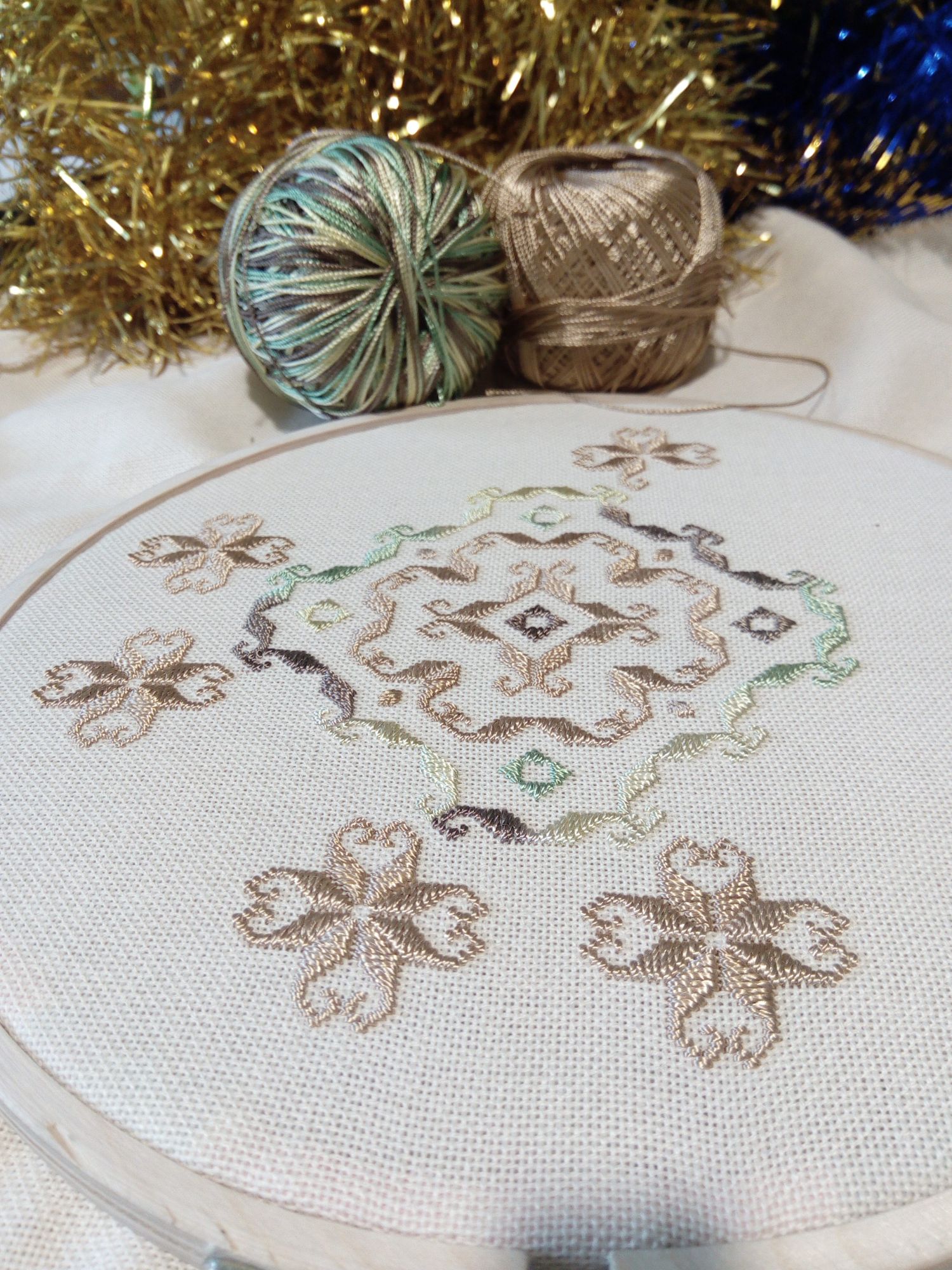 1 декабря 2019 Отчет! Первый день зимы, праздника очень хочется! И хочется уже пару недель как! Поэтому встречайте, новые процессы! 1. OwlForest Embroidery, С РОЖДЕСТВОМ! Уж эти флажки я не пропущу, промелькнуло в голове, как только я увидела новинку от Совиного леса! Схема была приобретена немедленно, а вот с тканью пришлось понервничать. Но подготовка завершена, все у меня в руках и немедленно начато! А тут еще на работе из окна открывается вот такой вид. Погода правда, была нелетная для фото, но не ждать же в конце концов солнца, при том, что у нас в Беларуси в году всего 80 солнечных дней в году (в среднем) И, похоже, практически весь запас уже выбран. Будет/процесс! / Это для понимания, какого же цвета основа Почти все материалы по ключу. Желтый заменила на более яркий , а серебрянный металлик от DMC на крейник тот который разноцветнвй, но возможно будет и просто перламутровый, он на фото рядышком. Им я попробовала сделать блэкворк в нижней завитушке буквы. Ну и для создания праздничного настроения! 2. Подушка в технике хардангер. Это тоже процесс, сам вырвавшийся на волю. Видимо ему было суждено случиться. Собственно только их я сейчас и двигаю. В какой-то неосознанной тоске подушечка была сначала нарисована, вроде и без далеко идущих планов. А потом все так сложилось, что схема очень вовремя родилась! Будет/процесс И праздничное настроение! Остальное пока тихонько отдыхает и ждет благосклонного взгляда вдохновения. 3. Бисер. Но покажу еще одну мелочь в прямом и переносном смысле. Маленький бисерный жгутик. Практически чокер. Связан из бисера №15. Здесь чех+тохо. Неплохо они подружились, кстати. Получилась универсальная и нежная штуковина. Так как внутрь вставлена мемори-проволока, то хранит идеальные формы. Всем лугкого дыхания предстоящих празников! махно, Надежда Минск, sette venerdi и 38 других сказали спасибо Поделиться сообщением Ссылка на сообщение
