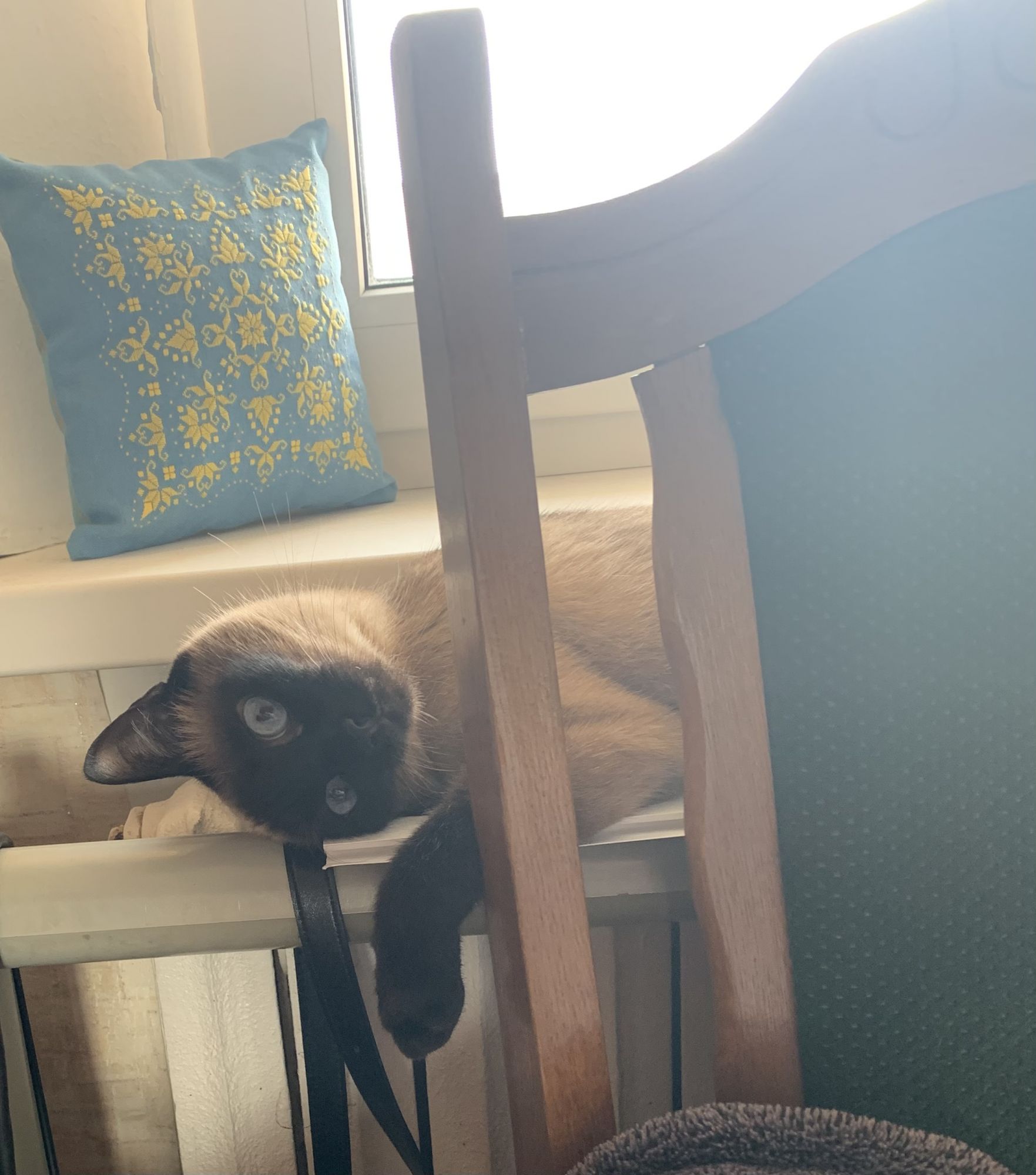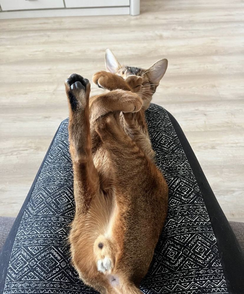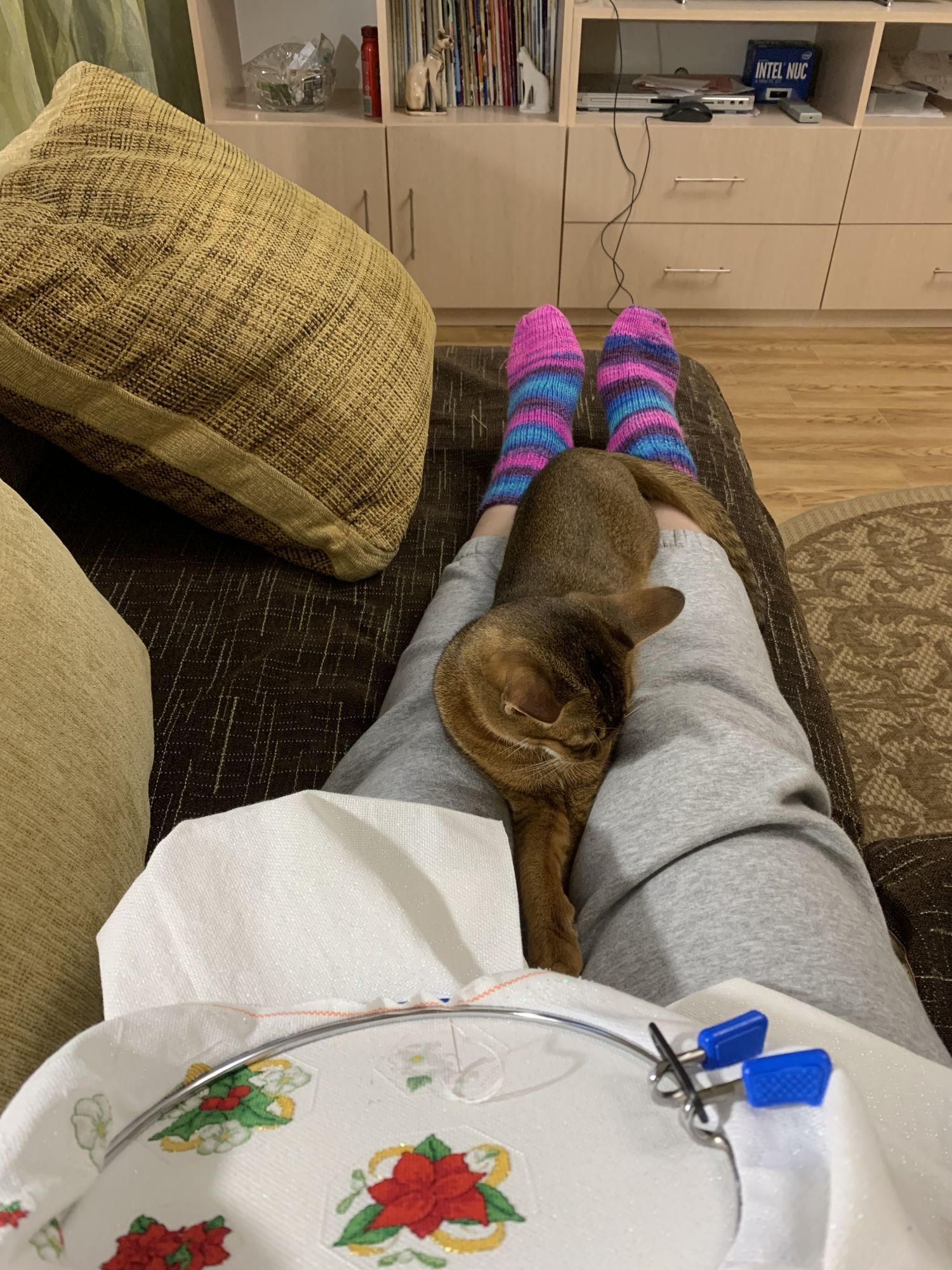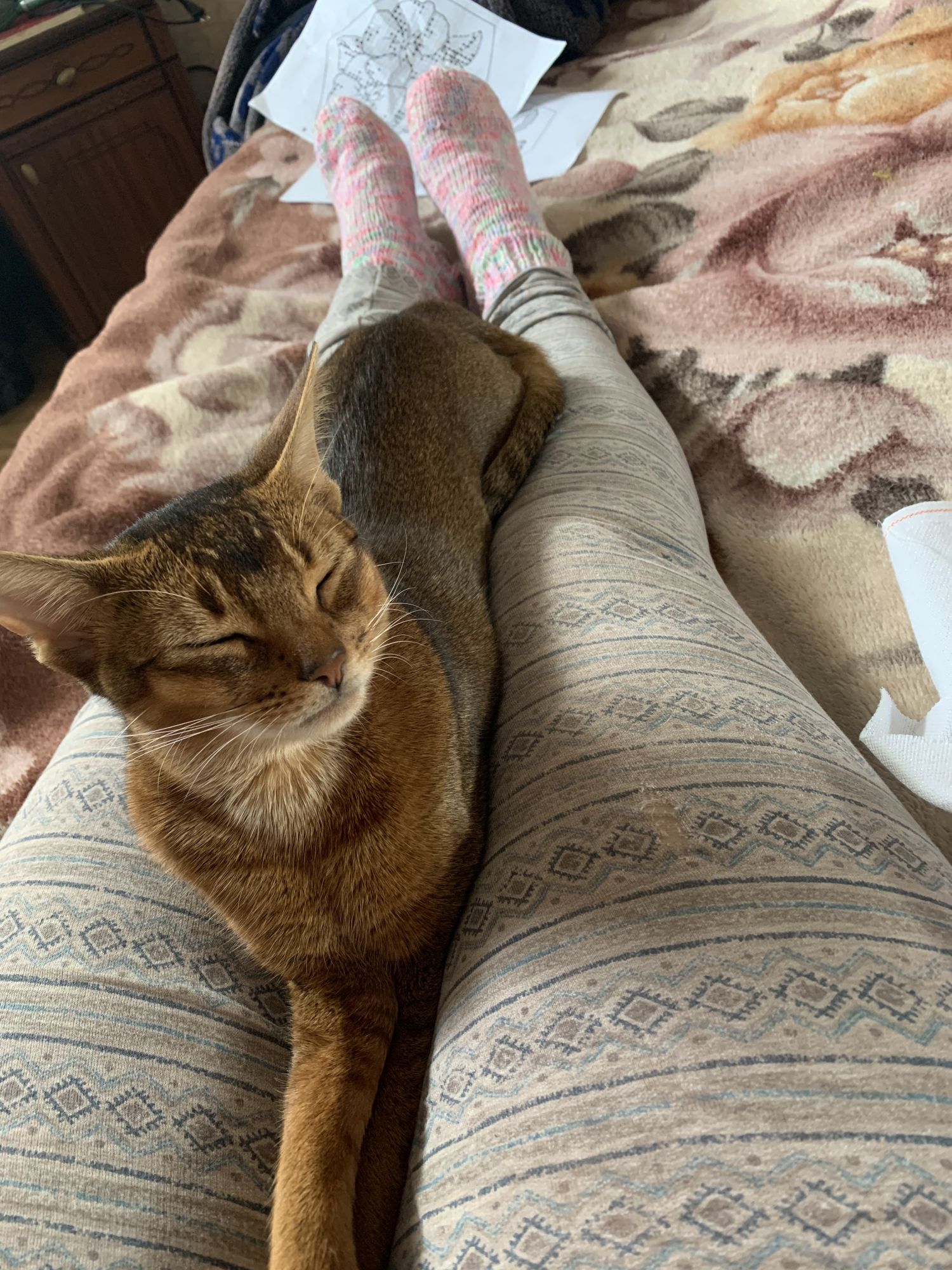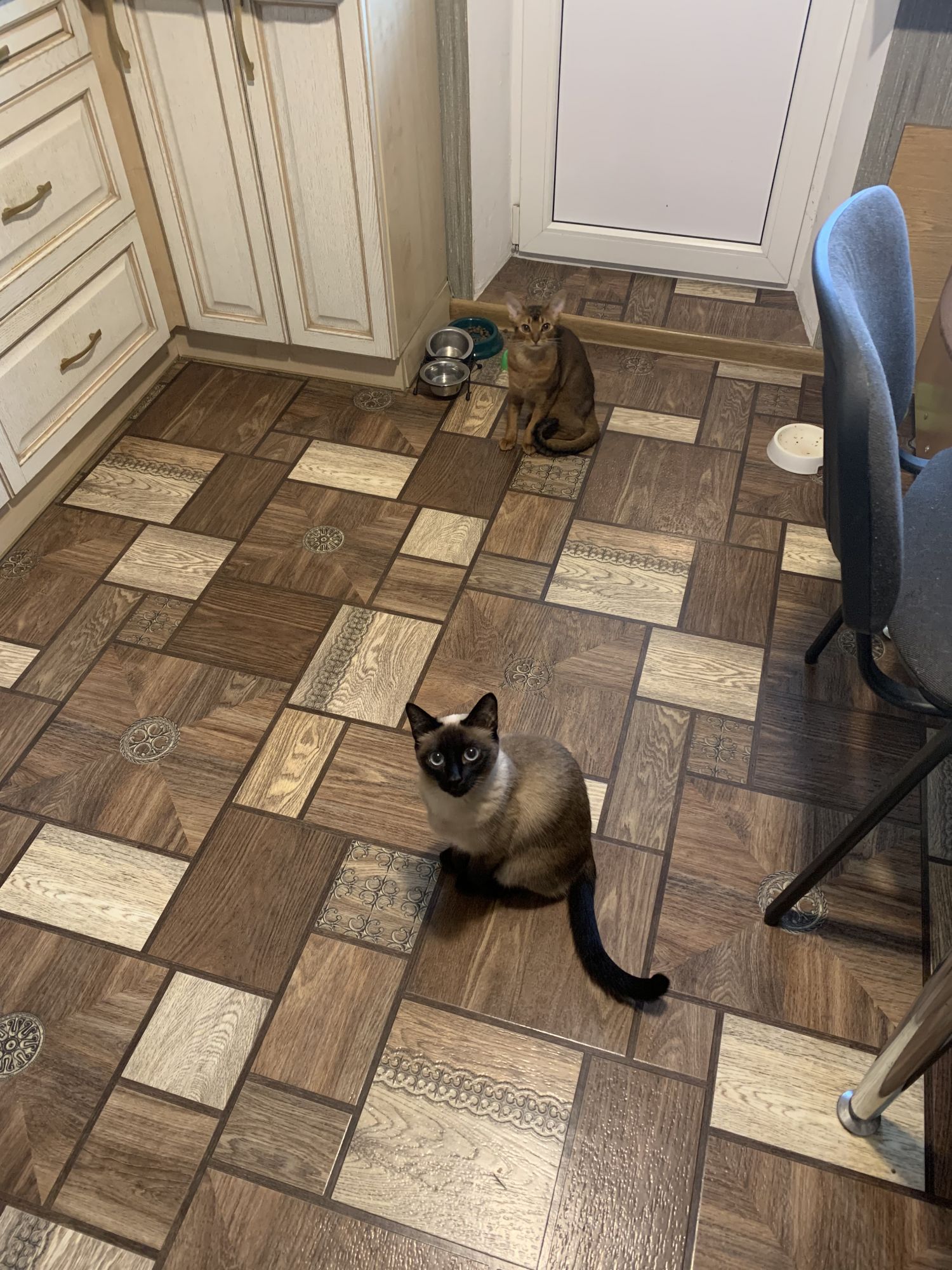 28 марта 2022 Котенька девушка уже взрослая, сильно не меняется. Исключительно в пределах, природой очерченных. Вот, например, может притвориться квадратной А вообще, как выросла горделивой сиамской с чуть ориентальным профилем, так и держится. В меру ленива, в меру игрива, в меру ласкова, но исключительно к хозяевам и членам семьи. Причём, мои старшие дети в этот круг не включены ибо с нами не проживают, бывают редко. А тут так получилось, что дочь приехала на пожить, да целый месяц. И привезла Бублика. Очаровательного семимесячного обалдуя абиссинской породы. Игруна, лишенного чувства самосохранения и страха , как следствие вышеназванного дефекта. Да ещё и с хроническим чувством голода, не зависящим от того, как давно и сытно его кормили. Он просто самый голодный кот на свете. Ну, ещё и самый наглый. У него есть и более приличные фото, но эта характеризует его полнее. Притирались они друг к другу долго. Котя притиралась. Бублик радостно жил и осваивал новую территорию. Дрались, конечно, но обошлось без кровавой резни бензопилой в Техасе. В общем, все выжили и приспособились. В обычное время Котя более-менее гоняла Бублика, на время кормежки приходилось их разделять, так как тут у Бобла пропадало всякое понятие о берегах, и единственное, что его заботило, невозможность есть из двух мисок одновременно. Он бросал свою, бежал к Костиной, возвращался обратно, рыча, урча и матерясь одновременно. Котя была в ахере и предпочитала удалиться. Пришлось кормить по очереди. При открытии двери на кухню, Бублик немедленно врывался, перепрыгивая через уже находящуюся на выходе Котю и вылизывал ее миску дочиста. Я была довольна, пропала необходимость мыть котясь посуду. А вот с туалетом беда. При наличии своего у каждого, коты предпочитали «вражеский». Почему-то закапывание происходило с особым остервенением Прошу прощения за подробности. К концу марта мохнатые даже спали уже в одной комнате, но не вместе Бублик периодически претендовал на мамины колени И вот в эти выходные они уехали. Вика говорит, Бублик скучает. Котя оккупировала меня и наслаждается единоличным владением nogres, Lenara, Фро-J и 28 других сказали спасибо Поделиться сообщением Ссылка на сообщение