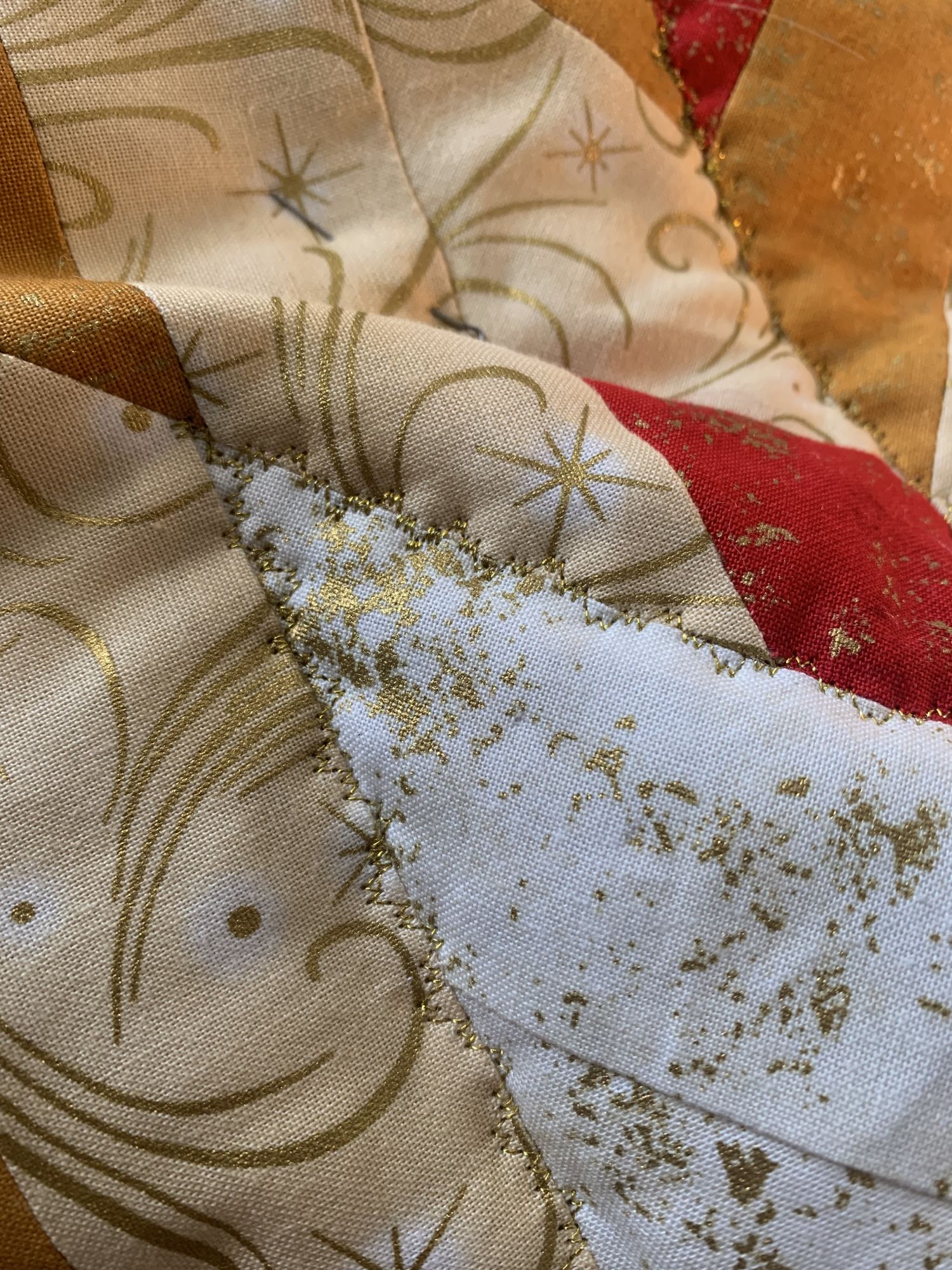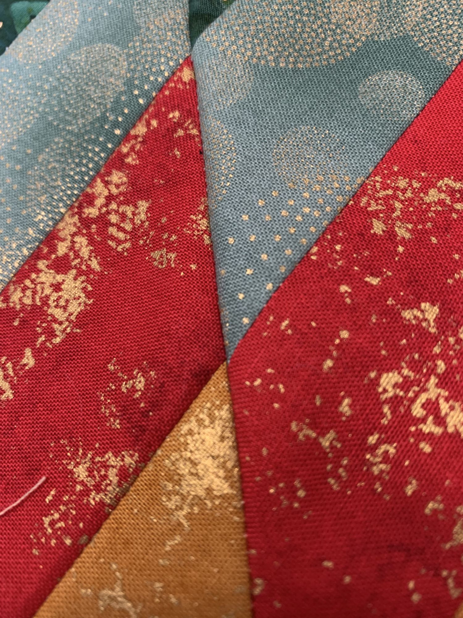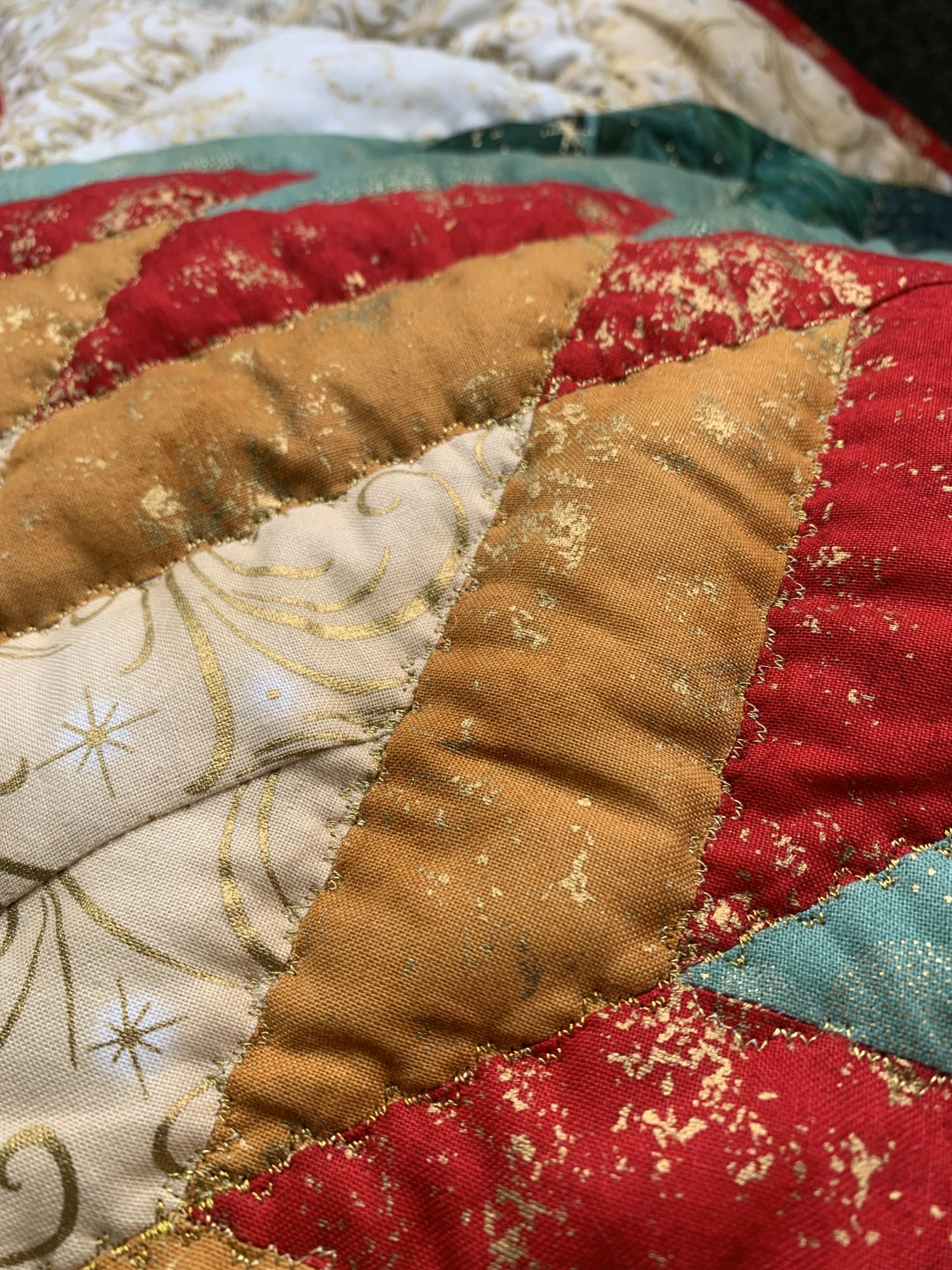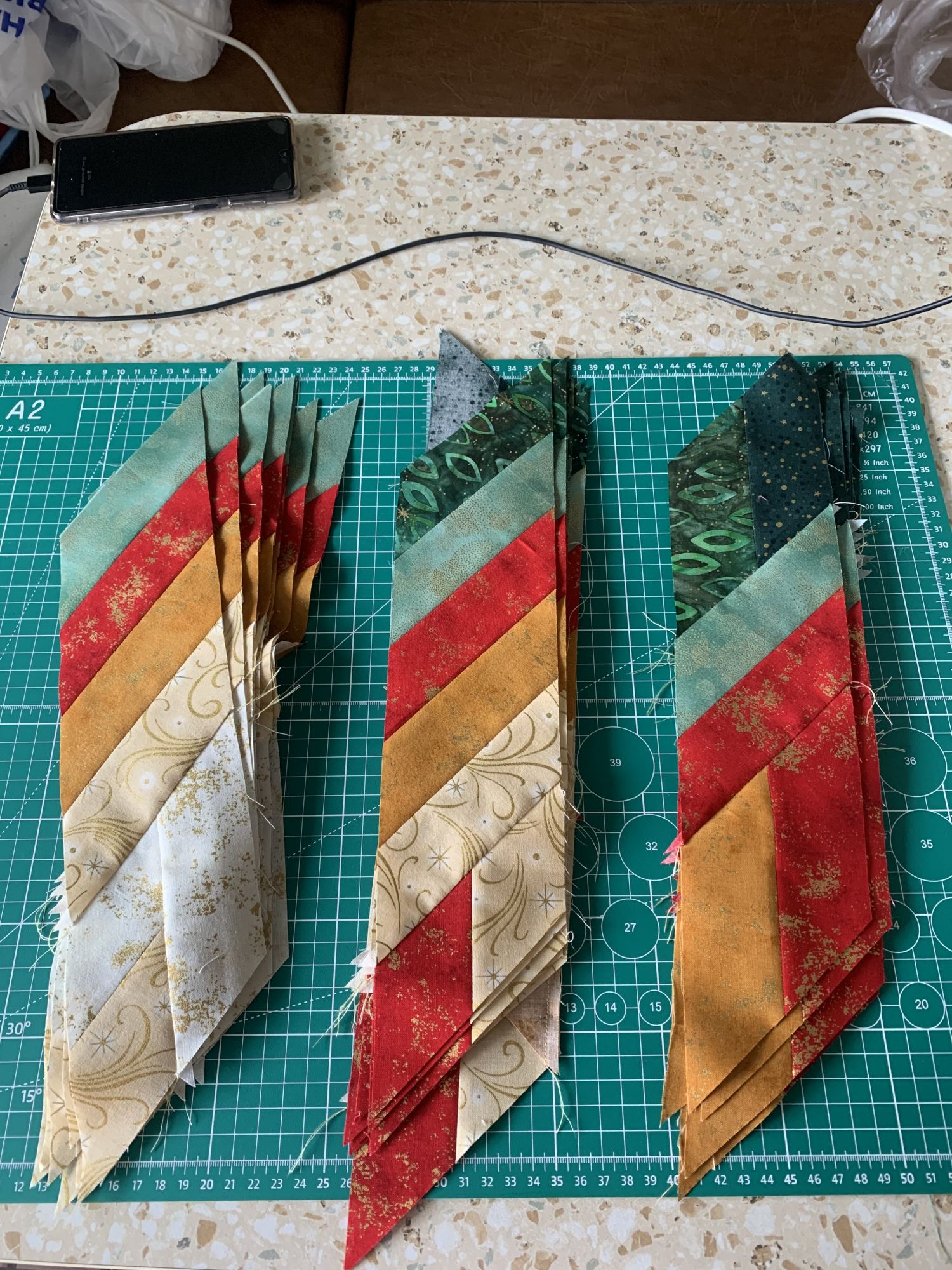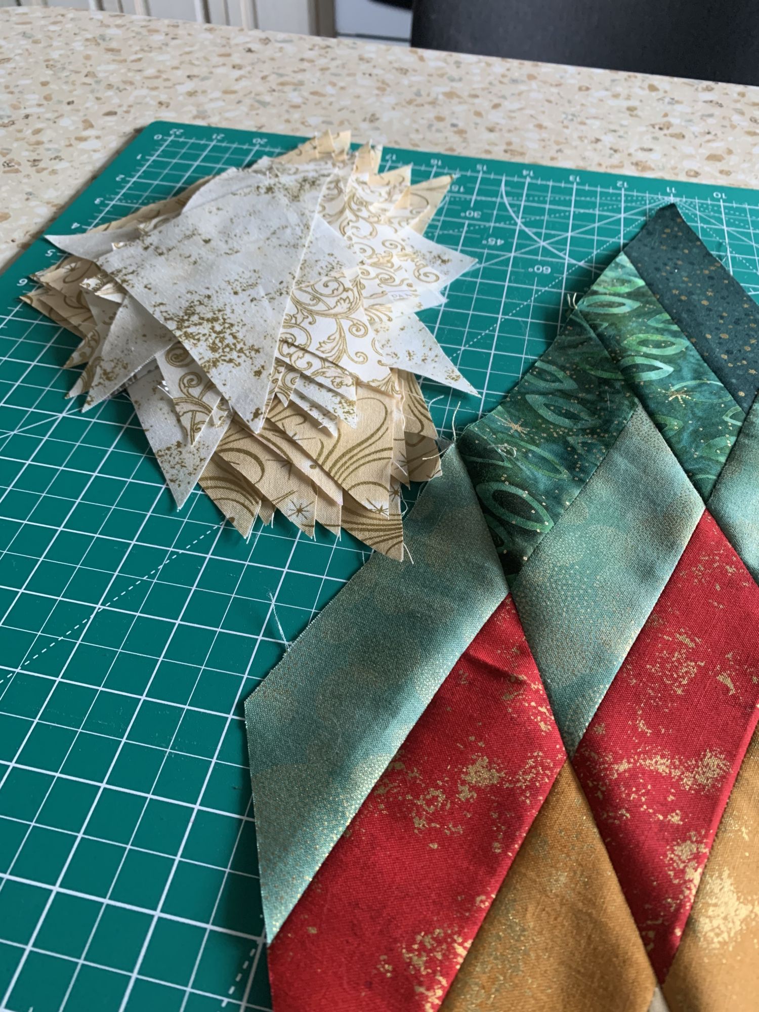 19 июня 2023 Отчет. 1. Пэчворк. Юбка под елку. Майский отчет я профилонила. А май ознаменовался уже традиционной поездкой в Питер за весенним солнышком, прогулками и дружескими посиделками. И была еще одна цель намечена и достигнута - посещение магазина с тканями для пэчворка. Ибо дорогие сестры во игле внемли моим воплям "хочувотэтотмастерклассссс!!!" и подарили мне МК по пошиву юбки под елку в стиле пэчворк. То, что юбку я не вышью я уже поняла, но кто мешает мне ее сшить, тем более в свете последнего моего увлечения. - это я в Питере хвастаюсь приобретениями. В Питере было еще много всякого интересного. Походов, поездок, музеев, но я вам не расскажу. И не потому, что я такая вредная, просто у меня это не очень получается. Покажу только наше с Аней @monstrochka селфи А вот как я шила юбку под елку - поделюсь! О! Это была еще та эпопея! И наполнена она была захватывающим разрезанием купленных тканюшек на тонкие полосочки шириной два дюйма, сшивание их, разглаживание, разрезание уже попарно или по три, или по четыре сшитых полоски под углом и снова сшивание. И так тридцать лет и три года! В итоге были собраны восемь вот таких ромбов . Из них и надо было собирать юбку. Вариантов было 3 Дальше в процессе примерки активное участие Котенька. А эти фото сделаны чисто с целью похвастаться, как ловко я совместила все швы , что, поверьте мне, автоматически никак не получается. Пришлось приложить усилия. После выбора варианта расположения ромбов пришло время вновь браться за кройку - между ромбами пространство пустым не оставишь. И новая примерка, как расположить нарезанное Для любопытных "вид сзади", изнанка и лицо в профиль Что ж, половина дела сделана! Впереди очередной интереснючий этап - стежка. Это когда делаешь бутерброд из сшитого из лоскуточков, синтепона и еще одного слоя ткани и прострачиваешь все это в разнообразных направлениях. Фигуры крутить ввиду отсутствия большого опыта и маленькой машинки я не стала. Пошла по простому пути. Иногда это самый верный вариант. Строчила по швам, но фигурной строчкой и люрексом. Кто ж знал, что его уйдет 4 катушки! Получилось Вот такое одеялко , которое предстояло обработать бейкой. - цвет бейки выбираю. Остановилась на красной. Итог - мне понравилось! Главный вывод - надо готовиться и все продумывать. Планы - хочу еще, но пока продумываю и готовлюсь . 2. Lanarte 34926 (8050), Pоза (Rosa Botanical). Только недавно вернулась к вышивке. Пока двигаю розу от Ланарте. Было / стало / Nadinka-Blondinka, Galagenka, pellbell и 26 других сказали спасибо Поделиться сообщением Ссылка на сообщение