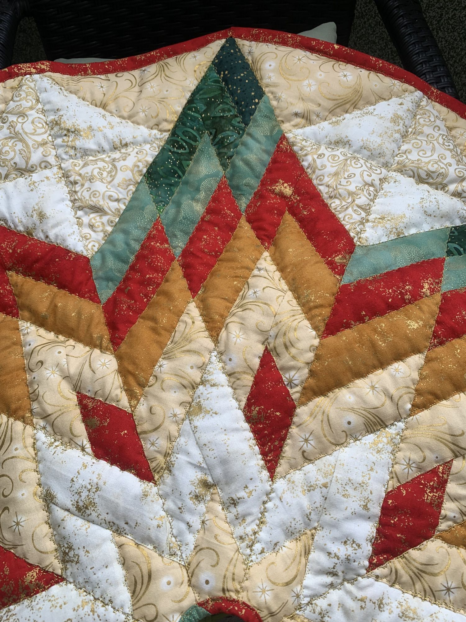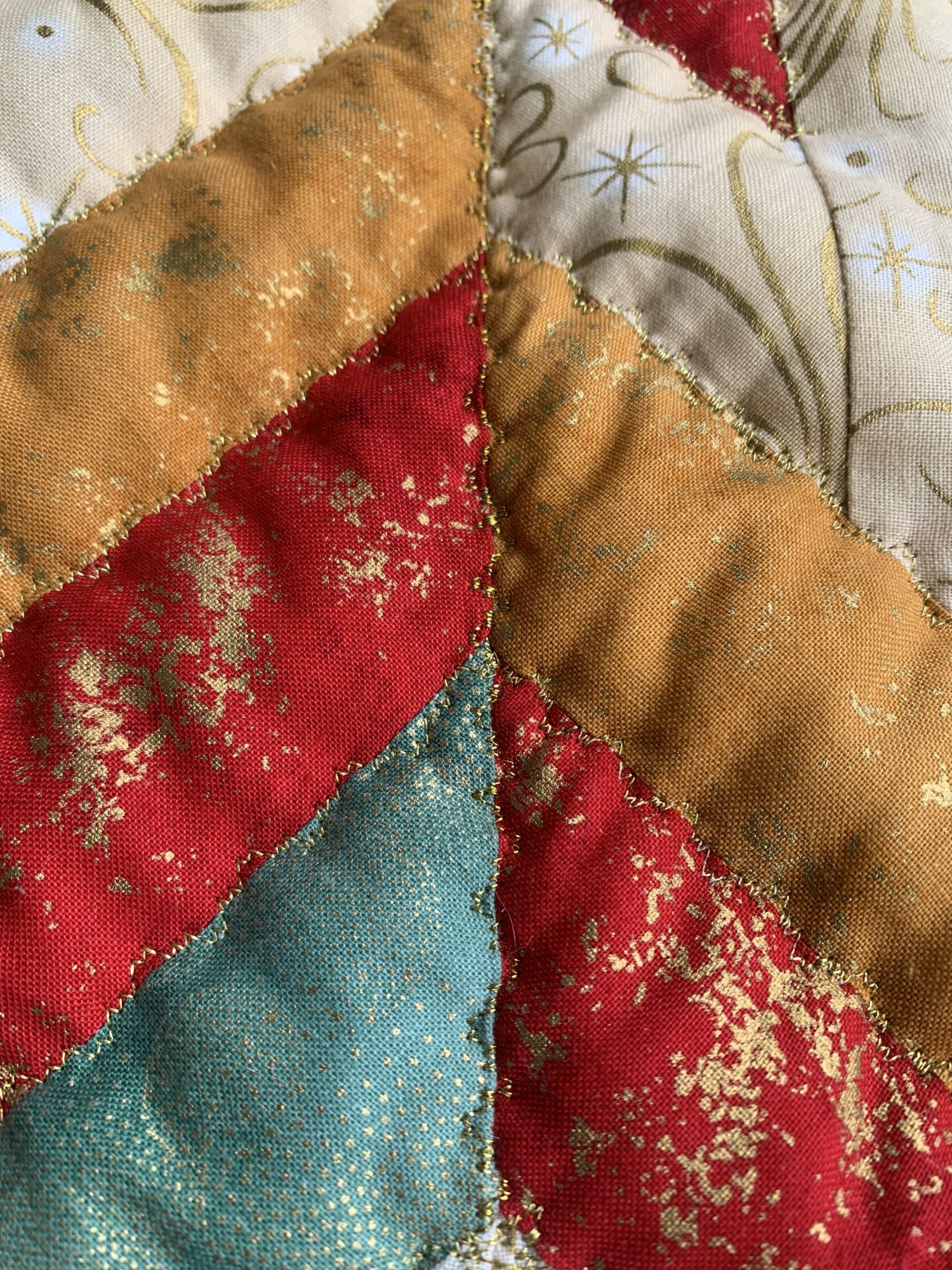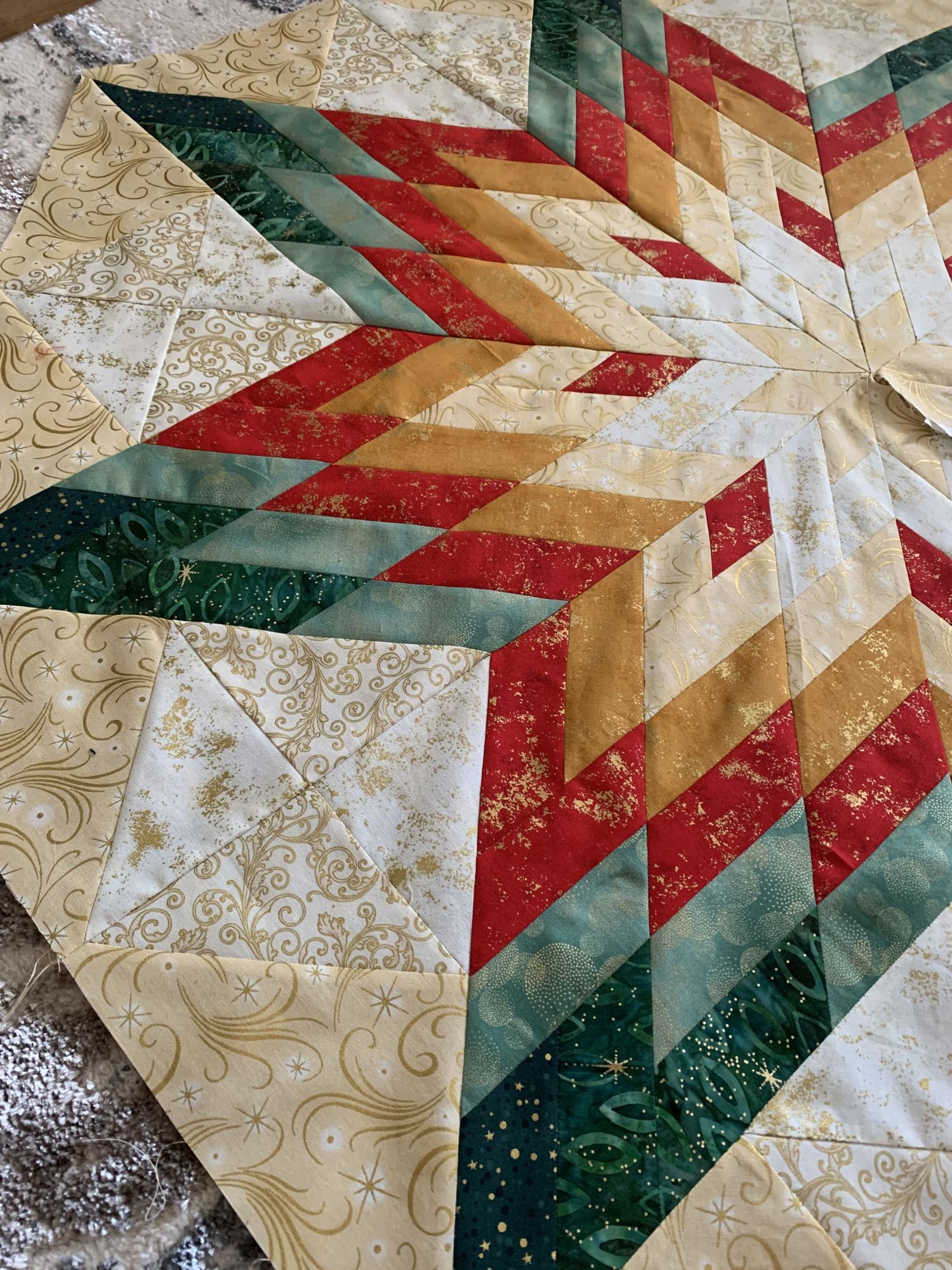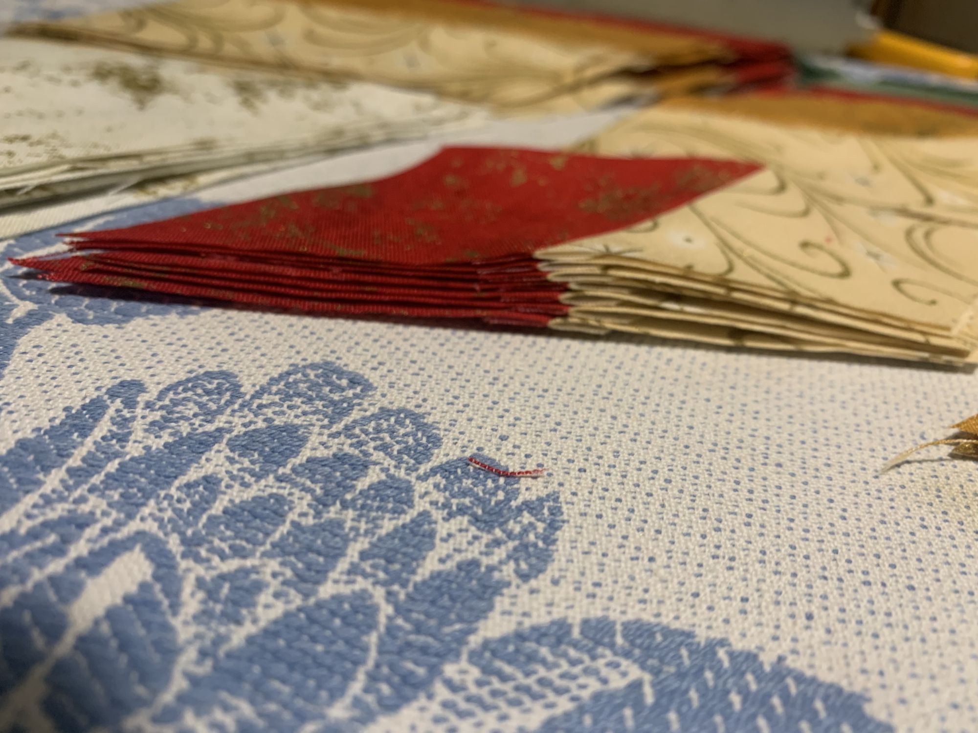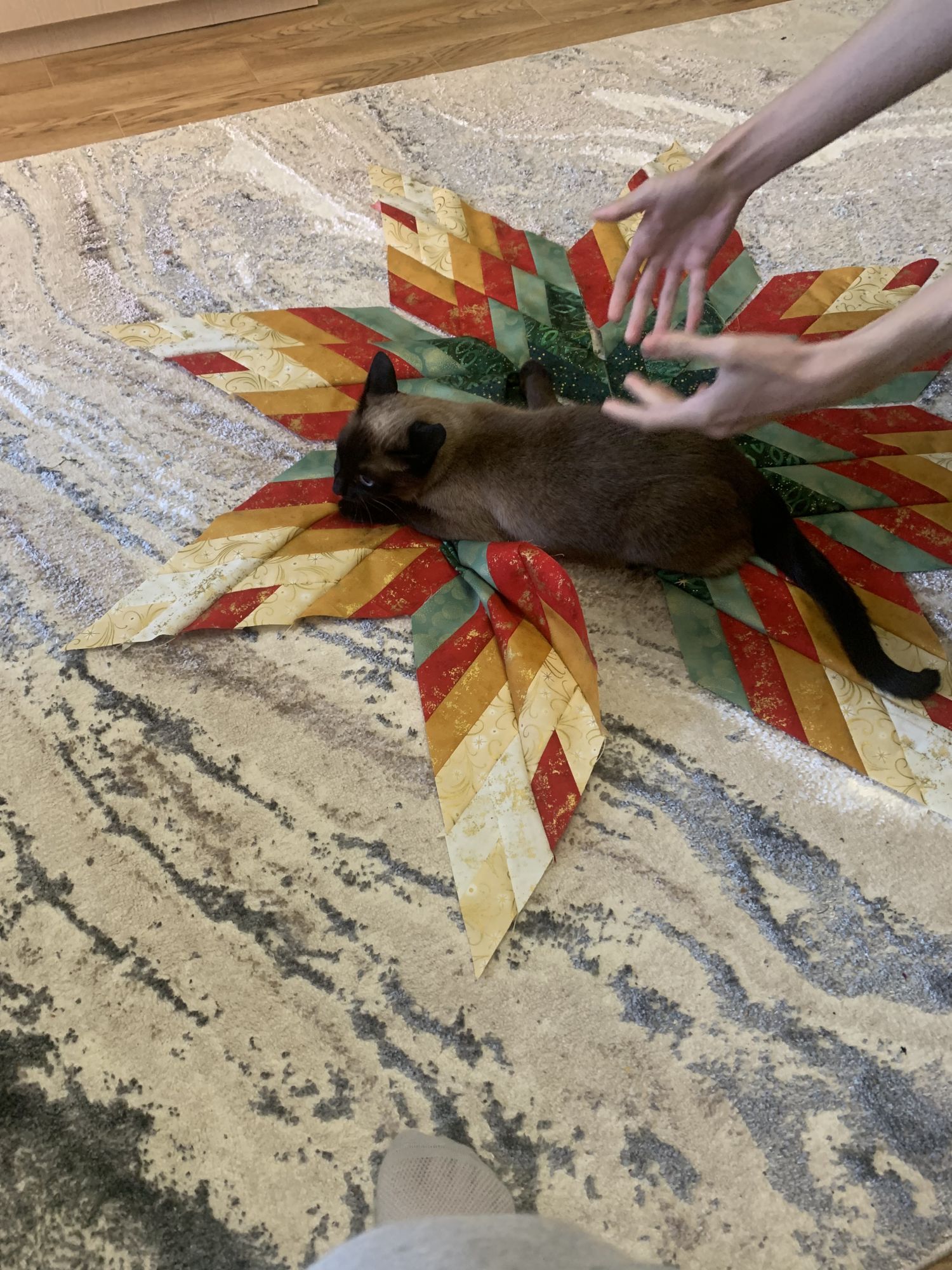 19 июня 2023 Отчет. 1. Пэчворк. Юбка под елку. Майский отчет я профилонила. А май ознаменовался уже традиционной поездкой в Питер за весенним солнышком, прогулками и дружескими посиделками. И была еще одна цель намечена и достигнута - посещение магазина с тканями для пэчворка. Ибо дорогие сестры во игле внемли моим воплям "хочувотэтотмастерклассссс!!!" и подарили мне МК по пошиву юбки под елку в стиле пэчворк. То, что юбку я не вышью я уже поняла, но кто мешает мне ее сшить, тем более в свете последнего моего увлечения. - это я в Питере хвастаюсь приобретениями. В Питере было еще много всякого интересного. Походов, поездок, музеев, но я вам не расскажу. И не потому, что я такая вредная, просто у меня это не очень получается. Покажу только наше с Аней @monstrochka селфи А вот как я шила юбку под елку - поделюсь! О! Это была еще та эпопея! И наполнена она была захватывающим разрезанием купленных тканюшек на тонкие полосочки шириной два дюйма, сшивание их, разглаживание, разрезание уже попарно или по три, или по четыре сшитых полоски под углом и снова сшивание. И так тридцать лет и три года! В итоге были собраны восемь вот таких ромбов . Из них и надо было собирать юбку. Вариантов было 3 Дальше в процессе примерки активное участие Котенька. А эти фото сделаны чисто с целью похвастаться, как ловко я совместила все швы , что, поверьте мне, автоматически никак не получается. Пришлось приложить усилия. После выбора варианта расположения ромбов пришло время вновь браться за кройку - между ромбами пространство пустым не оставишь. И новая примерка, как расположить нарезанное Для любопытных "вид сзади", изнанка и лицо в профиль Что ж, половина дела сделана! Впереди очередной интереснючий этап - стежка. Это когда делаешь бутерброд из сшитого из лоскуточков, синтепона и еще одного слоя ткани и прострачиваешь все это в разнообразных направлениях. Фигуры крутить ввиду отсутствия большого опыта и маленькой машинки я не стала. Пошла по простому пути. Иногда это самый верный вариант. Строчила по швам, но фигурной строчкой и люрексом. Кто ж знал, что его уйдет 4 катушки! Получилось Вот такое одеялко , которое предстояло обработать бейкой. - цвет бейки выбираю. Остановилась на красной. Итог - мне понравилось! Главный вывод - надо готовиться и все продумывать. Планы - хочу еще, но пока продумываю и готовлюсь . 2. Lanarte 34926 (8050), Pоза (Rosa Botanical). Только недавно вернулась к вышивке. Пока двигаю розу от Ланарте. Было / стало / Nadinka-Blondinka, Galagenka, pellbell и 26 других сказали спасибо Поделиться сообщением Ссылка на сообщение
