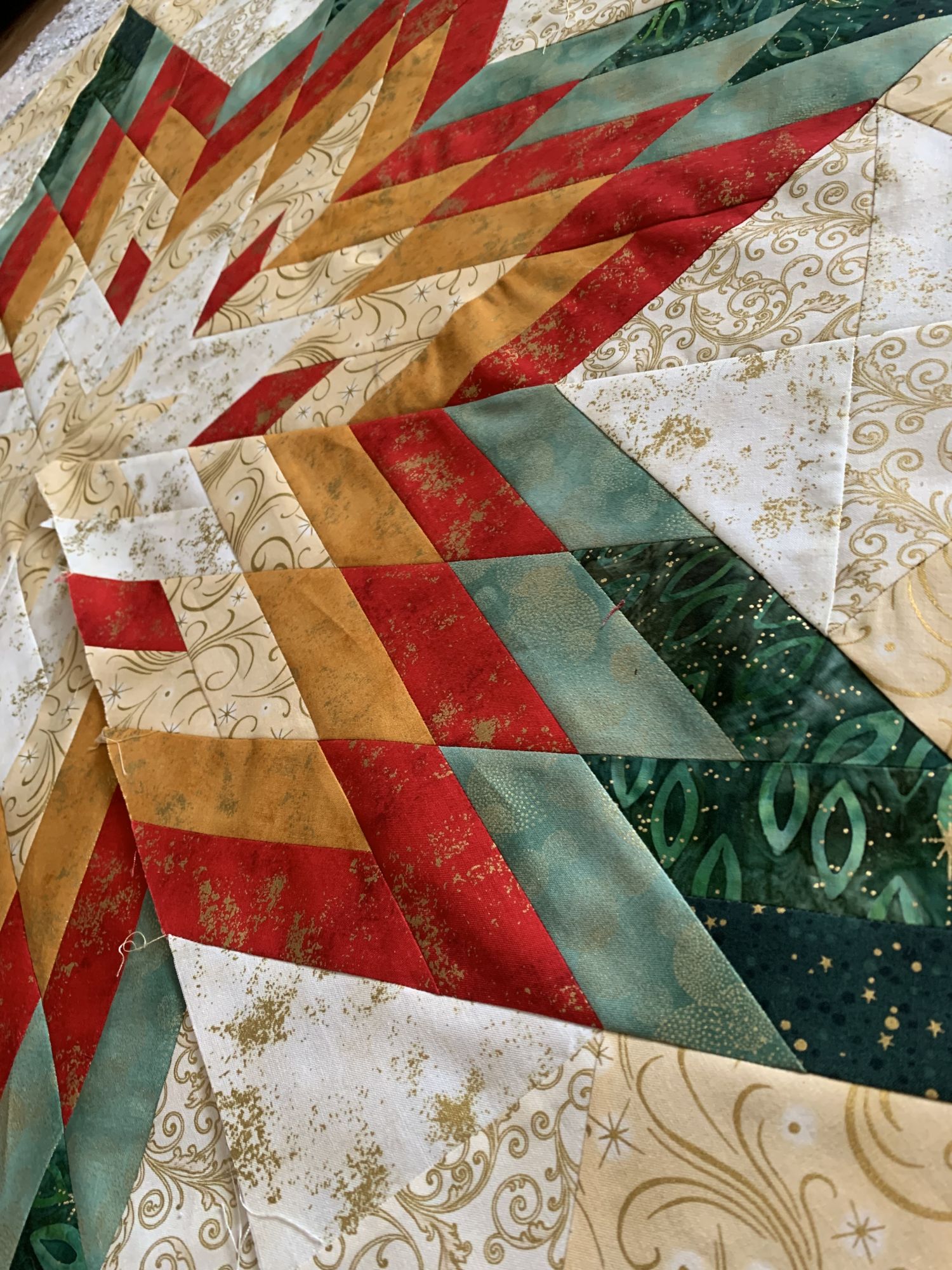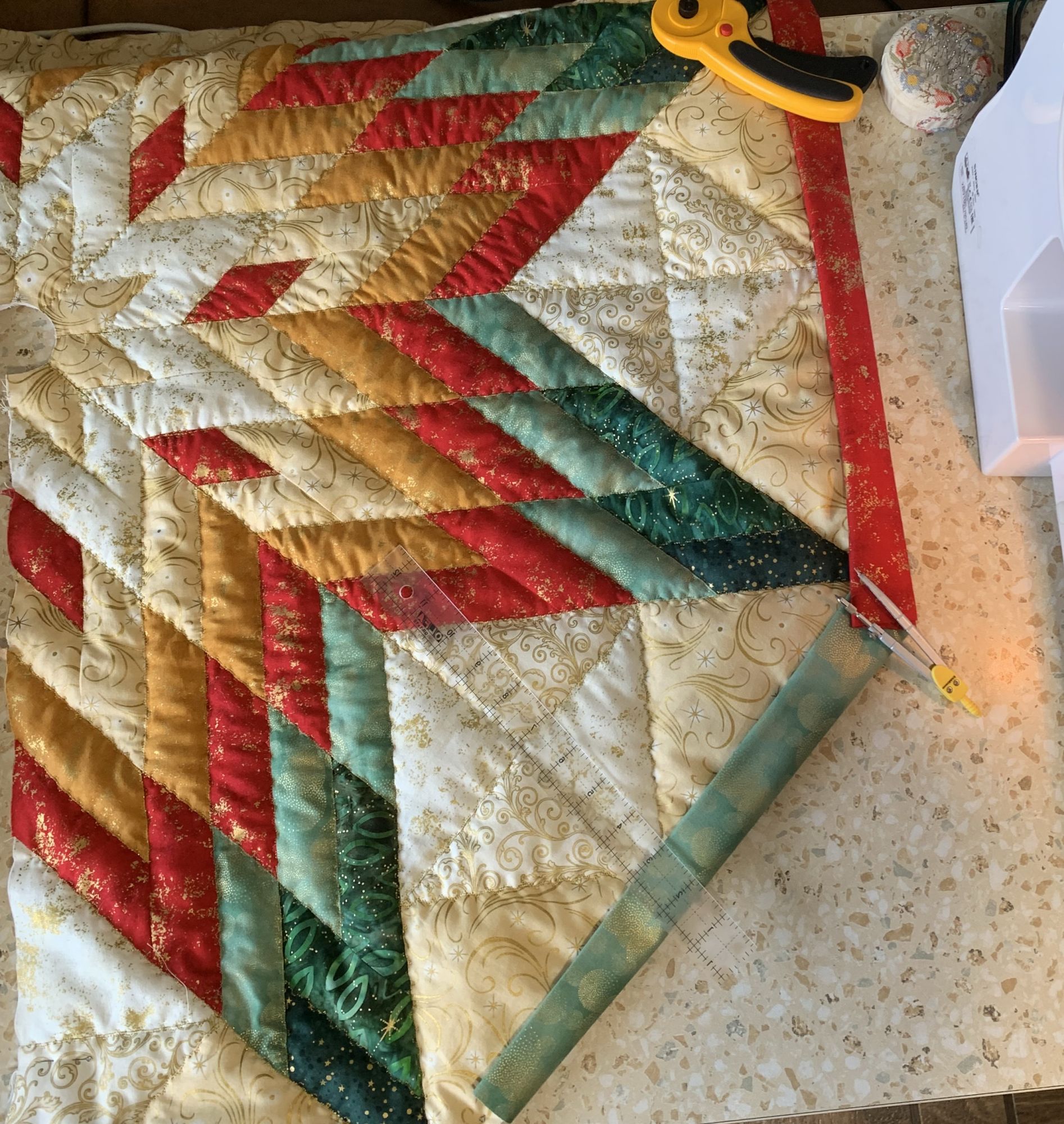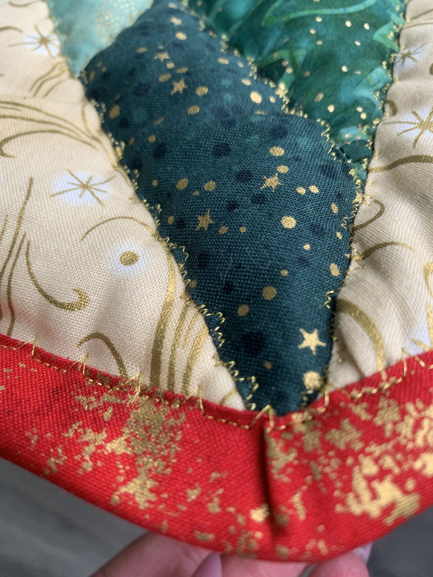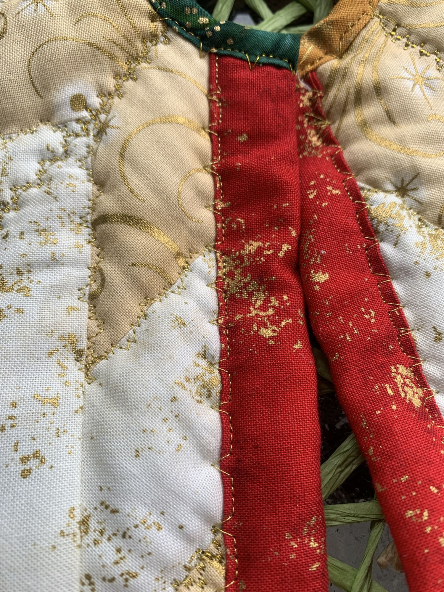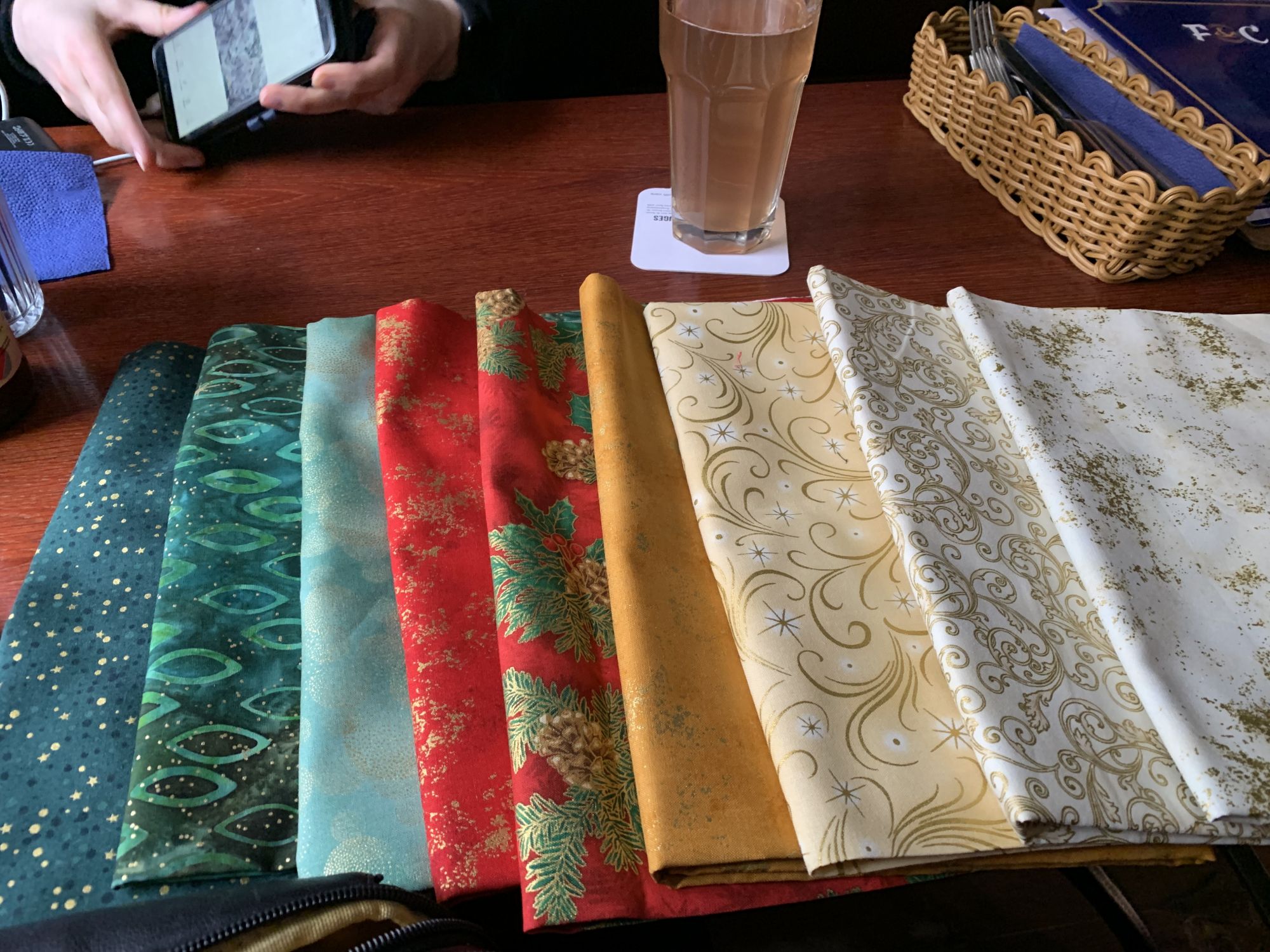 19 июня 2023 Отчет. 1. Пэчворк. Юбка под елку. Майский отчет я профилонила. А май ознаменовался уже традиционной поездкой в Питер за весенним солнышком, прогулками и дружескими посиделками. И была еще одна цель намечена и достигнута - посещение магазина с тканями для пэчворка. Ибо дорогие сестры во игле внемли моим воплям "хочувотэтотмастерклассссс!!!" и подарили мне МК по пошиву юбки под елку в стиле пэчворк. То, что юбку я не вышью я уже поняла, но кто мешает мне ее сшить, тем более в свете последнего моего увлечения. - это я в Питере хвастаюсь приобретениями. В Питере было еще много всякого интересного. Походов, поездок, музеев, но я вам не расскажу. И не потому, что я такая вредная, просто у меня это не очень получается. Покажу только наше с Аней @monstrochka селфи А вот как я шила юбку под елку - поделюсь! О! Это была еще та эпопея! И наполнена она была захватывающим разрезанием купленных тканюшек на тонкие полосочки шириной два дюйма, сшивание их, разглаживание, разрезание уже попарно или по три, или по четыре сшитых полоски под углом и снова сшивание. И так тридцать лет и три года! В итоге были собраны восемь вот таких ромбов . Из них и надо было собирать юбку. Вариантов было 3 Дальше в процессе примерки активное участие Котенька. А эти фото сделаны чисто с целью похвастаться, как ловко я совместила все швы , что, поверьте мне, автоматически никак не получается. Пришлось приложить усилия. После выбора варианта расположения ромбов пришло время вновь браться за кройку - между ромбами пространство пустым не оставишь. И новая примерка, как расположить нарезанное Для любопытных "вид сзади", изнанка и лицо в профиль Что ж, половина дела сделана! Впереди очередной интереснючий этап - стежка. Это когда делаешь бутерброд из сшитого из лоскуточков, синтепона и еще одного слоя ткани и прострачиваешь все это в разнообразных направлениях. Фигуры крутить ввиду отсутствия большого опыта и маленькой машинки я не стала. Пошла по простому пути. Иногда это самый верный вариант. Строчила по швам, но фигурной строчкой и люрексом. Кто ж знал, что его уйдет 4 катушки! Получилось Вот такое одеялко , которое предстояло обработать бейкой. - цвет бейки выбираю. Остановилась на красной. Итог - мне понравилось! Главный вывод - надо готовиться и все продумывать. Планы - хочу еще, но пока продумываю и готовлюсь . 2. Lanarte 34926 (8050), Pоза (Rosa Botanical). Только недавно вернулась к вышивке. Пока двигаю розу от Ланарте. Было / стало / Nadinka-Blondinka, Galagenka, pellbell и 26 других сказали спасибо Поделиться сообщением Ссылка на сообщение