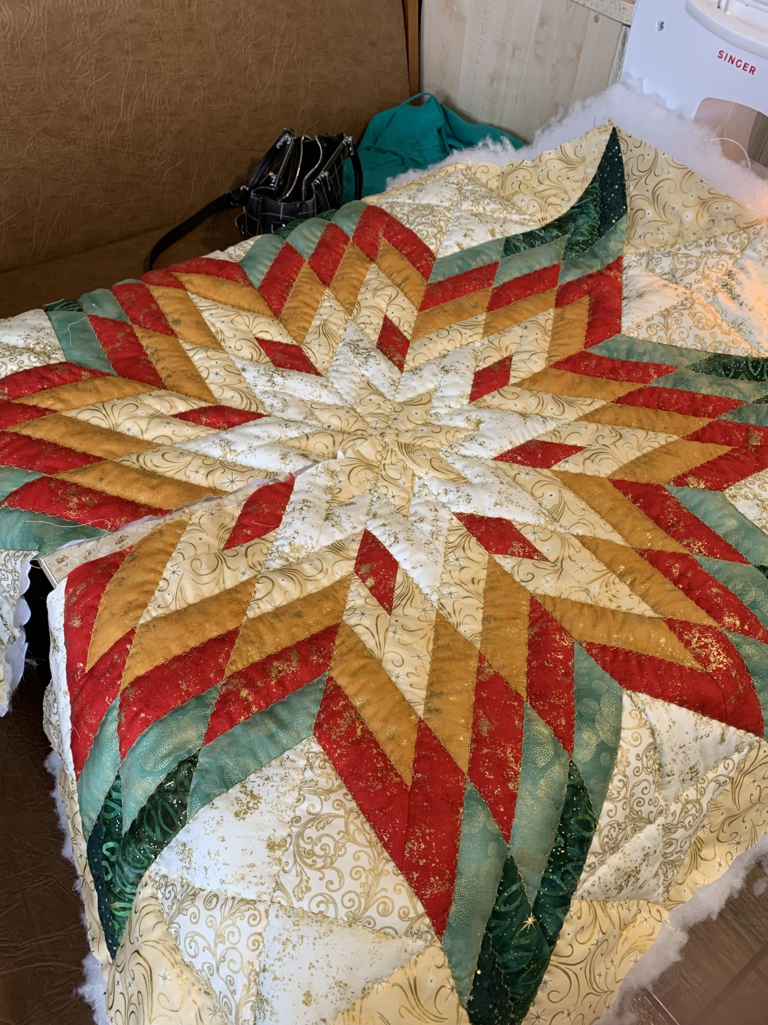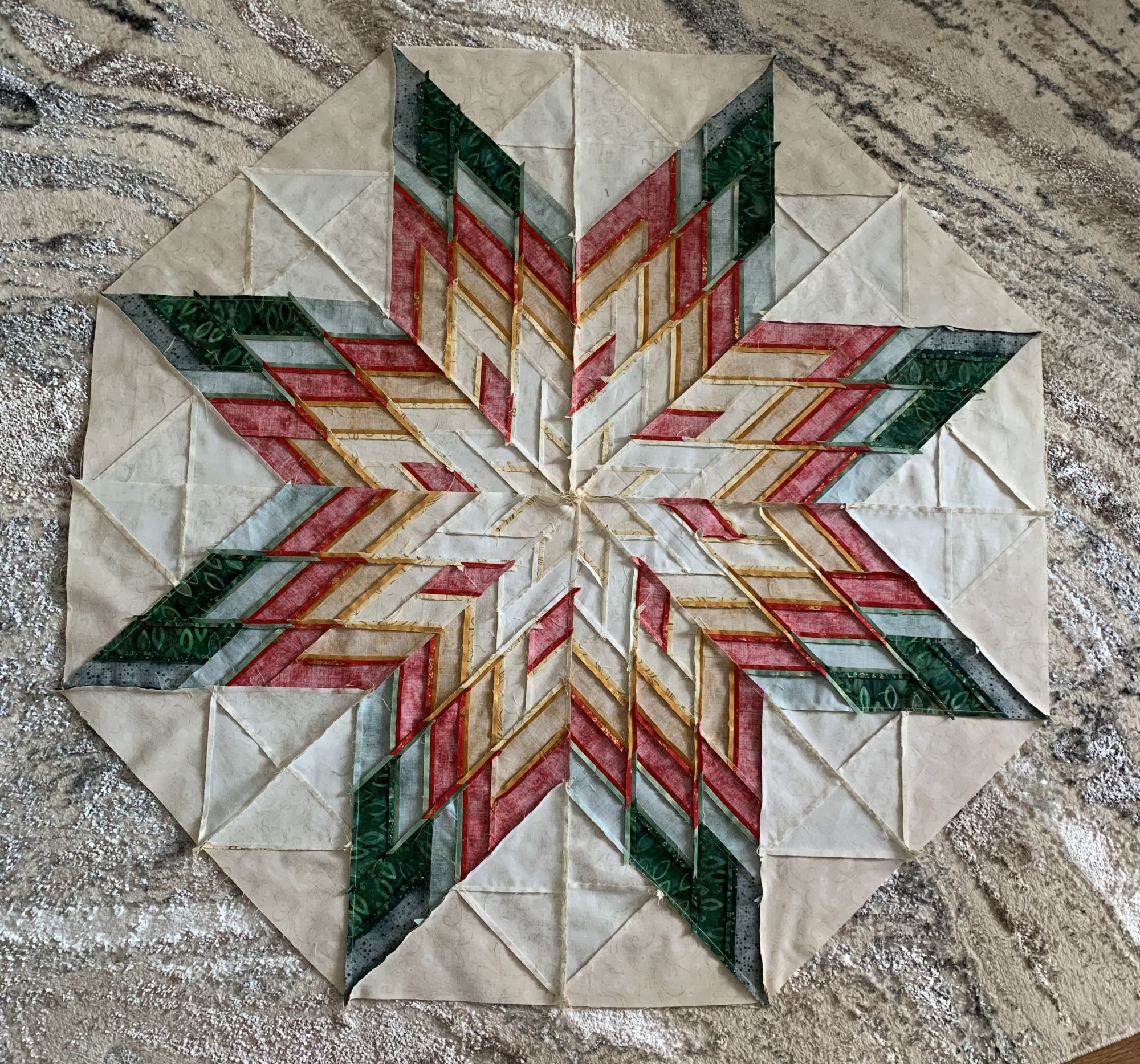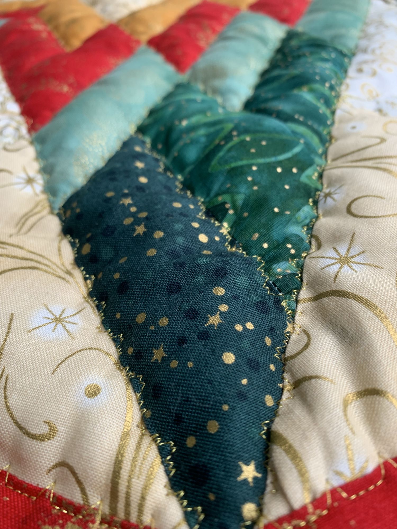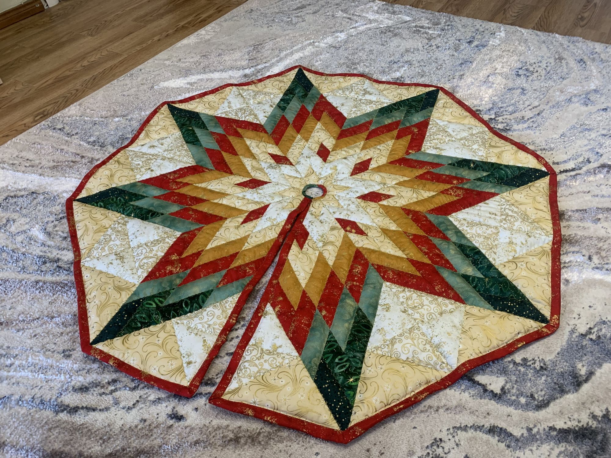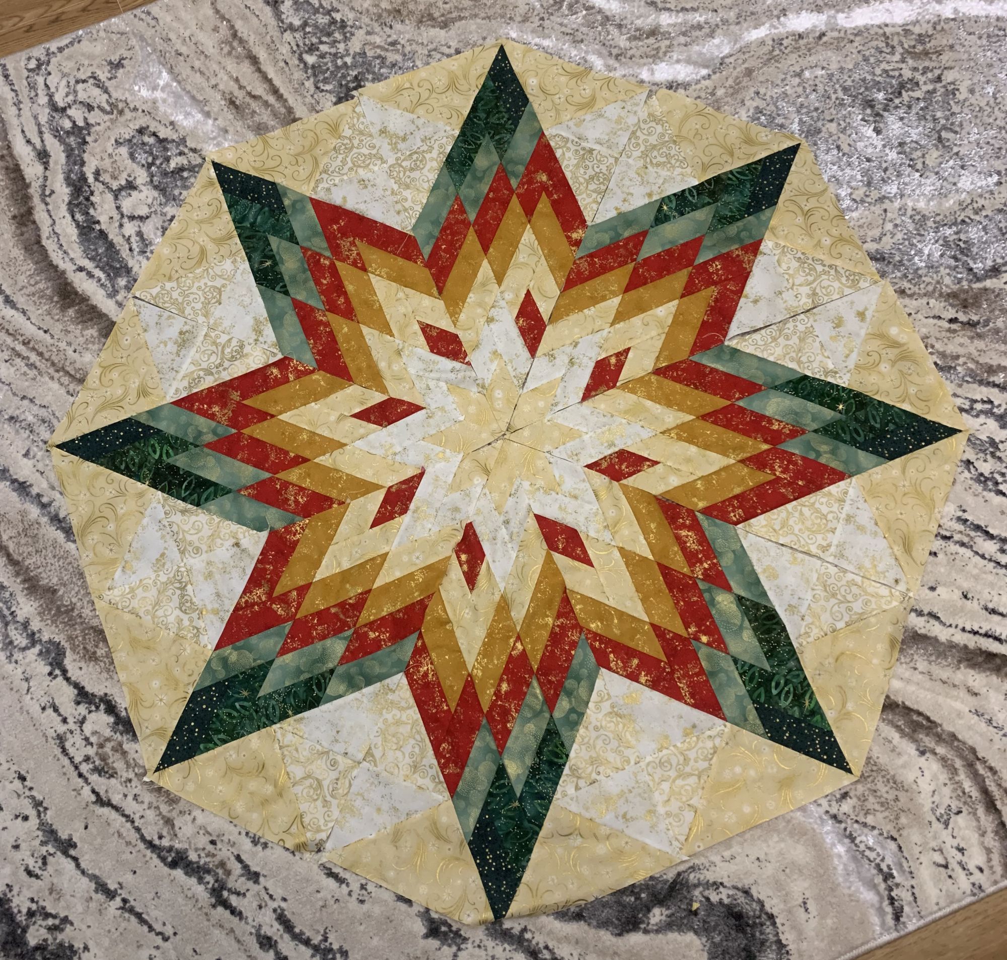 19 июня 2023 Отчет. 1. Пэчворк. Юбка под елку. Майский отчет я профилонила. А май ознаменовался уже традиционной поездкой в Питер за весенним солнышком, прогулками и дружескими посиделками. И была еще одна цель намечена и достигнута - посещение магазина с тканями для пэчворка. Ибо дорогие сестры во игле внемли моим воплям "хочувотэтотмастерклассссс!!!" и подарили мне МК по пошиву юбки под елку в стиле пэчворк. То, что юбку я не вышью я уже поняла, но кто мешает мне ее сшить, тем более в свете последнего моего увлечения. - это я в Питере хвастаюсь приобретениями. В Питере было еще много всякого интересного. Походов, поездок, музеев, но я вам не расскажу. И не потому, что я такая вредная, просто у меня это не очень получается. Покажу только наше с Аней @monstrochka селфи А вот как я шила юбку под елку - поделюсь! О! Это была еще та эпопея! И наполнена она была захватывающим разрезанием купленных тканюшек на тонкие полосочки шириной два дюйма, сшивание их, разглаживание, разрезание уже попарно или по три, или по четыре сшитых полоски под углом и снова сшивание. И так тридцать лет и три года! В итоге были собраны восемь вот таких ромбов . Из них и надо было собирать юбку. Вариантов было 3 Дальше в процессе примерки активное участие Котенька. А эти фото сделаны чисто с целью похвастаться, как ловко я совместила все швы , что, поверьте мне, автоматически никак не получается. Пришлось приложить усилия. После выбора варианта расположения ромбов пришло время вновь браться за кройку - между ромбами пространство пустым не оставишь. И новая примерка, как расположить нарезанное Для любопытных "вид сзади", изнанка и лицо в профиль Что ж, половина дела сделана! Впереди очередной интереснючий этап - стежка. Это когда делаешь бутерброд из сшитого из лоскуточков, синтепона и еще одного слоя ткани и прострачиваешь все это в разнообразных направлениях. Фигуры крутить ввиду отсутствия большого опыта и маленькой машинки я не стала. Пошла по простому пути. Иногда это самый верный вариант. Строчила по швам, но фигурной строчкой и люрексом. Кто ж знал, что его уйдет 4 катушки! Получилось Вот такое одеялко , которое предстояло обработать бейкой. - цвет бейки выбираю. Остановилась на красной. Итог - мне понравилось! Главный вывод - надо готовиться и все продумывать. Планы - хочу еще, но пока продумываю и готовлюсь . 2. Lanarte 34926 (8050), Pоза (Rosa Botanical). Только недавно вернулась к вышивке. Пока двигаю розу от Ланарте. Было / стало / Nadinka-Blondinka, Galagenka, pellbell и 26 других сказали спасибо Поделиться сообщением Ссылка на сообщение