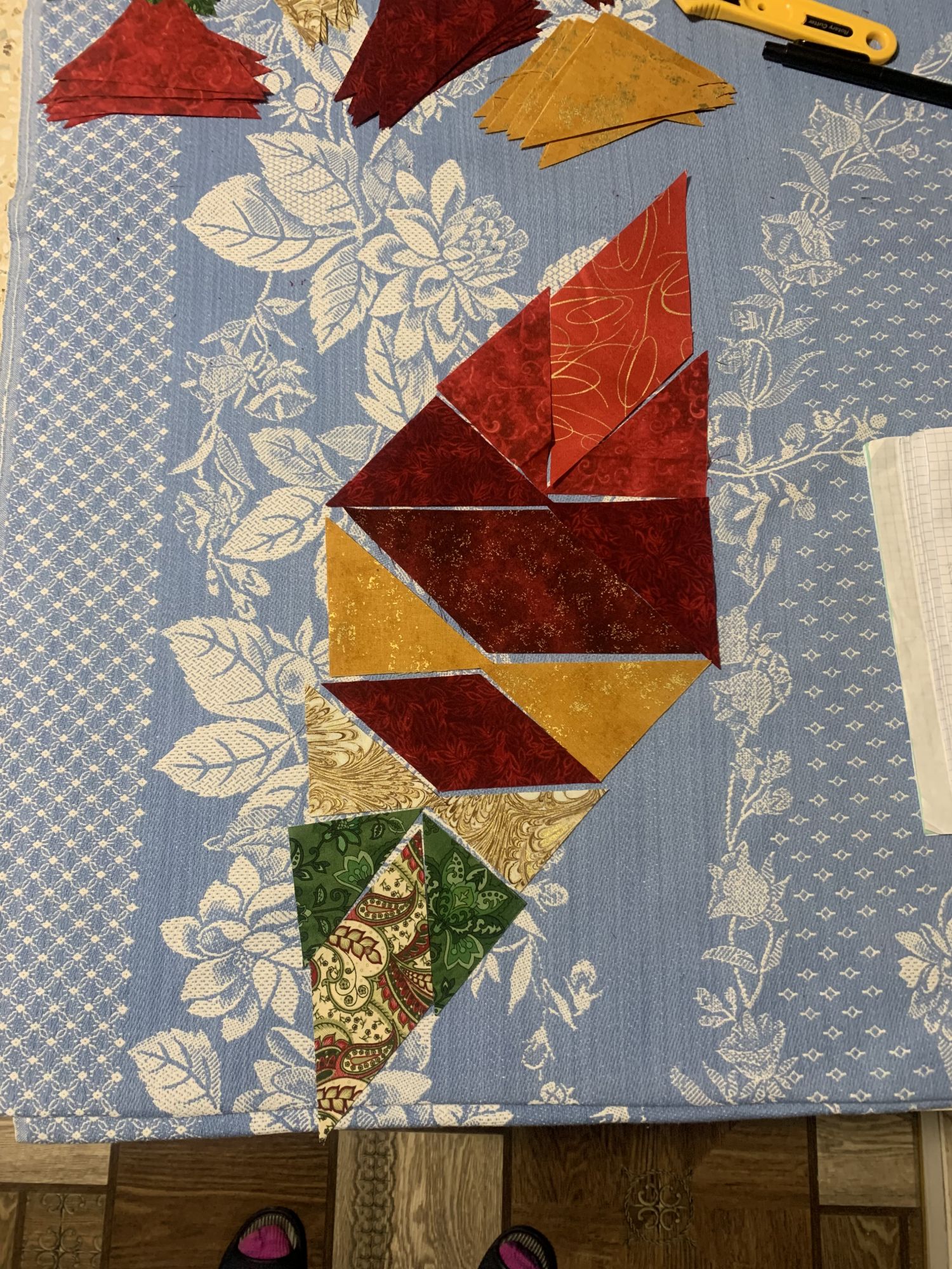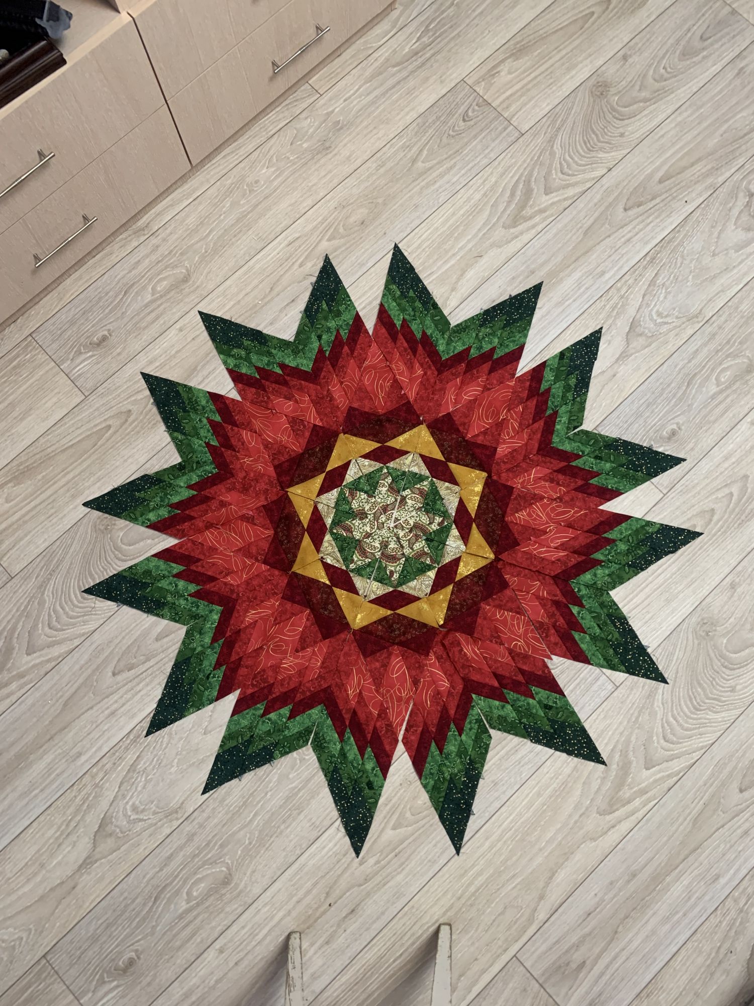 18 декабря 2023 Отчет. 1. Совиный лес (OwlForest), Сказочная азбука. Вышивается на ура. Изумительная проработка. Совиный лес - молодцы. Поскольку у меня схема, а не набор, шармиков я не имею, и в связи с этим, активно использую бисер. Он прекрасно вписывается. Было / стало / - переделала корону жабе 2. Пэчворк. Новая моя увлекалочка. В прошлый раз была юбка под елку, в этот шью полноценный квилт. Тоже новогодний с аналогичным рисунком. О, девочки, можно написать целую увлекательную зарисовку о пэчворке вообще и моей эпопее швейной в частности! Прикольная идея, накупить недешевых красивых тканей, разрезать их на мелкие кусочки и собирать заново. Так чтоб швы состыковались, скроенное по косой не растянулось, а общее полотно не пошло в итоге буграми, пузырями и фалдами. В какой-то момент я даже бросила. На целую неделю! Но вернулась, собрала, отгладила и чуток успокоилась, поняв, что имеет смысл продолжать, ибо все более-менее срастается Готова пока только центральная часть. Это стилизованный цветок пуансетии. Это я из собранных элементов выкладываю разные фигуры. Балуюсь. А это уже сшито и отглажено. Не без косяков, но общая картина меня радует. 3. В мире животных. На работе, в лабораторию повадился ходить кот. Девчонки дали ему имя Федя. Кормят. Одна беда, федя ы конце рабочего дня не желает покидать территорию. Наta, monstrochka, sette venerdi и 23 других сказали спасибо Поделиться сообщением Ссылка на сообщение