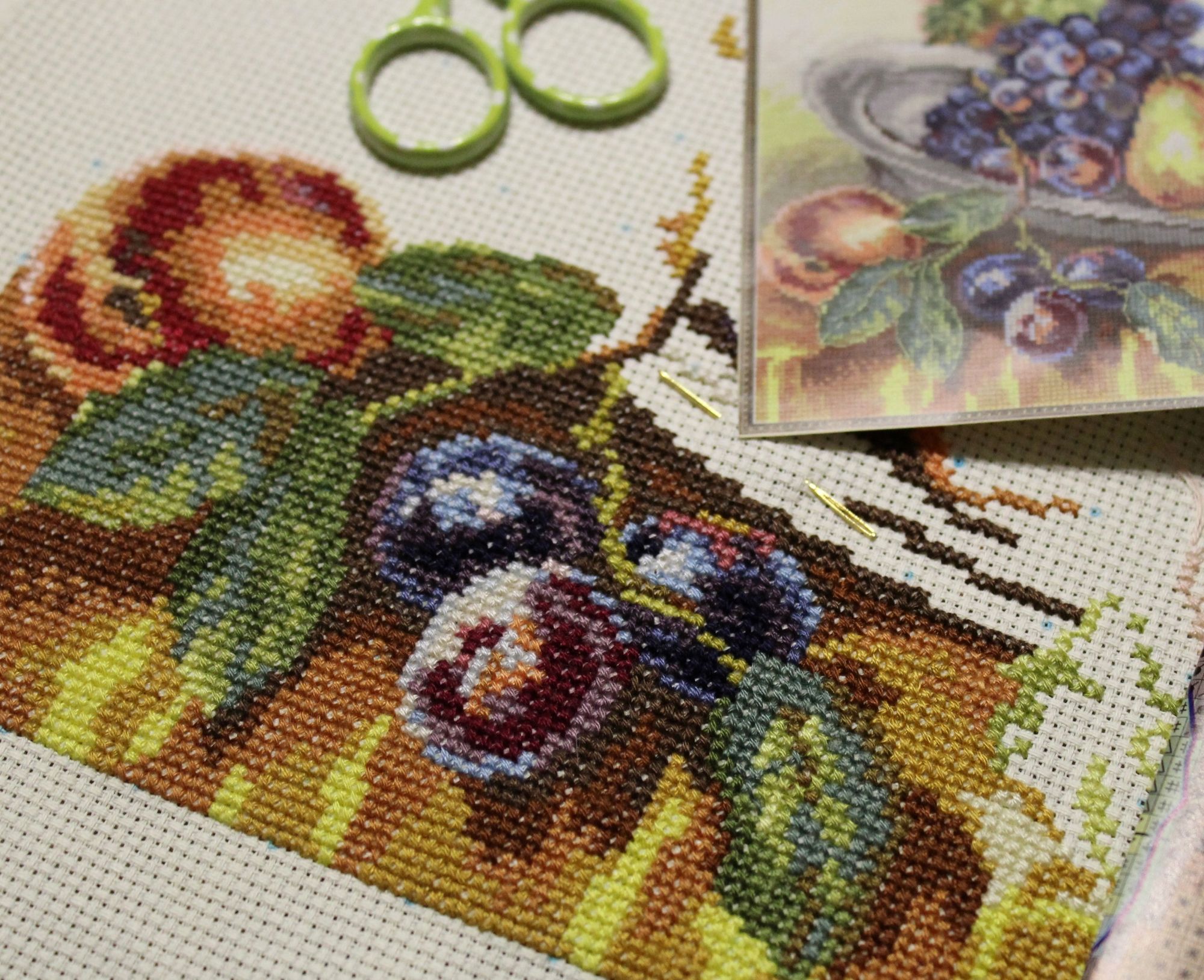 16 декабря 2017 Приветствую всех гостей. У меня сейчас два параллельных процесса. Это кошка на софе от КК и Осенний натюрморт от Алисы. Процесс с кошкой продвигается медленно. С такой черепашьей скоростью к Новому году будет вышита лишь 2/3 работы. Закончу не ранее начала февраля. Больше 400 крестиков в день не получается вышить. Парковкой практикую уже без малого три года. Могу сказать что осилила этот метод, но так и не добилась скорости. Я вовсе не претендую на высокую скорость как у профессионалов, но хотя бы немного хотела увеличить. А не получается. Видимо это не совсем мое. Зато Осенний натюрморт вышиваю в 2-3 раза быстрее. Потому что на руках вышиваю плюс схема любимая. Конечно, вышивая на руках, крестики получаются не такими ровными как парковкой. Способ для натюрморта выбрала по предметам. Первым вышила персик слева с листьями, далее сливы с листиком. Следующим предметом будет виноград в миске, потом груша и т. д. Натюрморт вышивальщицам порядком надоел за несколько лет и эмоций уже не вызывает. Я бы себе его не стала вышивать, но это в подарок. Натюрморт и еще две картины от Алисы Изабелла и Шардоне выбрала женщина, которая никакого отношения к вышивке не имеет. Ей они понравились как понравились мне когда увидела их впервые. Я планирую эту картину вышить иначе. Вернее дополнить в результате чего смотреться будет по другому. Кто будет наблюдать за процессом сразу увидите. Пока все идет как по набору. Кошка на софе (ФОТО В ГАЕЧКУ) Осенний натюрморт (ФОТО В ГАЕЧКУ) FEDORMaзиус, maui, Кисуля и 12 других сказали спасибо Поделиться сообщением Ссылка на сообщение