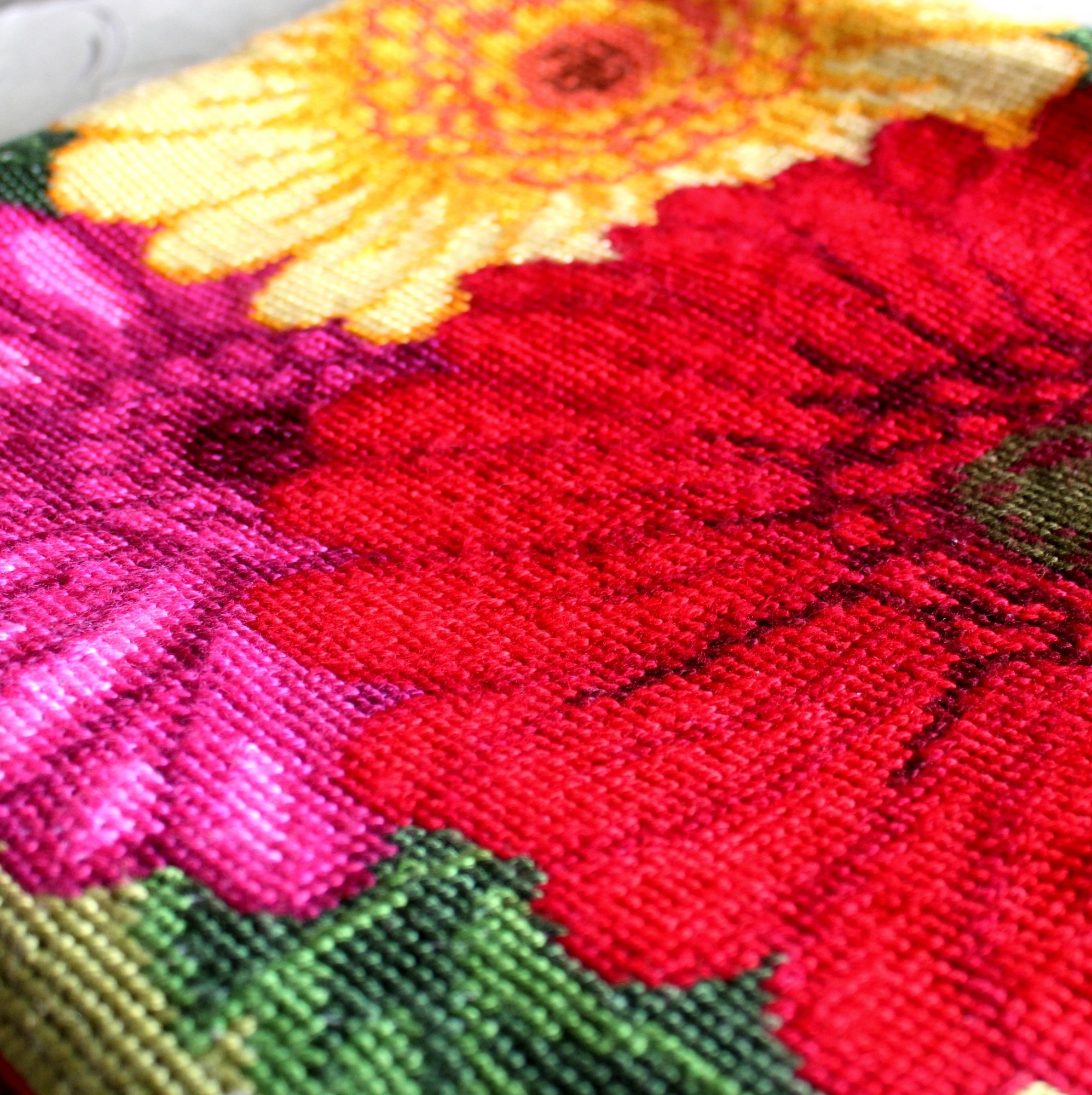 12 июня 2018 Девочки, всем доброго дня! Принесла последние фото для процесса ГЕРБЕРЫ. Ох, попили мне крови эти герберы! Вернее красный особо и немного цвета фуксия. Такой легкий дизайн. Думала разделаюсь с ним как повар с картошкой. Дело в том что нитки в набор вложены совсем не тех цветов какие на фото обложки. Для красного цветка бордовый и темно красный подошел хорошо. А еще два оттенка красного должны чуть-чуть отличаться между собой и от темно красного. А вместо этого вложен один цвет до неприличия ядовитого красного. Есть понятие яркий, а есть ядовитый. Во многих случаях ядовитый уместный и даже необходимый, но не в этом. Немного вышила и сразу поняла что в готовом виде будет ужас. Распорола и стала подбирать цвета. От наборов нитки остаются и я подобрала из того что было. Вместо двух недостающих оттенков красного пришлось использовать три. Иначе не хватило бы ниток. Удалось получить то что хотела. Такая же ситуация с другим цветком. Был в наборе в большом количестве бледно розовый цвет, который не использовала. Пришлось из остатков ниток взять два оттенка фуксии. В желтом цветке изменений не было только серединку вышила коричневым вместо предложенного темно бордового ( на обложке серединка вообще ядовито зеленая). И еще от себя заменила фон ( здесь и фона как такового нет потому что все пространство занято цветами), но все таки. Предложен ядовитый зеленый, вышила просто зеленым. Это первый набор в котором так много несоответствий по цветам. Результат радует. ГЕРБЕРЫ (ФОТО ДЛЯ ГАЕЧКИ) Начинаю новый процесс ПОДСОЛНУХИ (ФОТО ДЛЯ ГАЕЧКИ) TheSunniestDay, nata2017, ЛАДОМИРА и 11 других сказали спасибо Поделиться сообщением Ссылка на сообщение