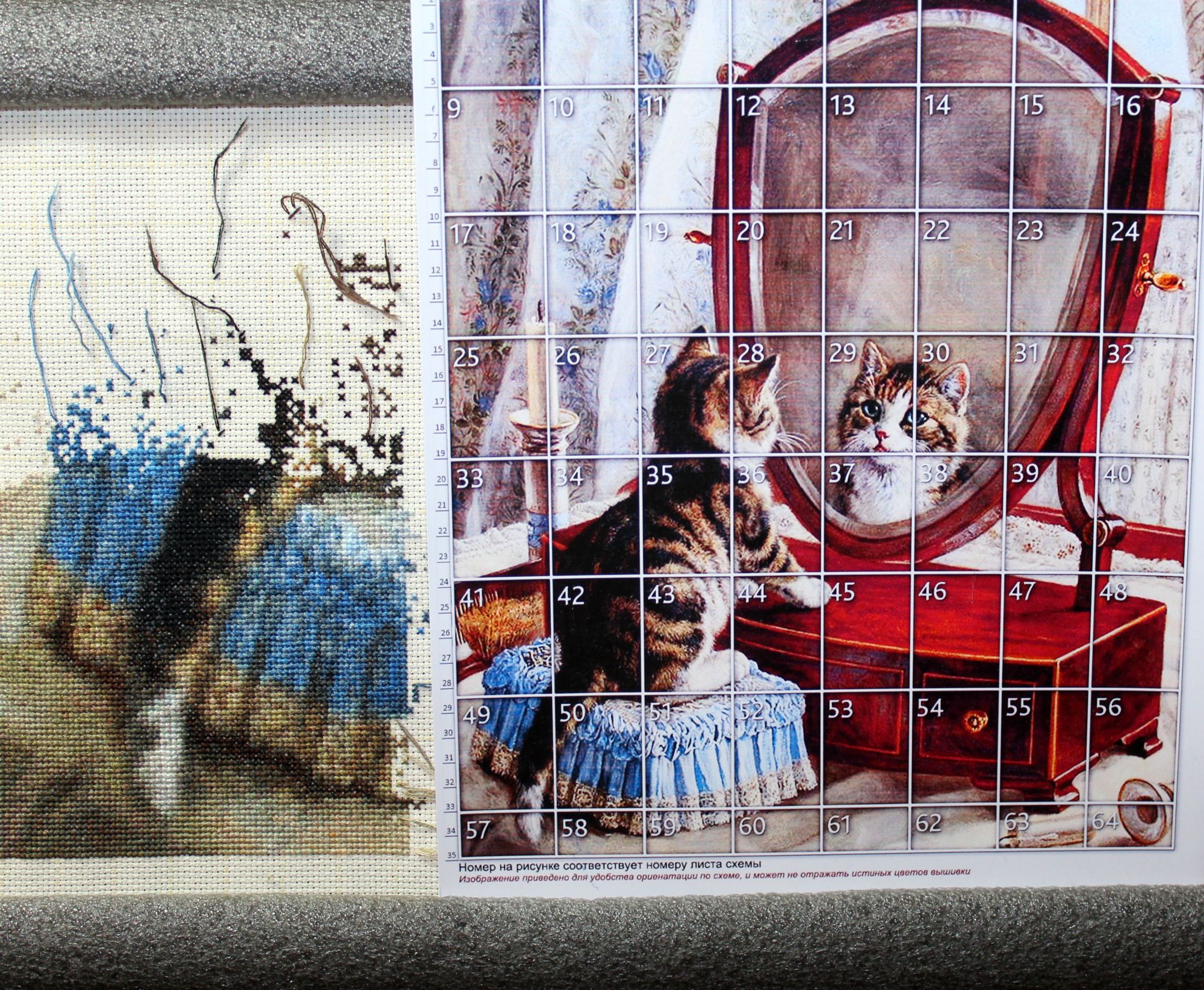 30 марта 2019 Уже так сложилось. что в первом сообщении я показываю первым пунктом картины или подушки оформленные ( если есть). Вторым пунктом идут работы вышиты, но не оформлены (если есть) . Во втором сообщении сначала показываю работы, находящиеся в процессе. Ну, и в самом конце что то другое ( может быть, может не быть). Итак, в процессе : 1). Работа ПЕРЕД ЗЕРКАЛОМ по набору ЭСТЭ (Фондукова Ирина). Вышит пока маленький кусочек, над которым работала две недели марта. Впечатления от процесса уже есть, они неоднозначные. Но напишу подробно гораздо позже. Пока только сообщу что очень медленно вышивается. Схема состоит из одних одиночек... (ФОТО В ГАЕЧКУ. Новый процесс) 2). Работа от Марьи Искусницы КОТЭ ЗЕЛЕНЫЙ. (ФОТО В ГАЕЧКУ. Новый процесс) У этой подушки будет пара под названием Котэ фиолетовый. Оба набора куплены по просьбе дочери и будут вышиты для нее. Хотела написать свое "фи" по поводу канвы в этих наборах. На обложке написано что канва 25 каунта. Когда взяла ее в руки, сразу поняла что это другой каунт. Померяла линейкой. В 10 см 115 ниточек. Это даже не 27, а 29 каунт, т.е намного мельче чем заявлен. В канве 25 каунта в 10 см 100 ниток, в канве 27 каунта 107 ниток в 10 см. На этом закончу свой отчет. Raduga777, Дикая белочка, Aleksacha и 18 других сказали спасибо Поделиться сообщением Ссылка на сообщение