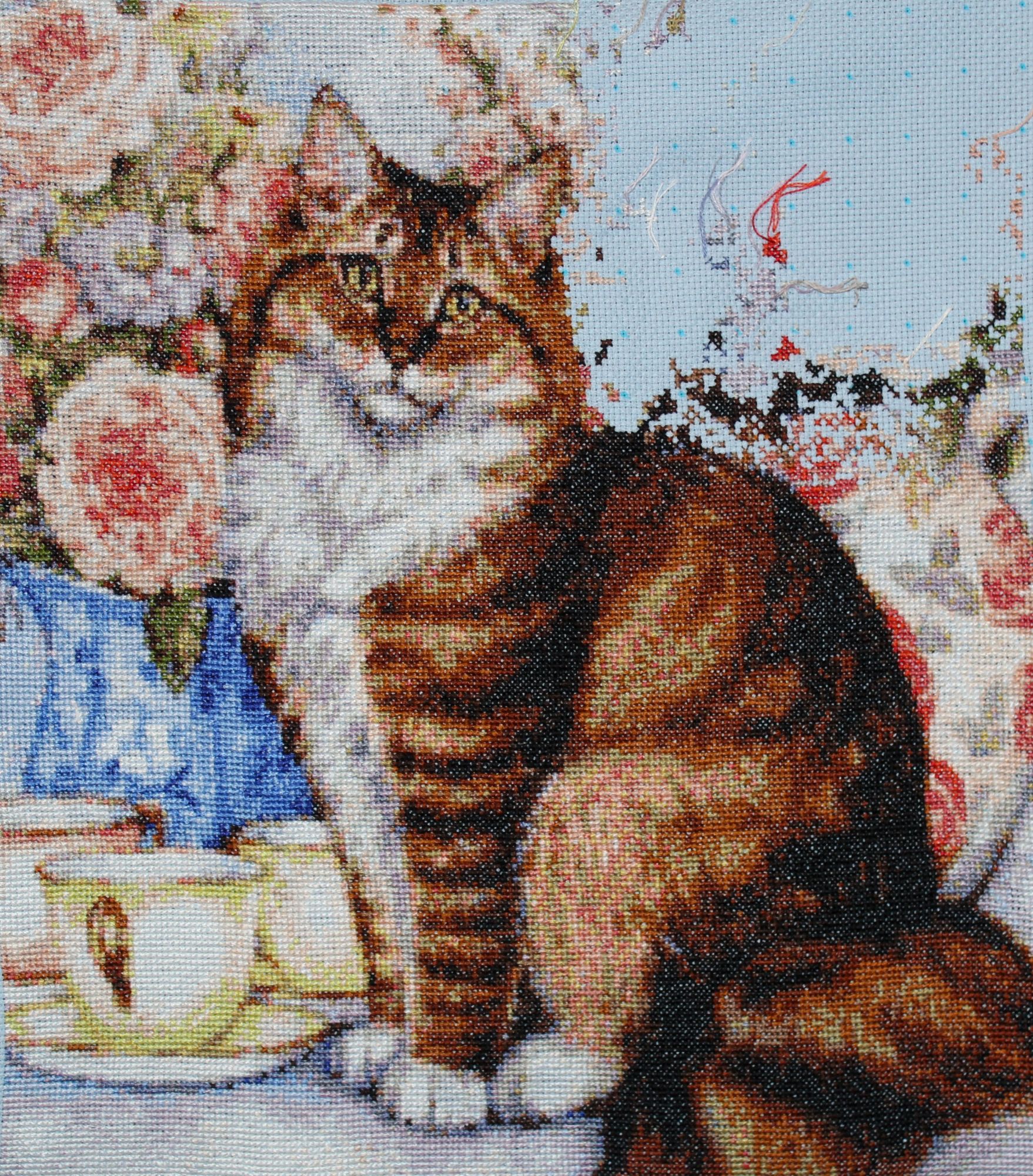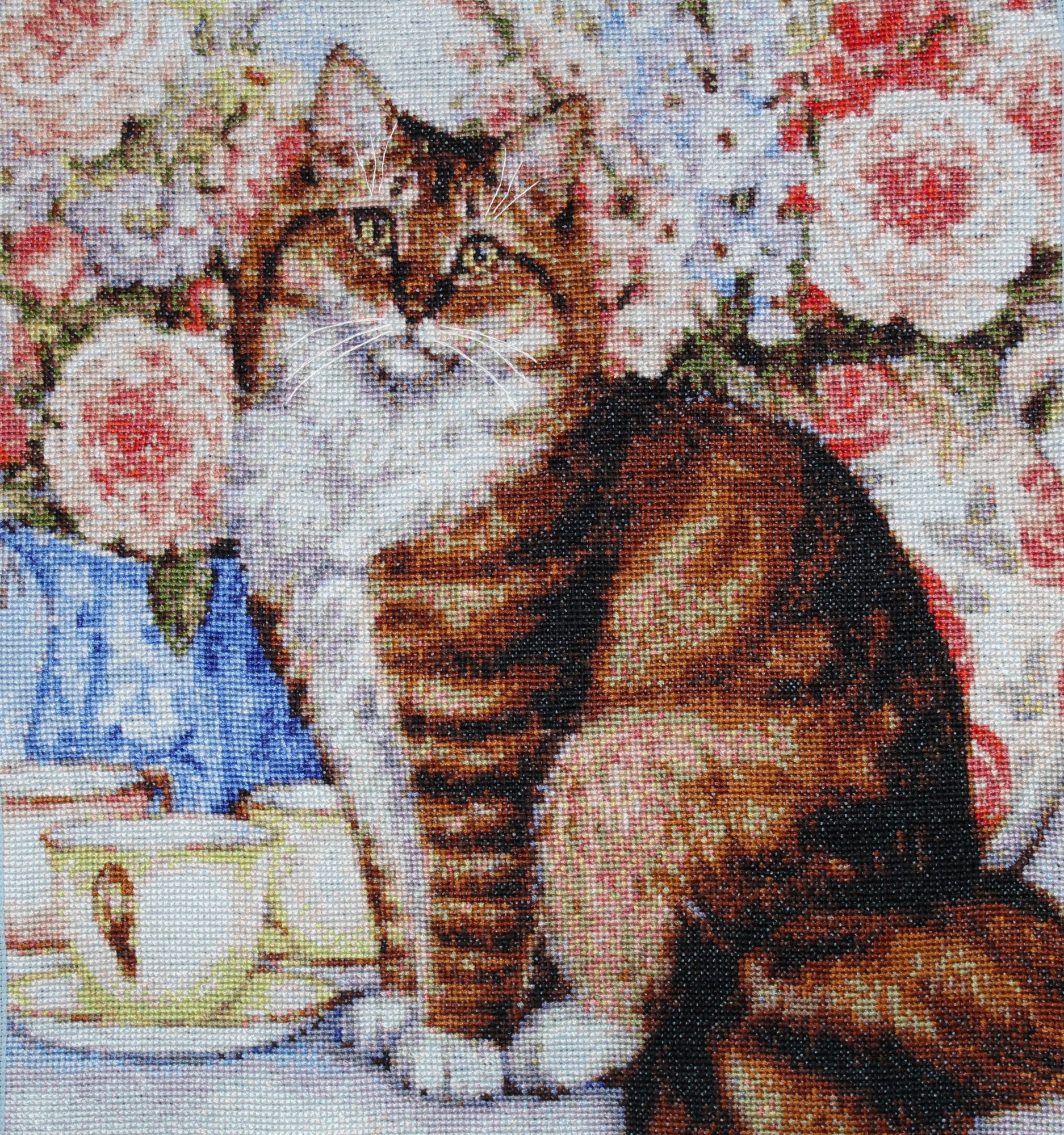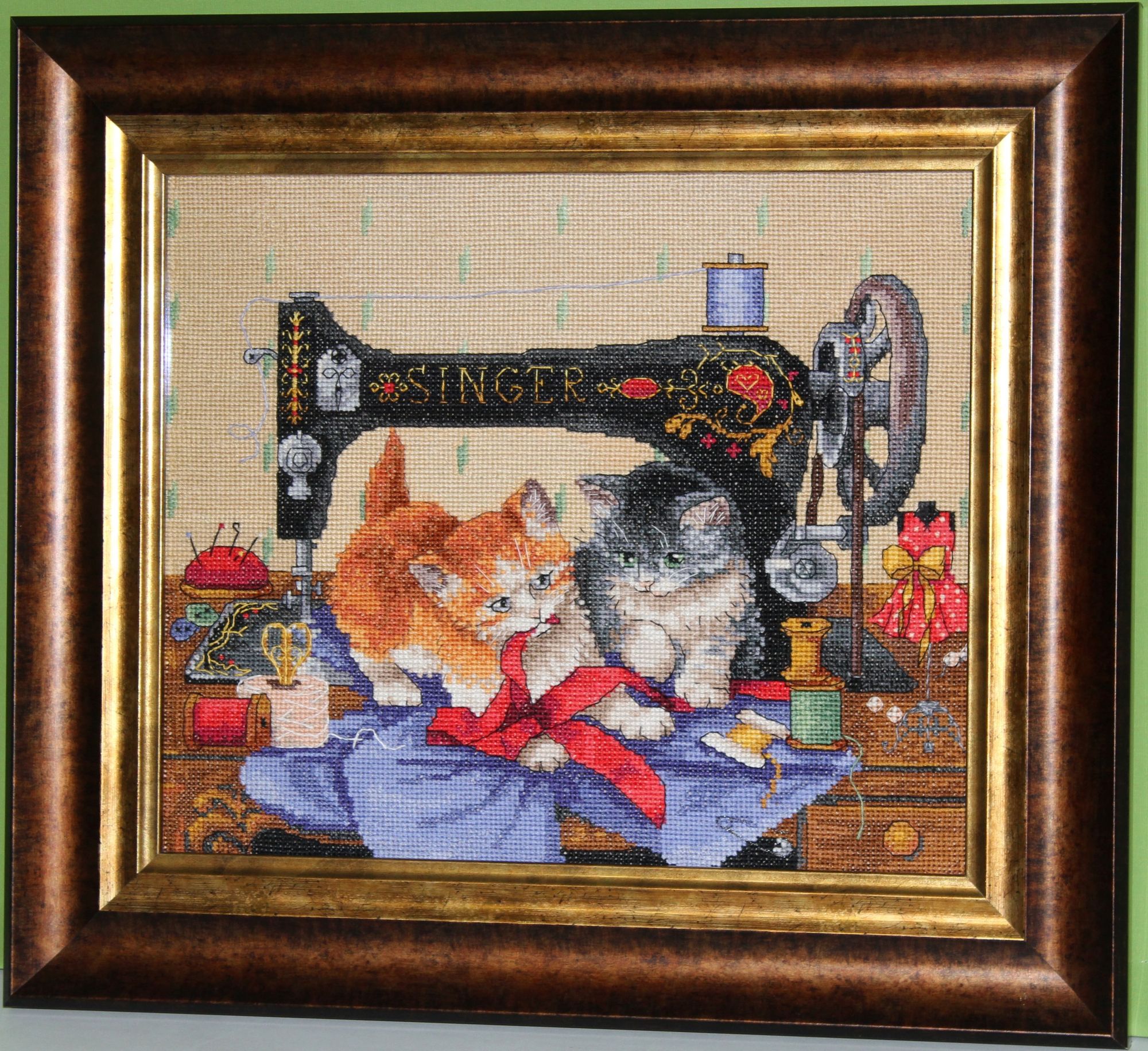29 декабря 2019 Скрытый текст Дорогие мои гости! Всем доброго времени суток! На исходе месяц декабрь, а с ним и 2019 год. Это значит что пора подводить итоги. Итак, в декабре. ОФОРМЛЕНО. 1). ПУШИСТАЯ КОШКА по набору Кустом Крафт. Схемы в наборах КК не многоцветные. Всего 40. Однако не простые в исполнении. В других вышивках цвета размещены группами. Не без одиночных крестиков, но все же. А в схемах КК одиночки всех цветов прямо по всей вышивке. Этой кошке хорошо подходит коричневый багет, но такой светлый выбрала так как фон в нежных цветах и сочетается с вкраплениями розовых оттенков на багете. К тому же Кошка на софе от этого производителя в таком же багете. 2). КОТЯТА И ЗИНГЕР по набору Мережка. Схема цветная и простая в двух вариантах: с линиями для бэка и без них. Нитки мадейра, которые я люблю как Анкор и ДМС. Схема разработана по мотивам картины всемирно известной нидерландской художницы Генриетты Роннер-Книп, которая прожила долгую, но не легкую жизнь. Я часто люблю разглядывать картины художницы и когда увидела набор, сразу узнала этих котят. Набор купила немедленно.Вот фото картины для сравнения. Только разработчик схемы поменял фон. Вышивала легко и быстро. Две картины я вышила не случайно. И кошка, и котята воплотились в картине, которую я так хотела закончить к концу месяца, но не успела. Пишу что воплотились потому что они уже вышиты. А скатерть и шторы придумывала сама. Без схемы вышивать очень тяжело. Представляешь одно, а на канве получается совсем другое. Приходилось несколько раз пороть и переделывать. В скрытом содержании показываю, но это пока в "сыром виде". Продолжение следует. Скрытый текст Скрытый текст В ПРОЦЕССЕ. Картину я назову "Кошачье семейство".(НЕ ДЛЯ ГАЕЧКИ! Процесс будет выставлен полностью после его завершения так как нет пока титульного фото). Узнаете? Еще два котенка из другой картины, которую надеюсь вышить в январе. Если бы только стена и бэк, я бы, возможно, напряглась и закончила. Но большой участок шторы над головой у кошки буду пороть и переделывать потому что мне не нравится как вышито. makalicha1970, BlueeYeS, Raduga777 и 10 других сказали спасибо Поделиться сообщением Ссылка на сообщение
