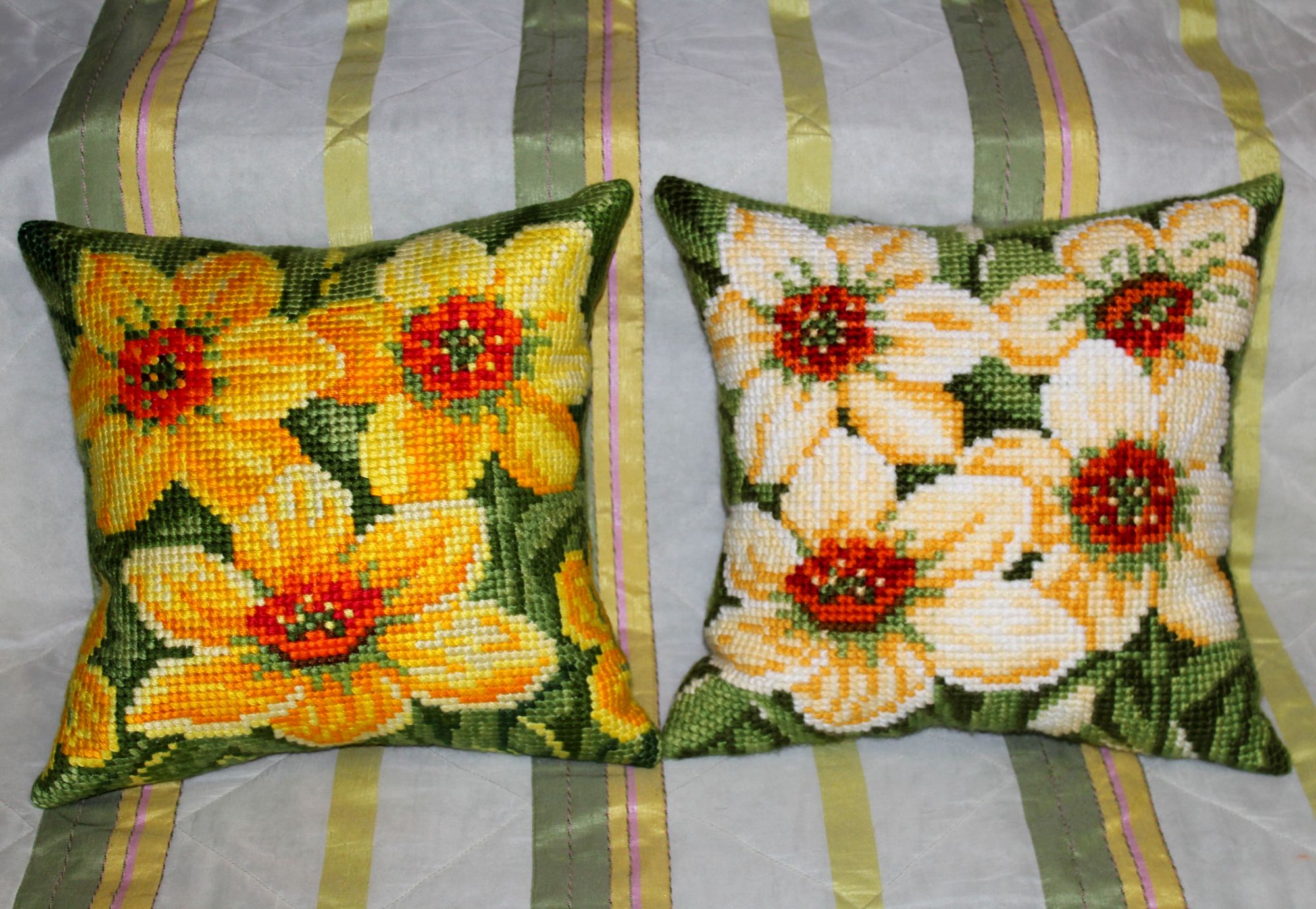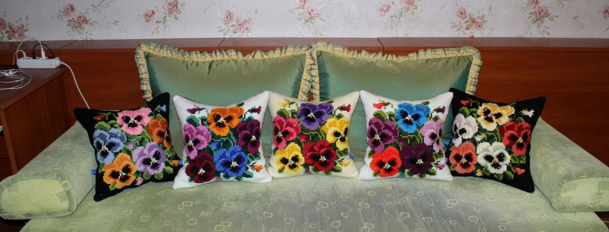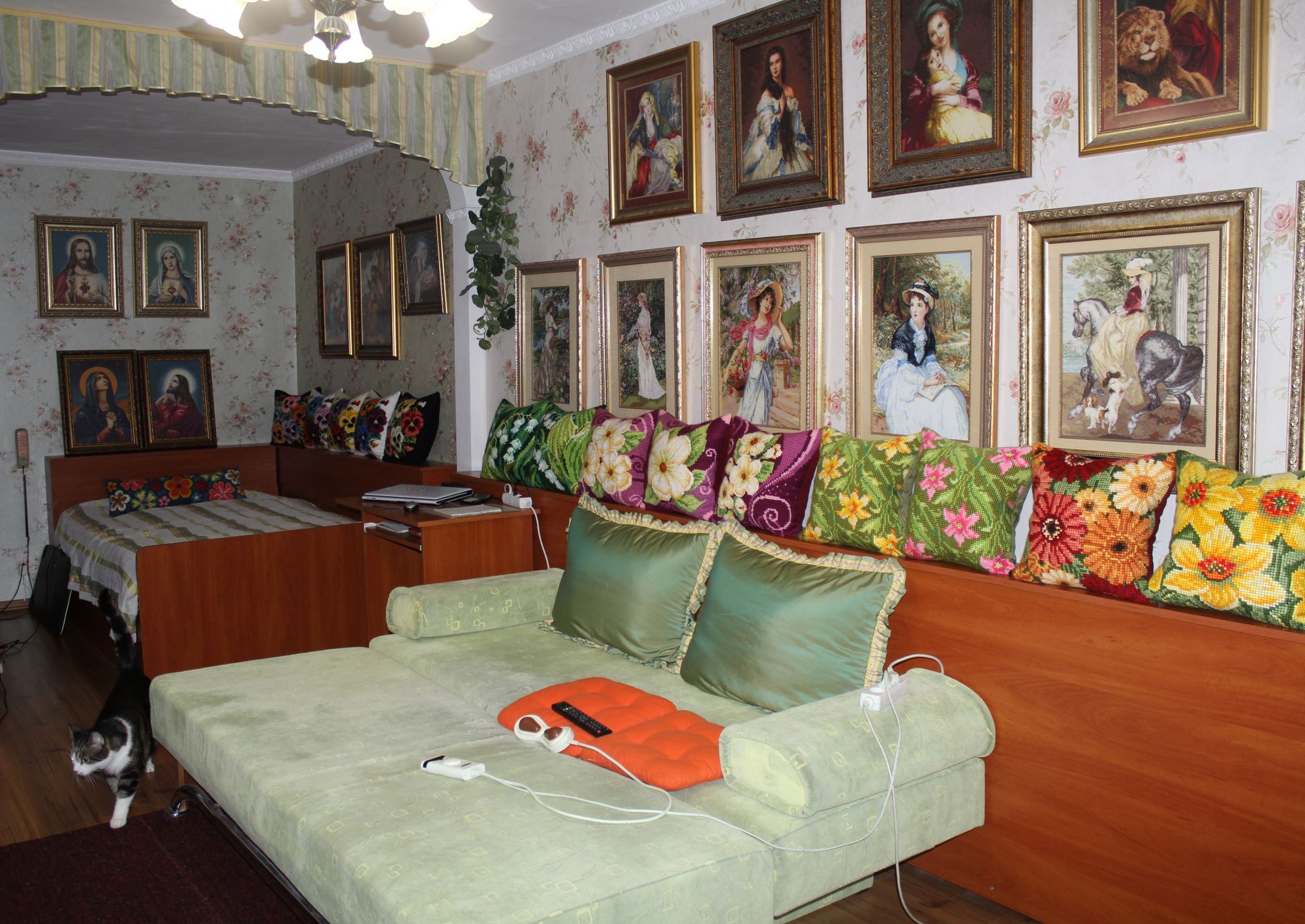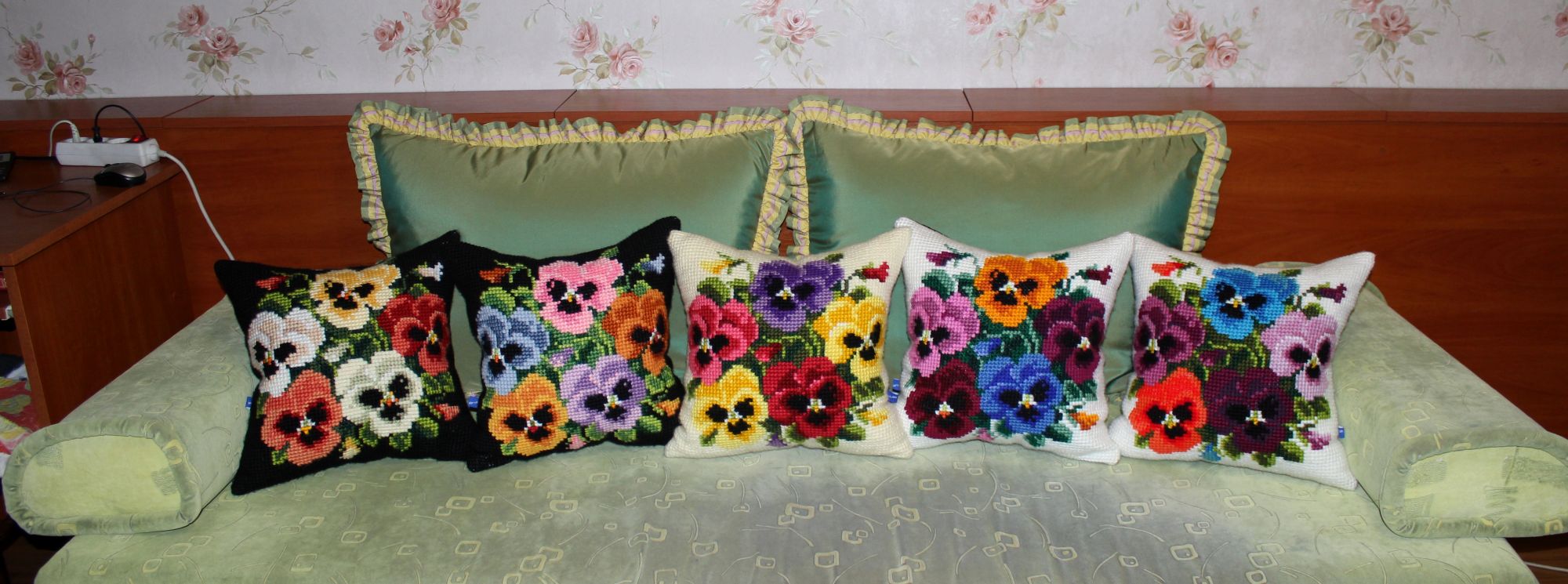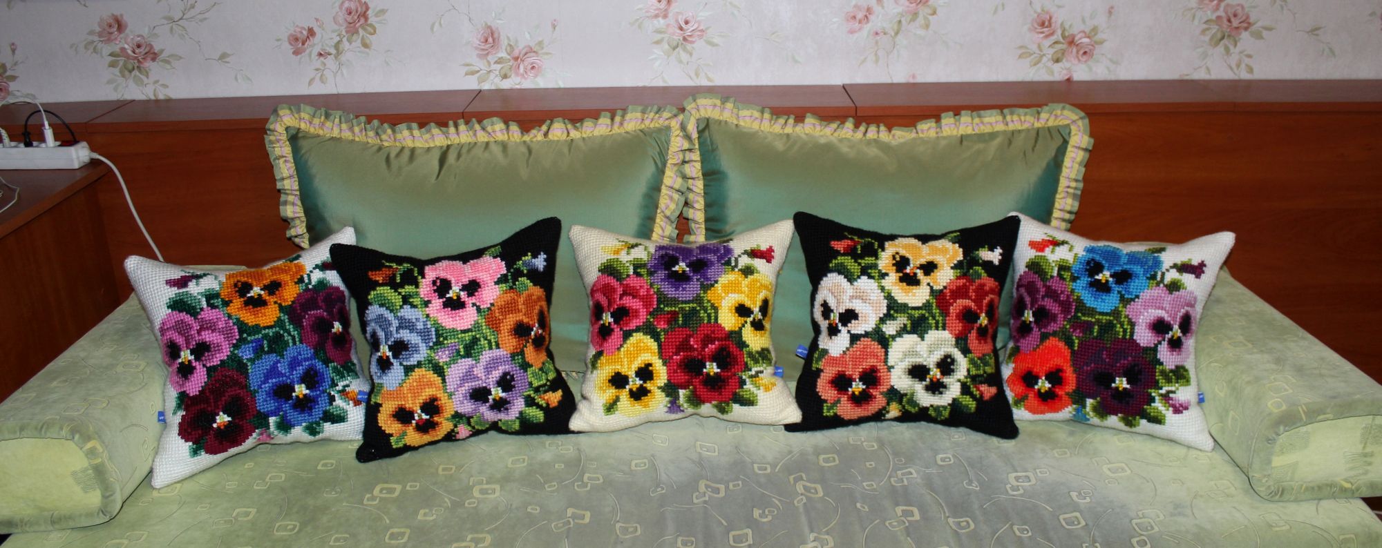 30 декабря 2019 ПРО ПОДУШКИ. Кто о чем, а я о своем. Из подушек с цветами образовались две серии, которые состоят из трех трио и пяти дуэтов. Вот их фото Еще я сделала фото подушек в интерьере и решила показать А теперь подвожу подушковые итоги за весь год. Итак, от Вервако и Коллекшин Д-Арт вышито 22 подушки и один коврик из которых образовано четыре серии: 1).ЦВЕТОЧНЫЙ ОРНАМЕНТ В ЯРКИХ ТОНАХ 2). КОШКИ В ЦЕТАХ 3).АНЮТИНЫ ГЛАЗКИ 4).ЦВЕТЫ Кроме этого от Вервако дуэт длинных подушек И еще дуэт котов от Марьи Искусницы Всего 24 штуки. Если говорить о картинах, то их пять. Вернее три картины и две картинки: Теперь, кажется, все. Буду прощаться. Но прежде от души поздравляю всех с наступающим Новым годом. Девочки, всем здоровья, любви, добра, благополучия и удачи во всем! Юнона1960, ivk_, nata2017 и 19 других сказали спасибо Поделиться сообщением Ссылка на сообщение