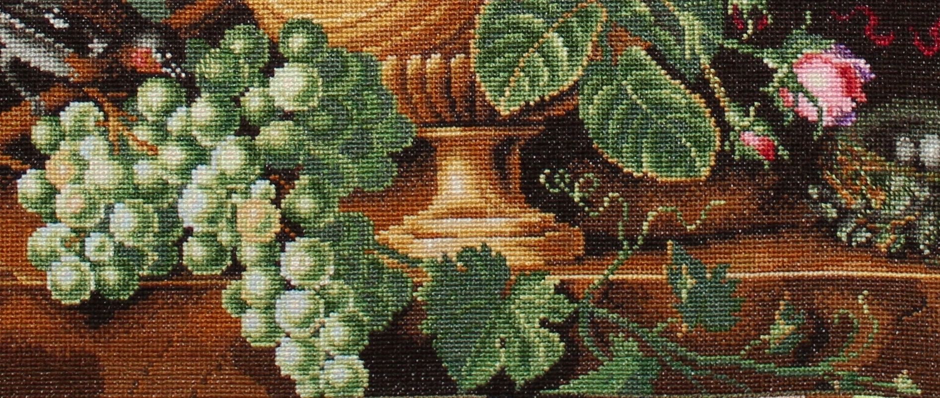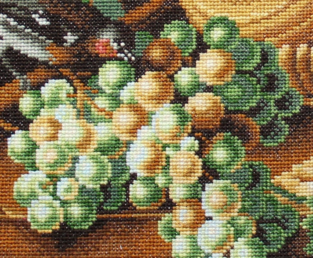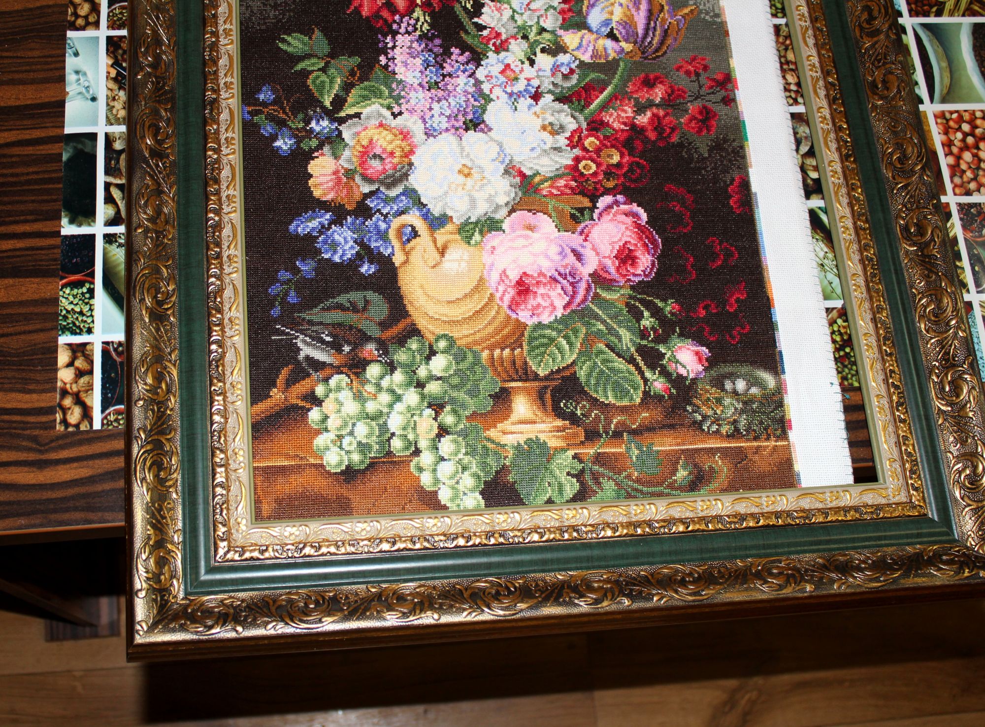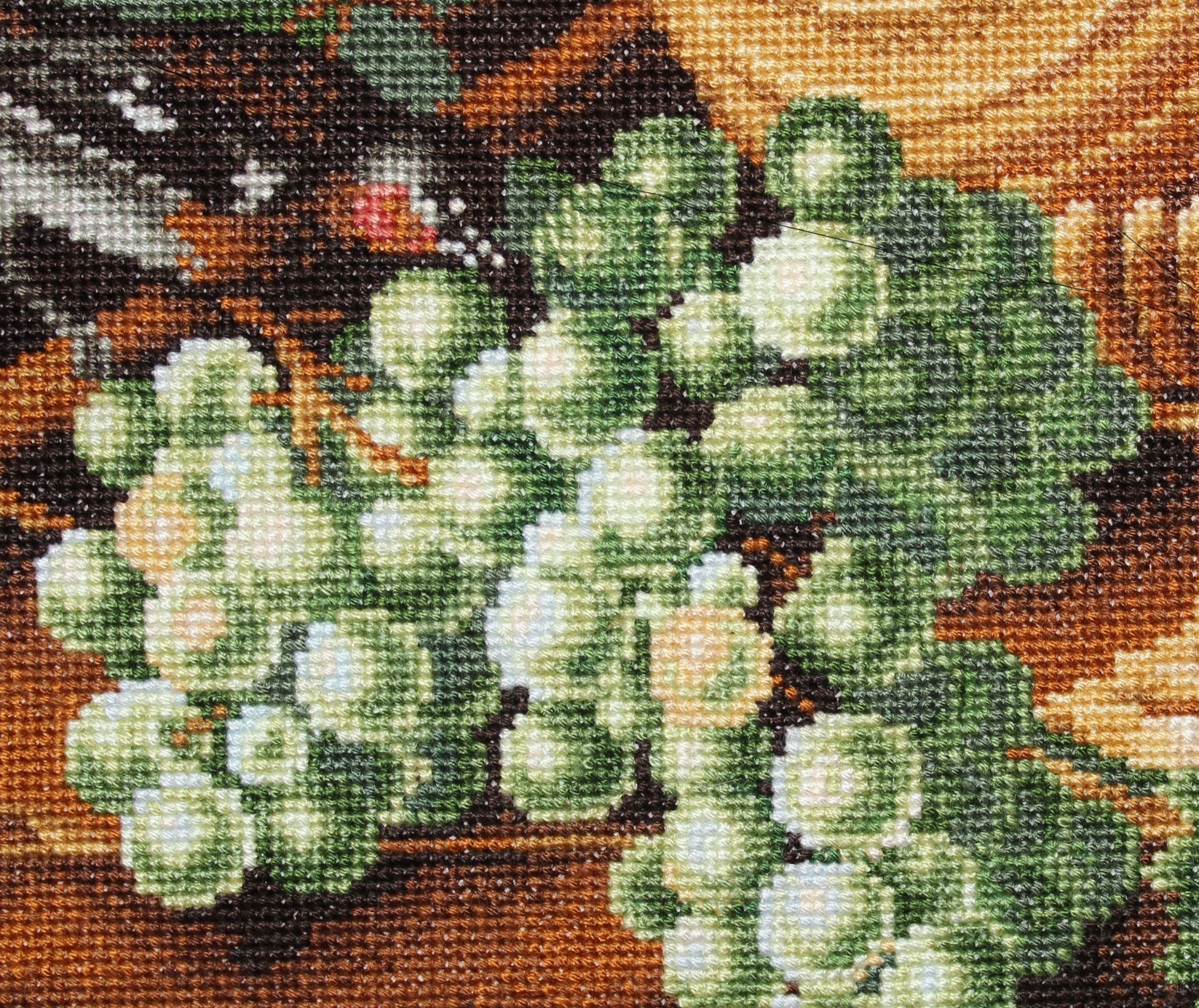 4 января 2023 Прежде чем приступить к работе я внимательно изучаю все листы схемы. По размещению значков быстро определяю степень сложности. Поняла что схема легкая. Однако были у меня фото картины художника и фото вышивки из журнала. Невооруженным глазом видны большие отклонения от оригинала в некоторых местах. Решила корректировать прямо во время работы за станком. Это заняло больше времени. Я была довольна потому что все равно продвигалась существенно каждый день. Но не все я учла. Когда сняла вышивку с рамы, то сразу бросилось в глаза что с гнездом я недоработала, а на виноград не обратила внимание сразу и по-быстрому вышила его по схеме. И еще мне тут же захотелось удлинить вышивку чтобы она смотрелась как на картине художника. Вот фото картины и вышивки по схеме. asdfgh090490, nata2017, smarko75 и 14 других сказали спасибо Поделиться сообщением Ссылка на сообщение