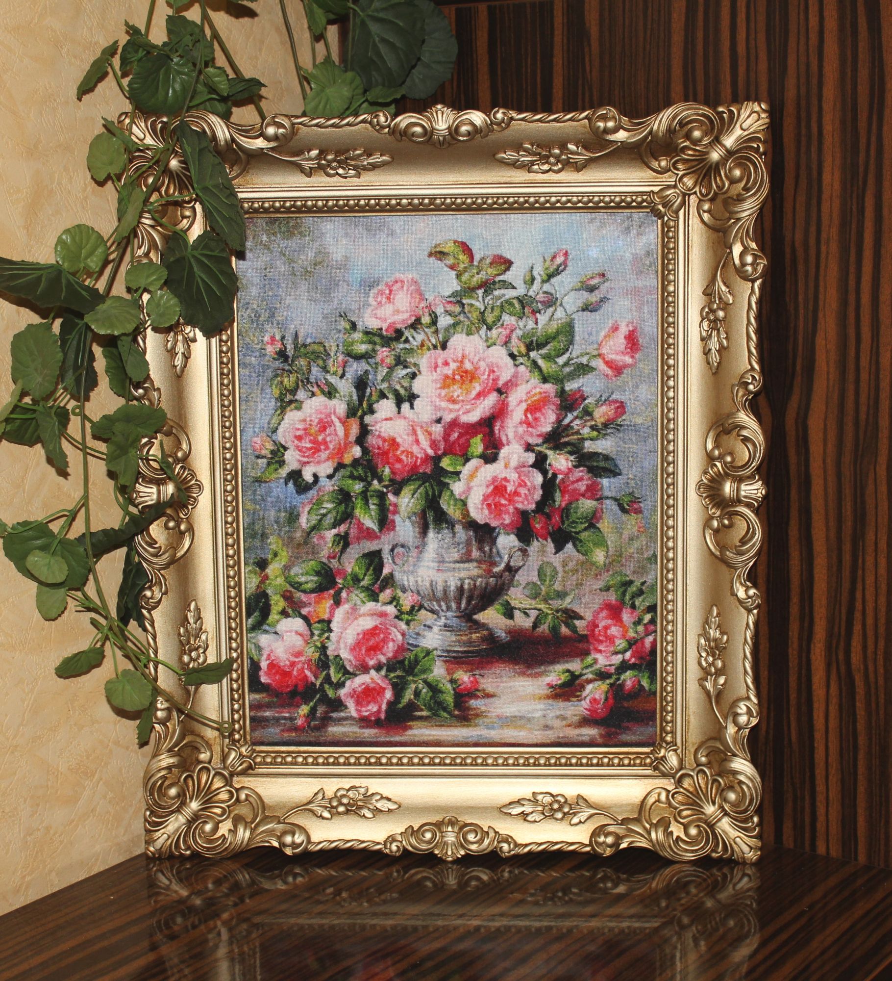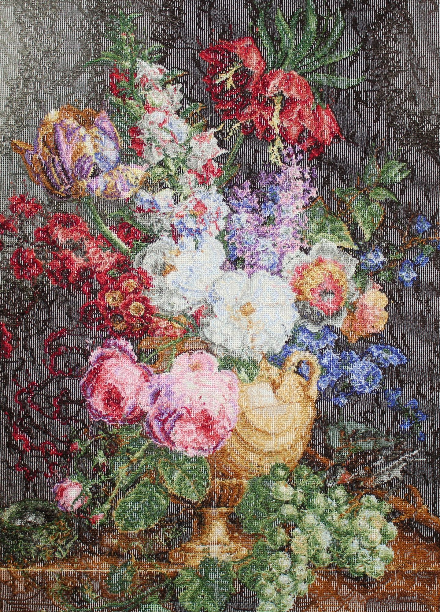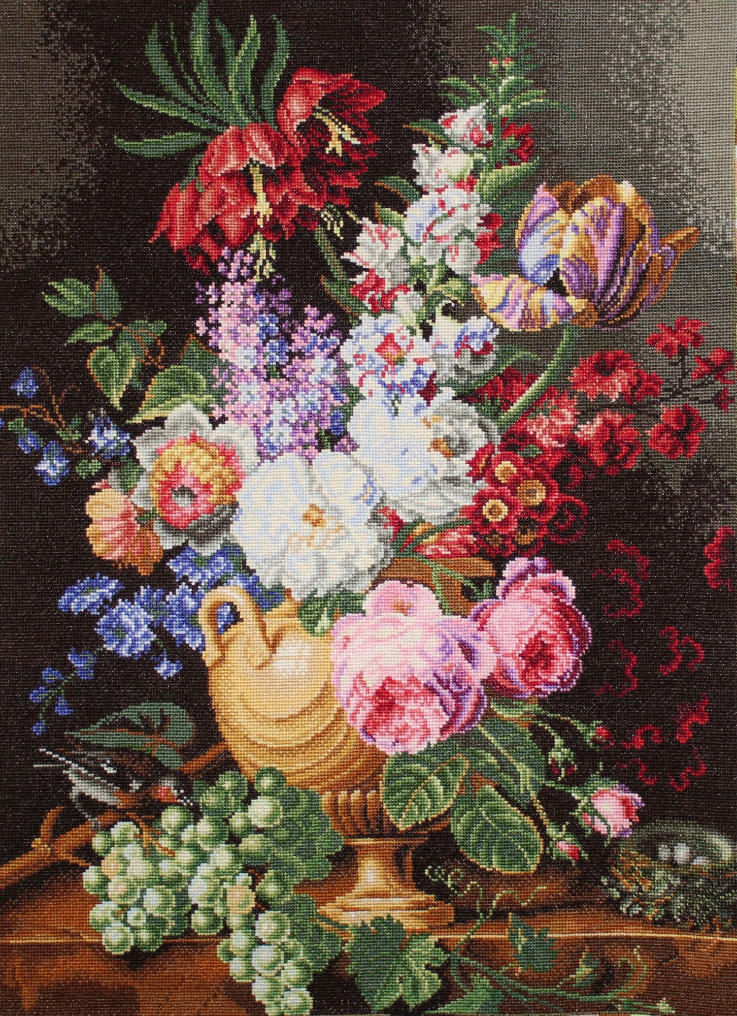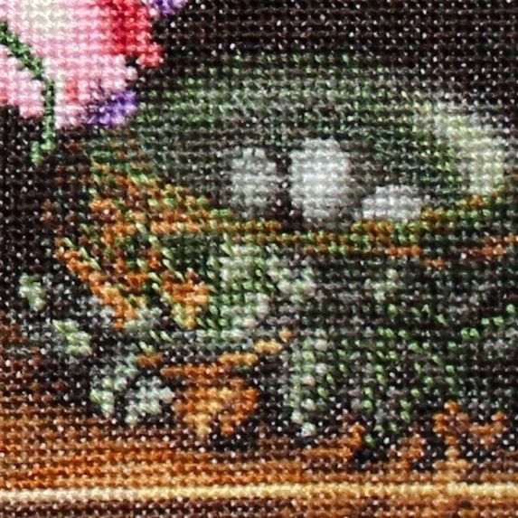 4 января 2023 Прежде чем приступить к работе я внимательно изучаю все листы схемы. По размещению значков быстро определяю степень сложности. Поняла что схема легкая. Однако были у меня фото картины художника и фото вышивки из журнала. Невооруженным глазом видны большие отклонения от оригинала в некоторых местах. Решила корректировать прямо во время работы за станком. Это заняло больше времени. Я была довольна потому что все равно продвигалась существенно каждый день. Но не все я учла. Когда сняла вышивку с рамы, то сразу бросилось в глаза что с гнездом я недоработала, а на виноград не обратила внимание сразу и по-быстрому вышила его по схеме. И еще мне тут же захотелось удлинить вышивку чтобы она смотрелась как на картине художника. Вот фото картины и вышивки по схеме. asdfgh090490, nata2017, smarko75 и 14 других сказали спасибо Поделиться сообщением Ссылка на сообщение