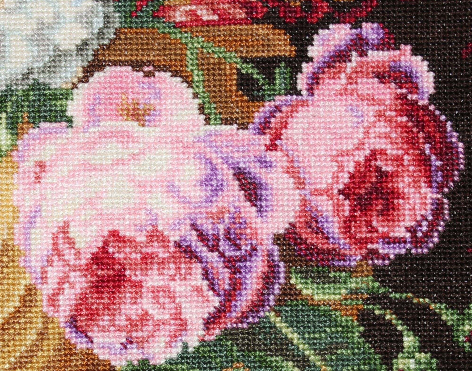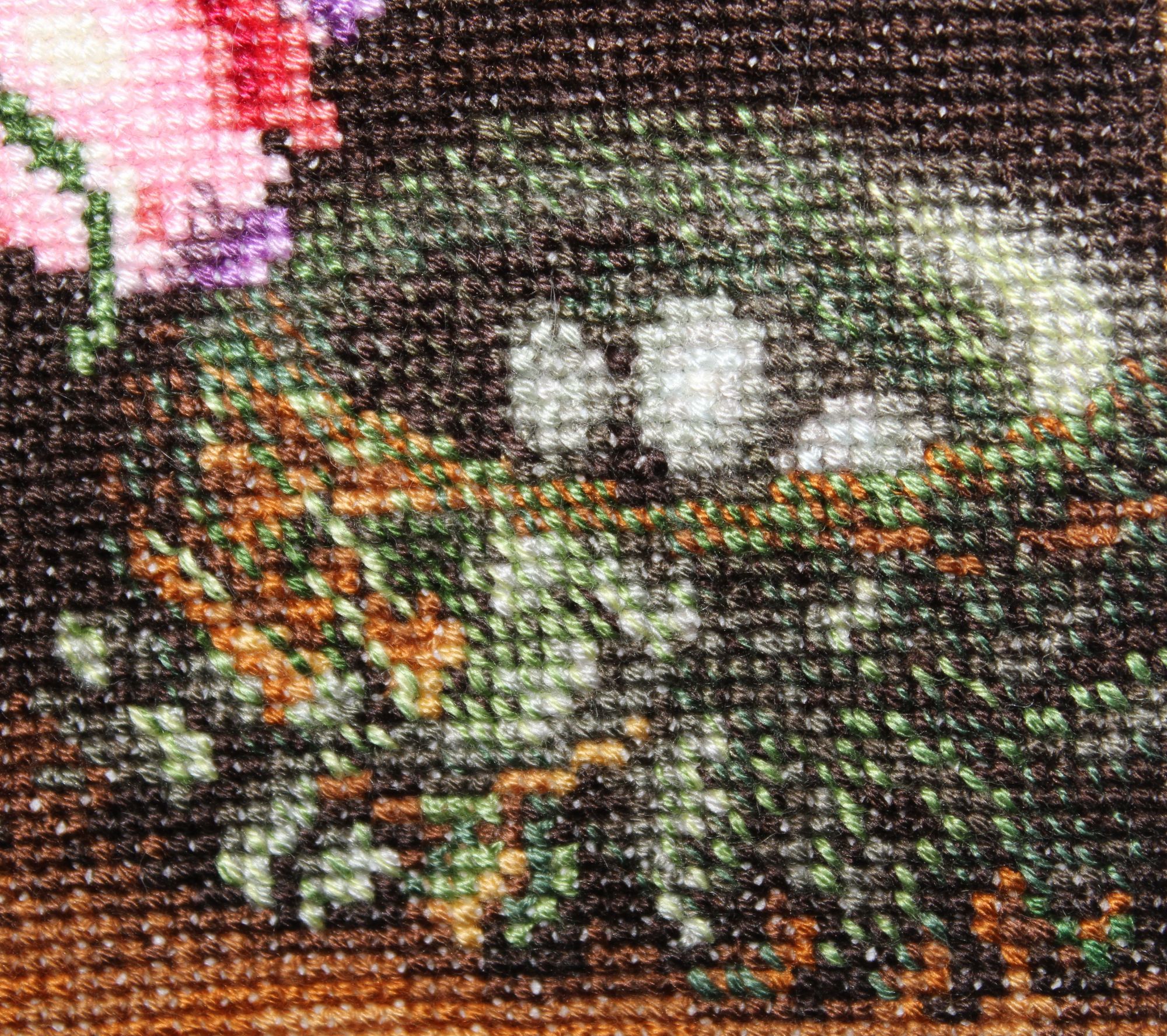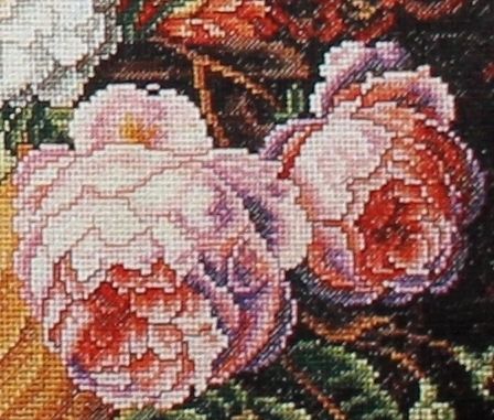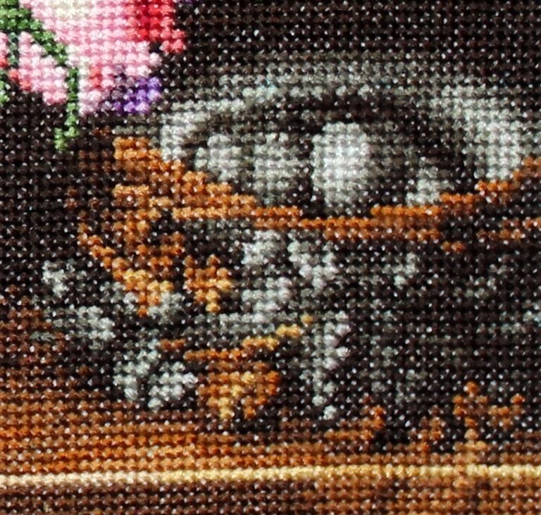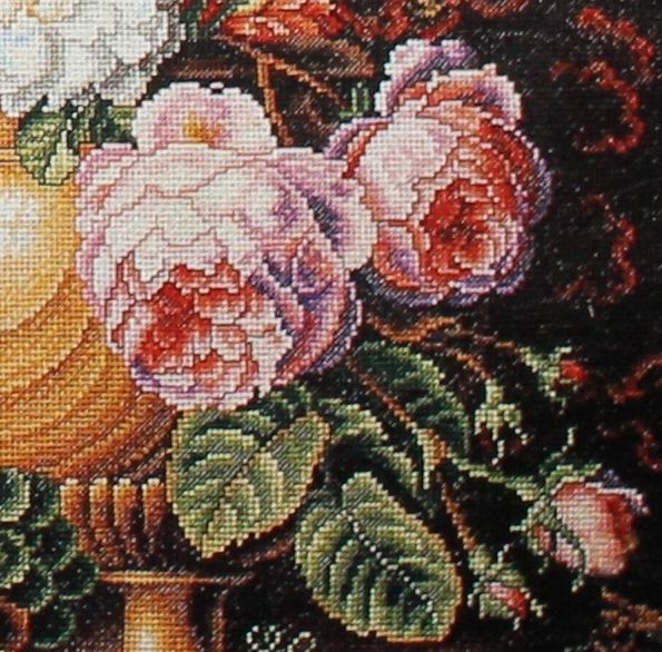 4 января 2023 Пятая. Горловина вазы и стебли роз. Фото слева по схеме. Фото справа мое. Те же розы что выше, но здесь акцент делаю не на них. Обратите внимание на горловину вазы и стебли роз, свисающих с нее. По схеме виден только контур верхней части вазы и ее горловина сливается с темным фоном вышивки. Цвет стеблей коричневый. на моем фото я цвета привела в соответствие с картиной. АлёNка, BlueeYeS, nogres и 13 других сказали спасибо Поделиться сообщением Ссылка на сообщение