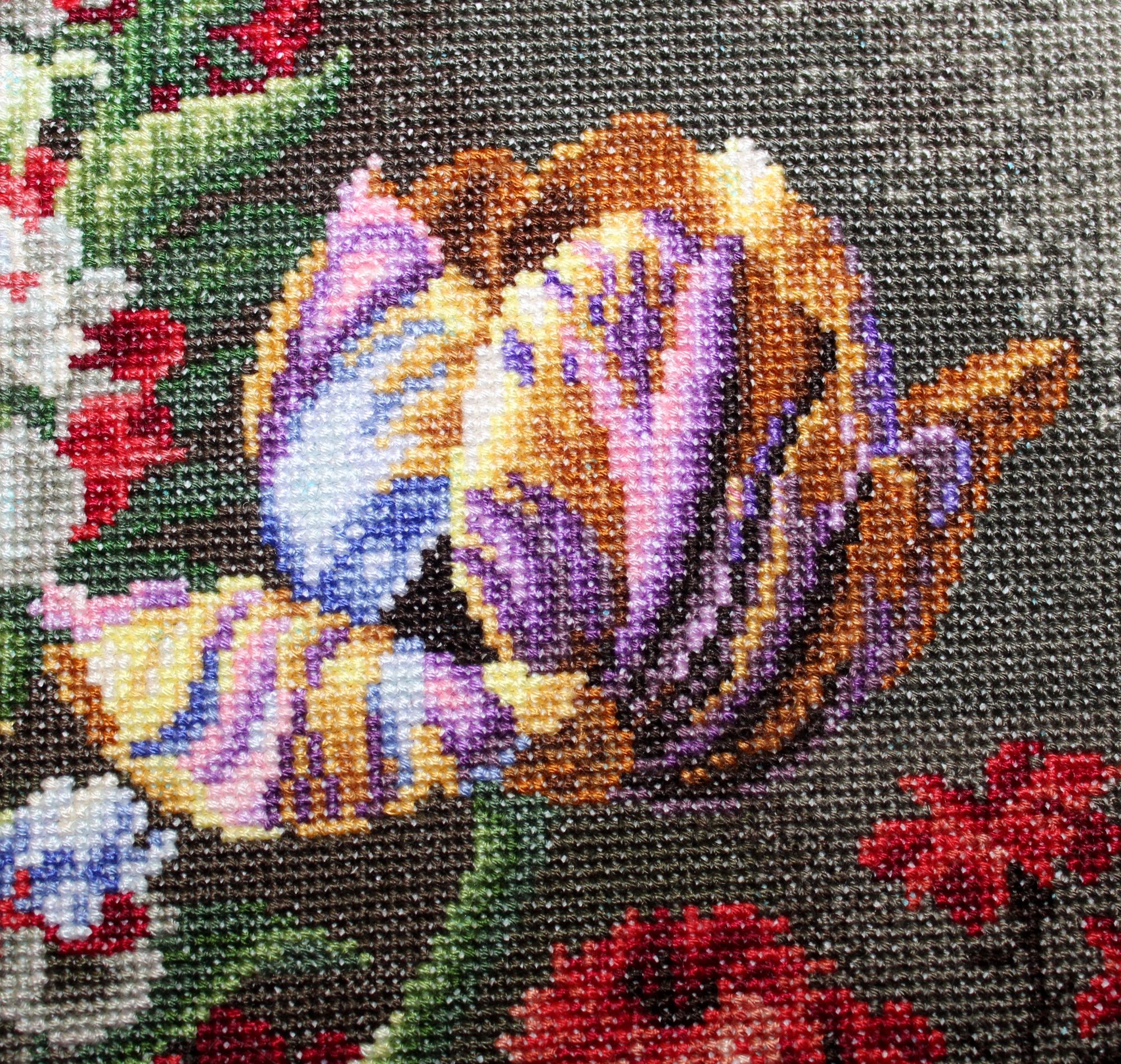 4 января 2023 Третья. Тюльпан. Фото слева по схеме. Фото справа мое. Сначала тюльпан я вышила по схеме. В правой части цветка было скопление черного и коричневого цветов. Очень темной оказалась правая часть тюльпана. Пришлось осветлить. Ввела желтую и сиреневую нити вместо черной и коричневой. А еще в цветке ближе к его серединке и не только вместо сиреневого цвета использовала розовый цвет. Получился цветок более яркий. asdfgh090490, Ксен40, svetlana62 и 15 других сказали спасибо Поделиться сообщением Ссылка на сообщение