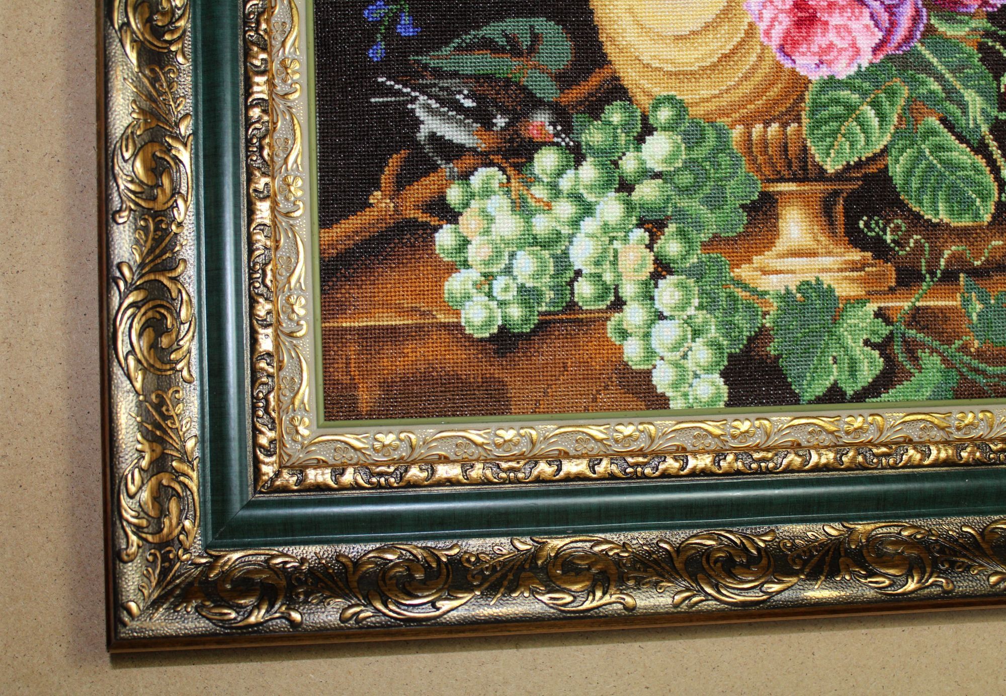 5 января 2023 4 часа назад, Leutnant Ripley сказал(а): Галина, поздравляю с завершением голландского букета, он прекрасен! Очень люблю такие картины... было интересно почитать об акцентах, внесённых в изображение, ваших собственных нотках. Вы поступили очень талантливо! Очень красивый багет, встречаю временами в продаже точно такие, с включениями в золотую раму "обыкновенной" краски. Модно в багетках, оказывается. Эта полоса как раз и является замечательной ноткой, акцентом, очень освежает. Именно к букету, натюрморту! Присоединяюсь к голосам девочек за то, чтобы оставить зеленый цвет. очень благородный оттенок, кстати. Специально из-за него кинулась писать Вам сообщение! )) Многие заказывают ставить двойную раму, чтобы достичь такого эффекта, а у Вас ужЕ два в одном, двойная красота, не нужно двойной багет сооружать... Сплошное золото будет ещё, где применить, вышивальный репертуар у Вас богатый! Желаю творческих вышивальных успехов и примите поздравления с наступившим Новым Годом! Счастья и здоровья! Спасибо, Ольга. Мне тоже нравится багет с полосами. Есть у нас еще точно такой же багет, но с бордово-коричневой полосой. Надо идти в приемную багетной мастерской с вышивкой и прикладывать образец. Но скорее всего остановлюсь на зеленом. АлёNка, svetlana62, Tatiana2406 и 2 других сказали спасибо Поделиться сообщением Ссылка на сообщение
