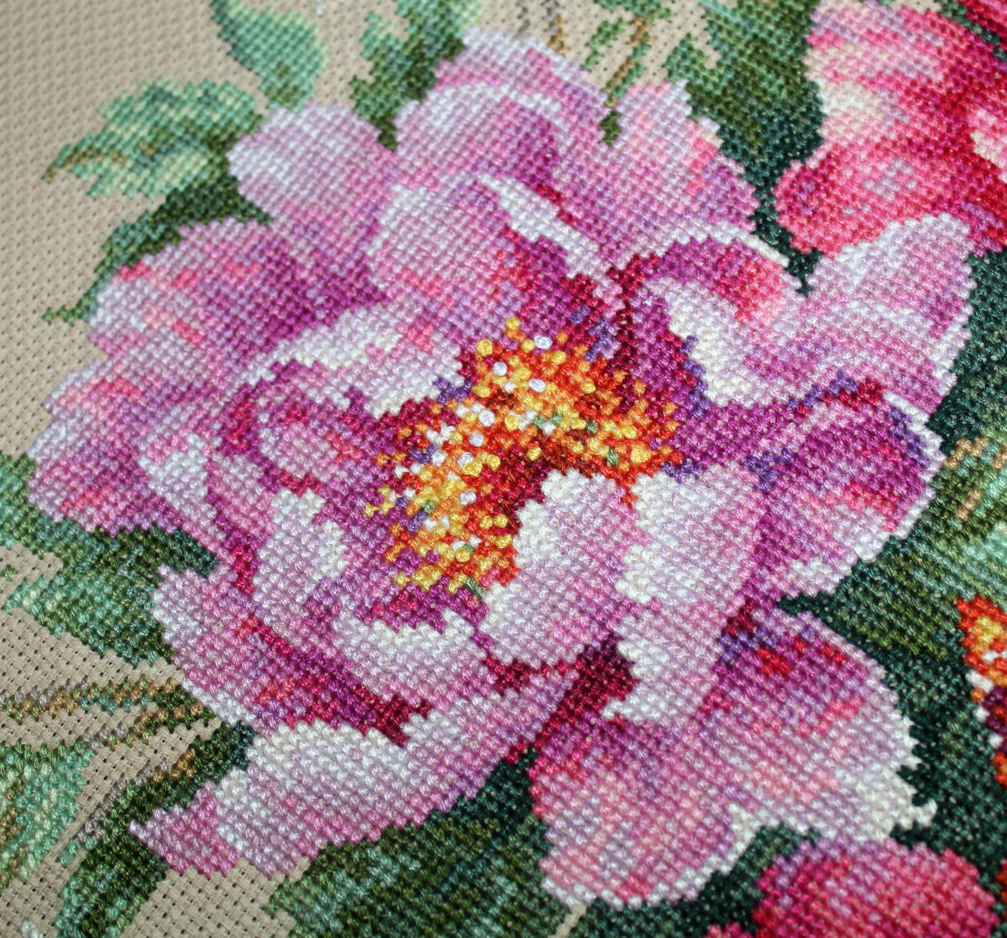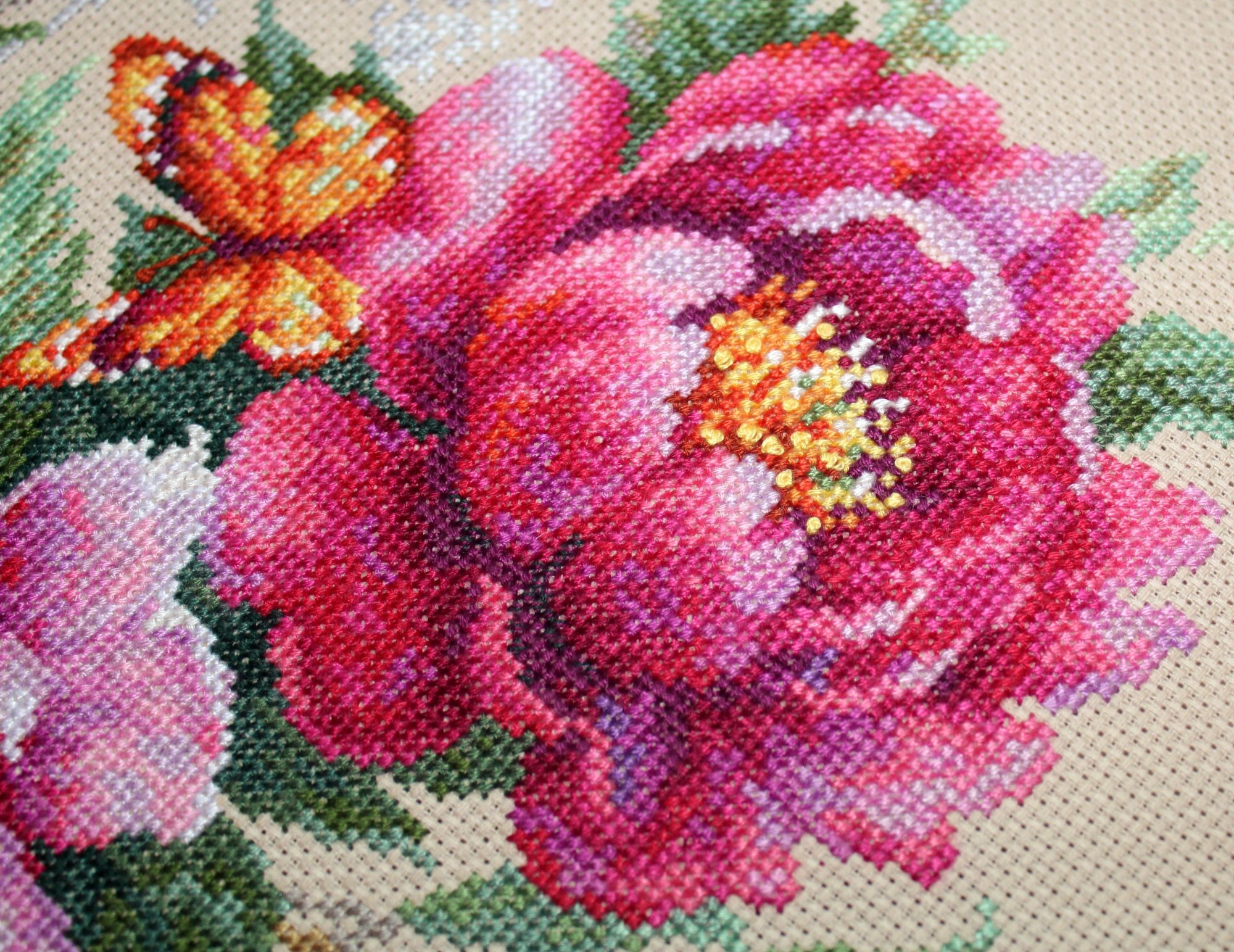 4 сентября 2023 Сегодня завершила процесс над работой "МАГИЯ ЦВЕТОВ.ПИОНЫ". Тоже начала в январе и по чуть-чуть вышивала параллельно с натюрмортом. Обычно по схеме я определяю степень сложности работы и примерно знаю сколько нужно времени для того чтобы вышить. Однако иногда ошибаюсь. Как, например, с этой работой. Думала что на цветы уйдет три дня, на бутоны - два дня, на все остальное еще пять дней. С первых крестиков поняла что работа сложная. Идею вышить быстро отодвинула подальше и стала вышивать по несколько крестиков в день так как все время уходило на натюрморт. (Фото в гаечку) Lara2808, Inna_D, lefkorosida и 17 других сказали спасибо Поделиться сообщением Ссылка на сообщение