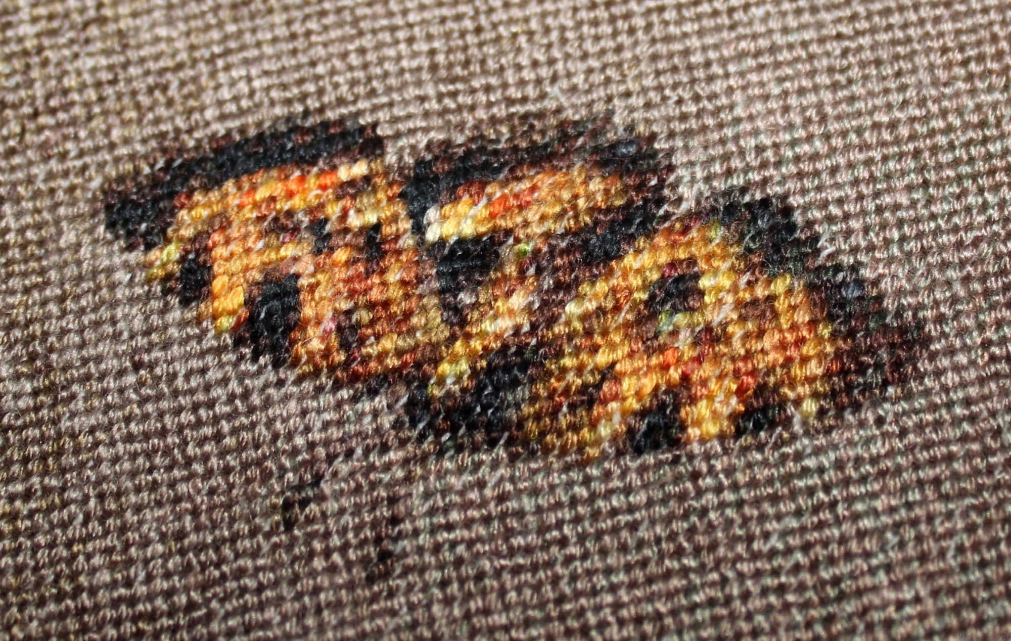 5 сентября 2023 Вот еще фото. Справа на схеме в зеленый цвет закрашены вышитые значки. Желтым цветом отмечены те, которые буду вышивать. На схеме я иногда отмечаю желтым цветом разные значки и друг за дружкой их вышиваю чтобы ускорить процесс. Слева эти же вышитые полукрестики на канве. Когда все значки определенного цвета вышиты я нитку не обрезаю, а перекидываю в лист схемы, который расположен выше данного листа. Не вижу смысла их обрезать, а потом вводить заново. На канве слева видно что оставшиеся нитки размещены выше. Некоторые закончились и их придется вводить заново. Некоторые участвуют в работе впервые и их тоже надо вводить. На схеме они не закрашены и на канве не вышиты. Inna_D, Путешественница, АлёNка и 8 других сказали спасибо Поделиться сообщением Ссылка на сообщение