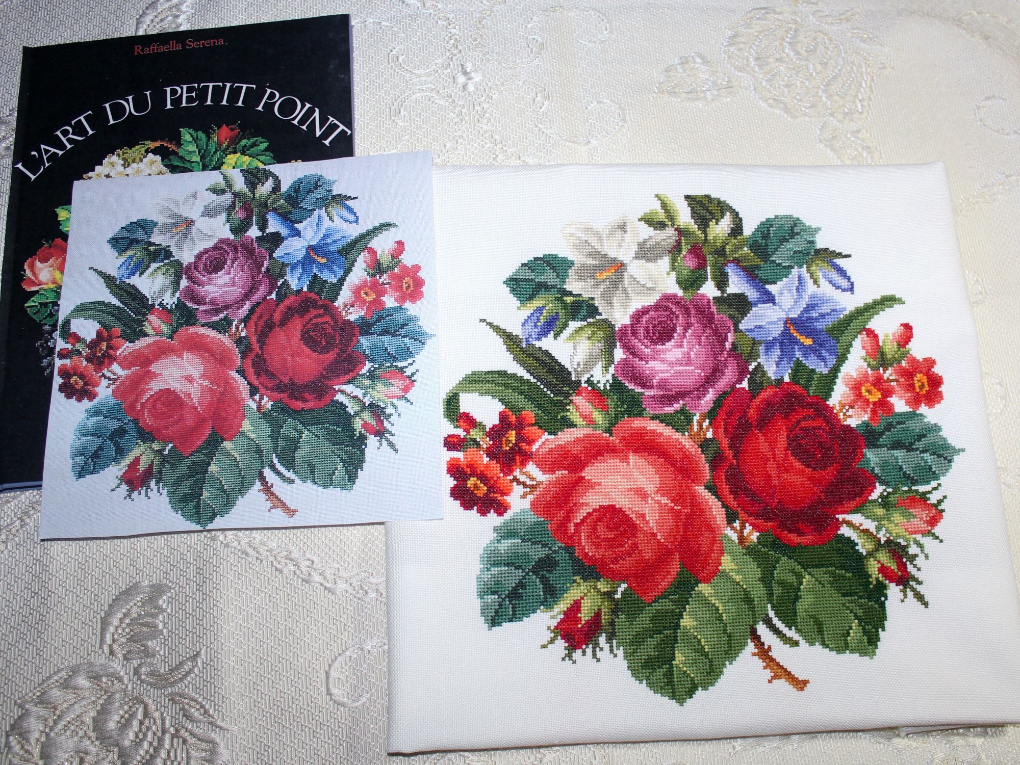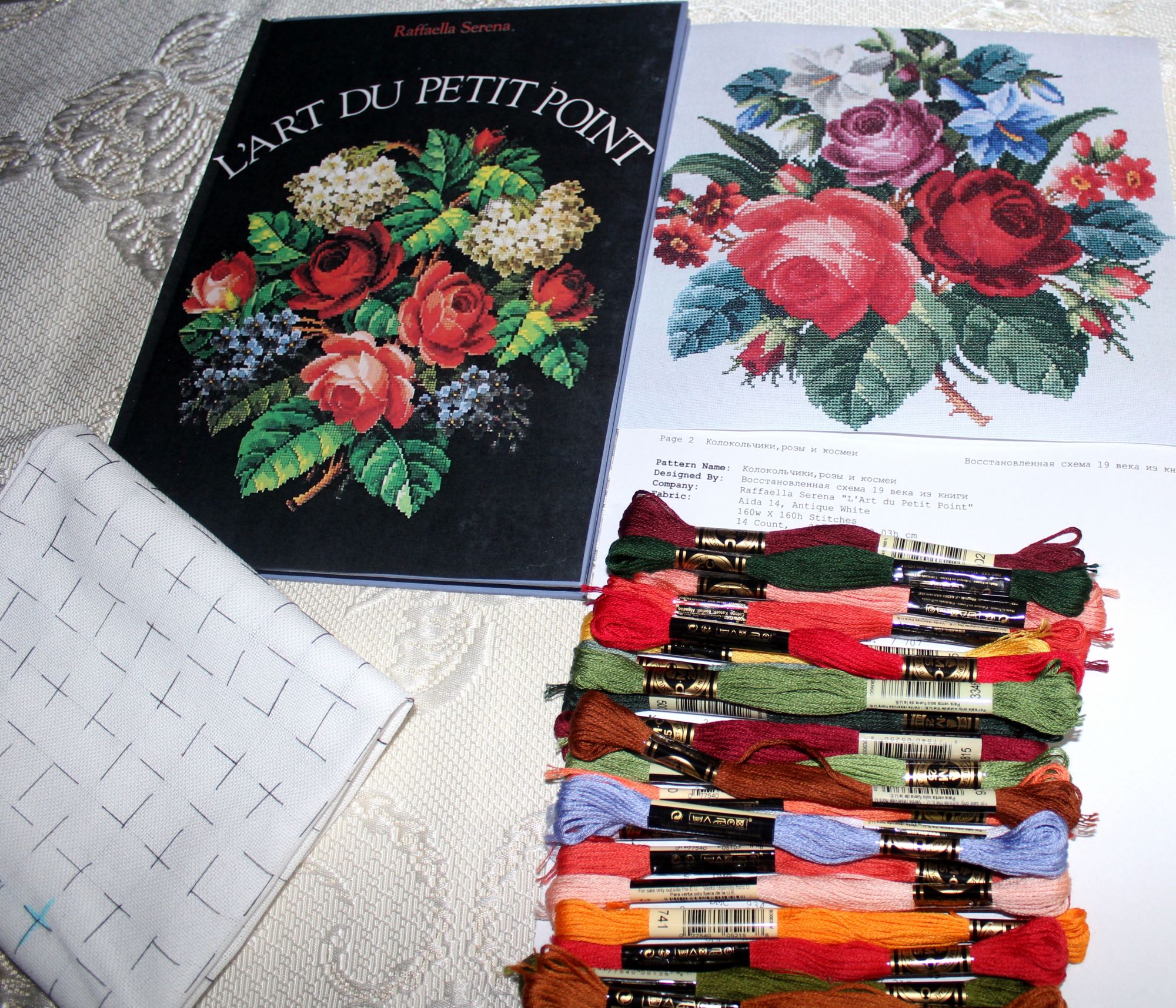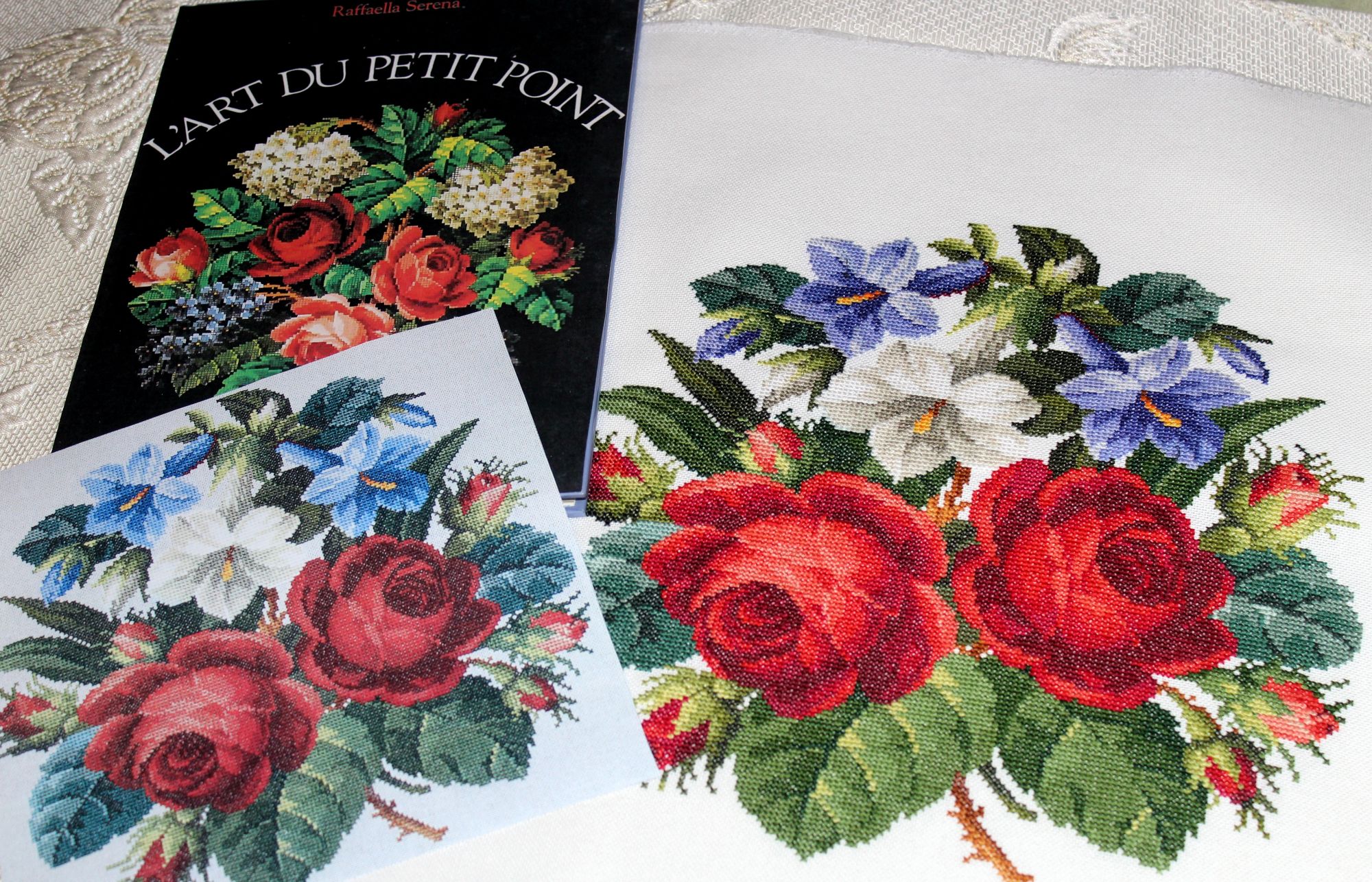 4 сентября 2024 Далее про два парные ретро букета с колокольчиками и розами. Их вышила по восстановленным схемам 19 века из книги Raffaella Serena "L art du Petit Point". В переводе "Искусство маленького крестика". В этой книге более 200 схем. Можно найти одни и те же цветы которые повторяются в разных схемах с другими цветами. Я себе выбрала схемы которые так похожи и в то же время разные. У них существует шесть сходств и шесть различий. Вот посмотрите. BlueeYeS, nogres, Majena и 12 других сказали спасибо Поделиться сообщением Ссылка на сообщение