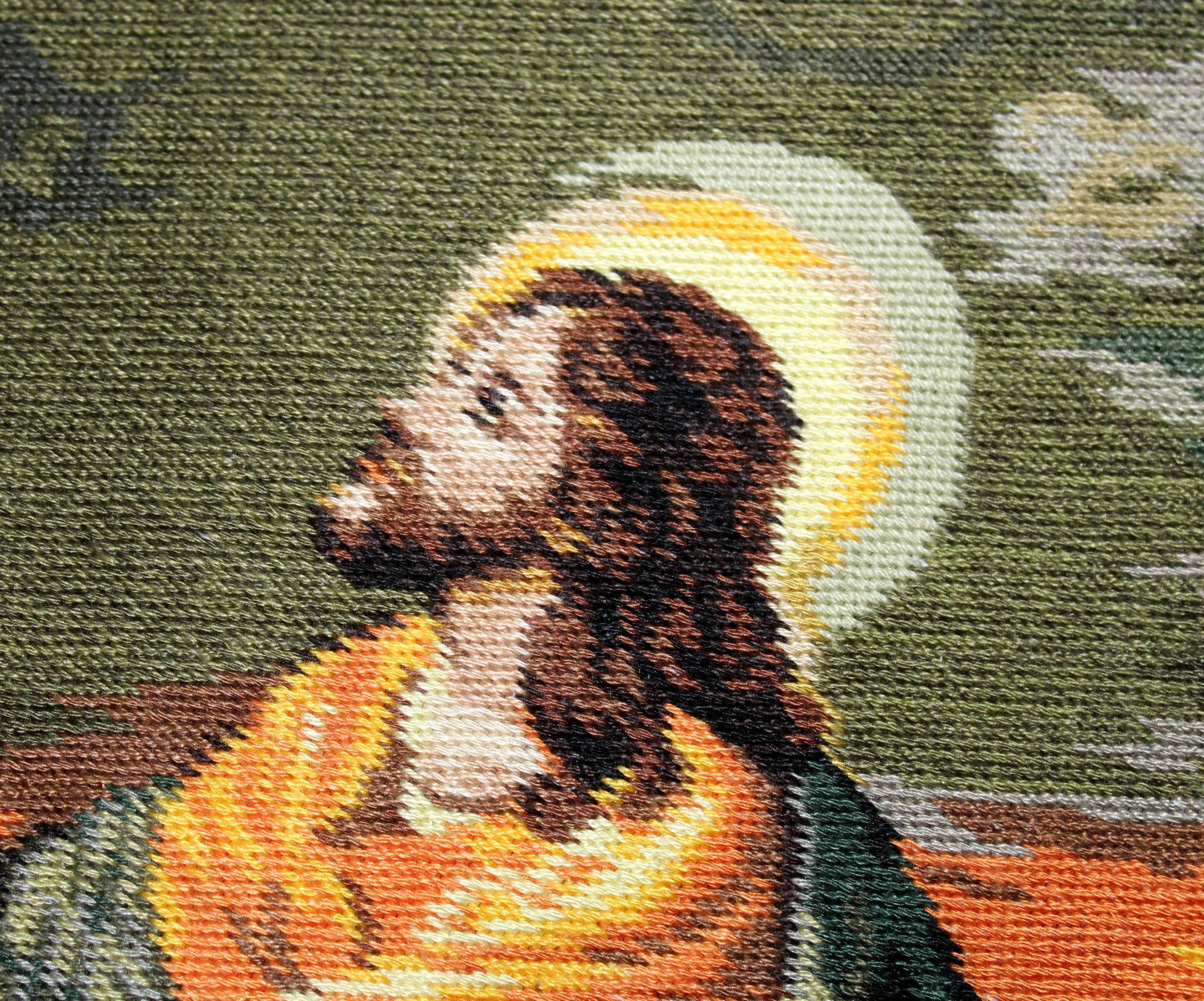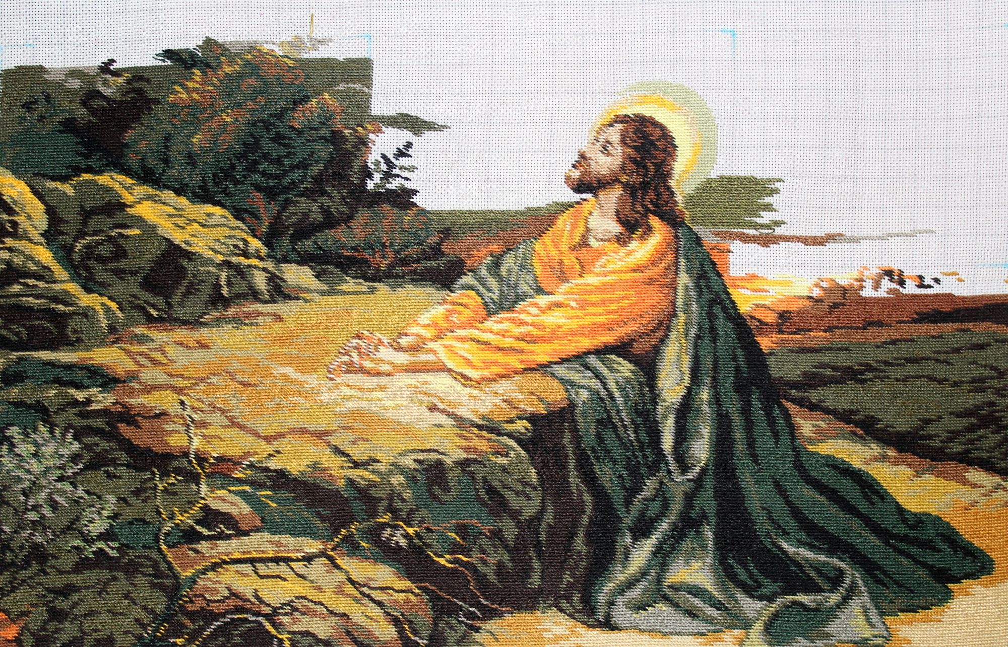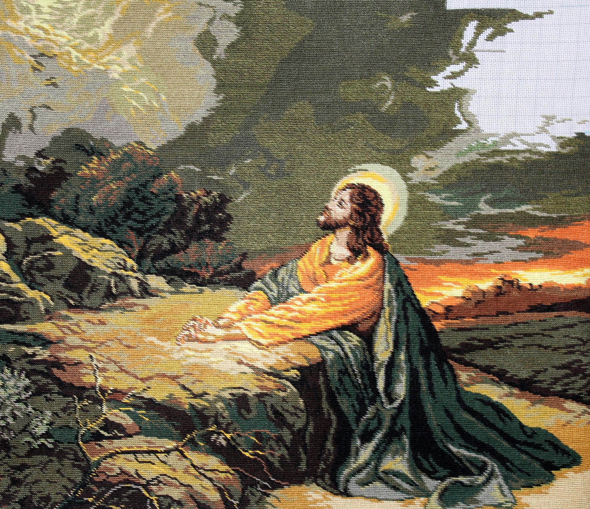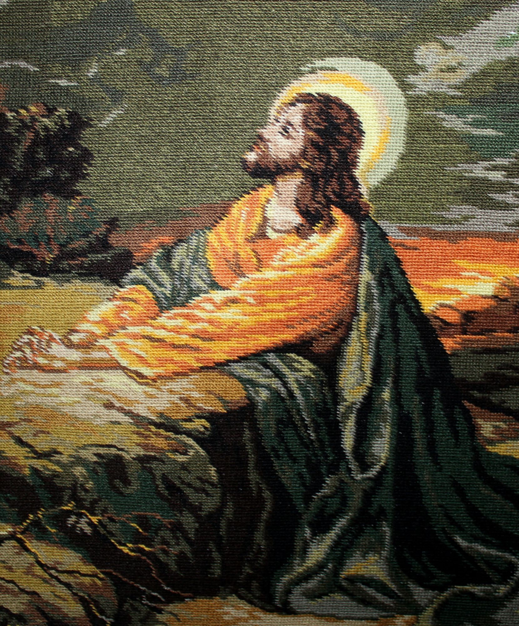 8 октября 2024 Как люблю я эту работу! Набор купила так давно что даже не помню когда. Работа шла быстро и легко. Как говорится в таких случаях припеваючи. Техника длинный гобеленовый стежок через две клеточки на канве 20 каунта. В начале прошлого года завершила большую серию дам. Летом этого года привела в порядок две кошачьи серии. Я это пишу к тому что пришло время завершить серию "Религия" начатую примерно в одно время с предыдущими сериями. "Моление о чаше" предпоследняя. Осталось вышить последнюю картину "Исус и самаритянка" после чего представлю серию в окончательном варианте. Кисуля, Сибирская Кошка, АлёNка и 6 других сказали спасибо Поделиться сообщением Ссылка на сообщение