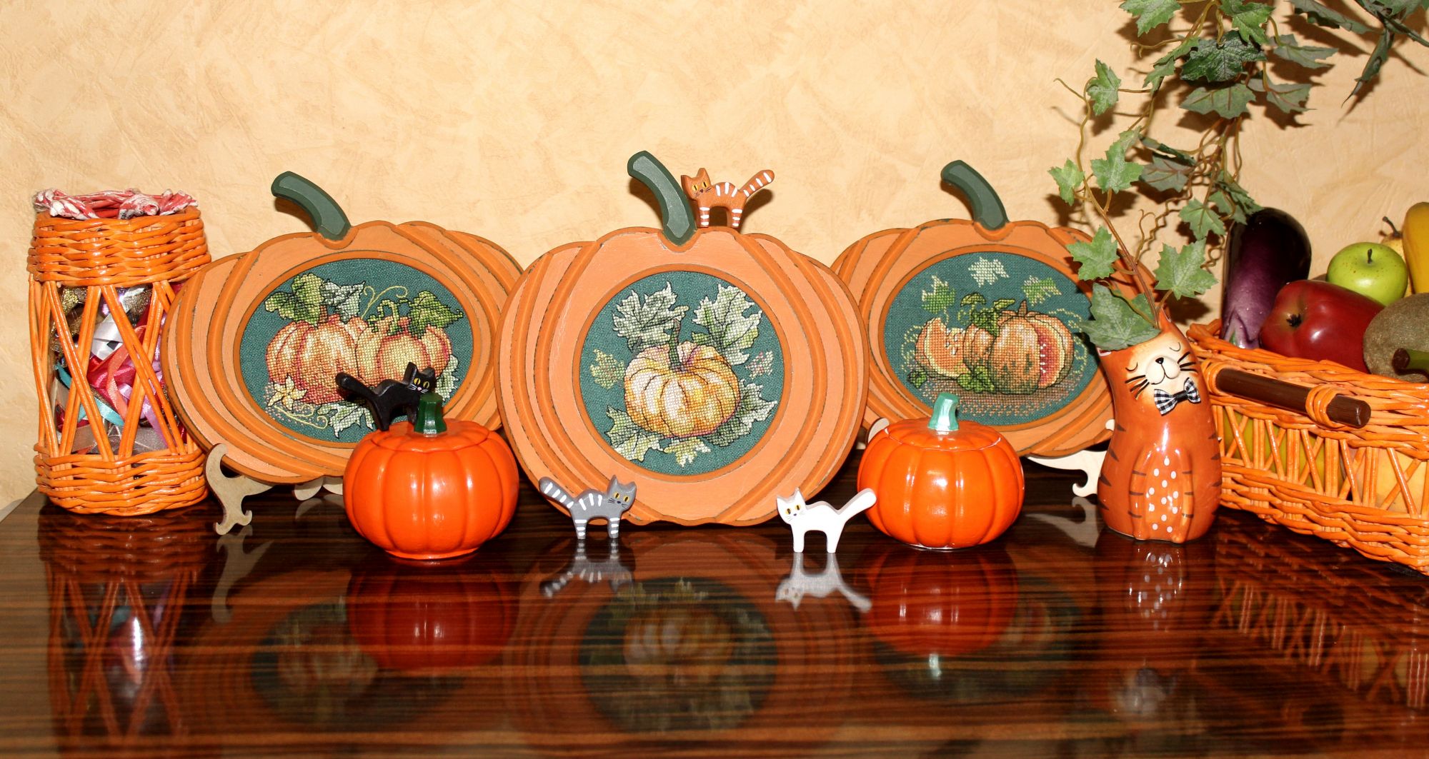 23 октября 2025 А вот сфотографировать все три картинки с тыковками оказалось делом сложным. Мне хотелось показать всю тематическую стенку. Полезла на стремянку и с нее полетела камнем вниз. Думала не встану. Но все обошлось. После попытки №5 все получилось АлёNка, Majena, kreolka и 16 других сказали спасибо Поделиться сообщением Ссылка на сообщение