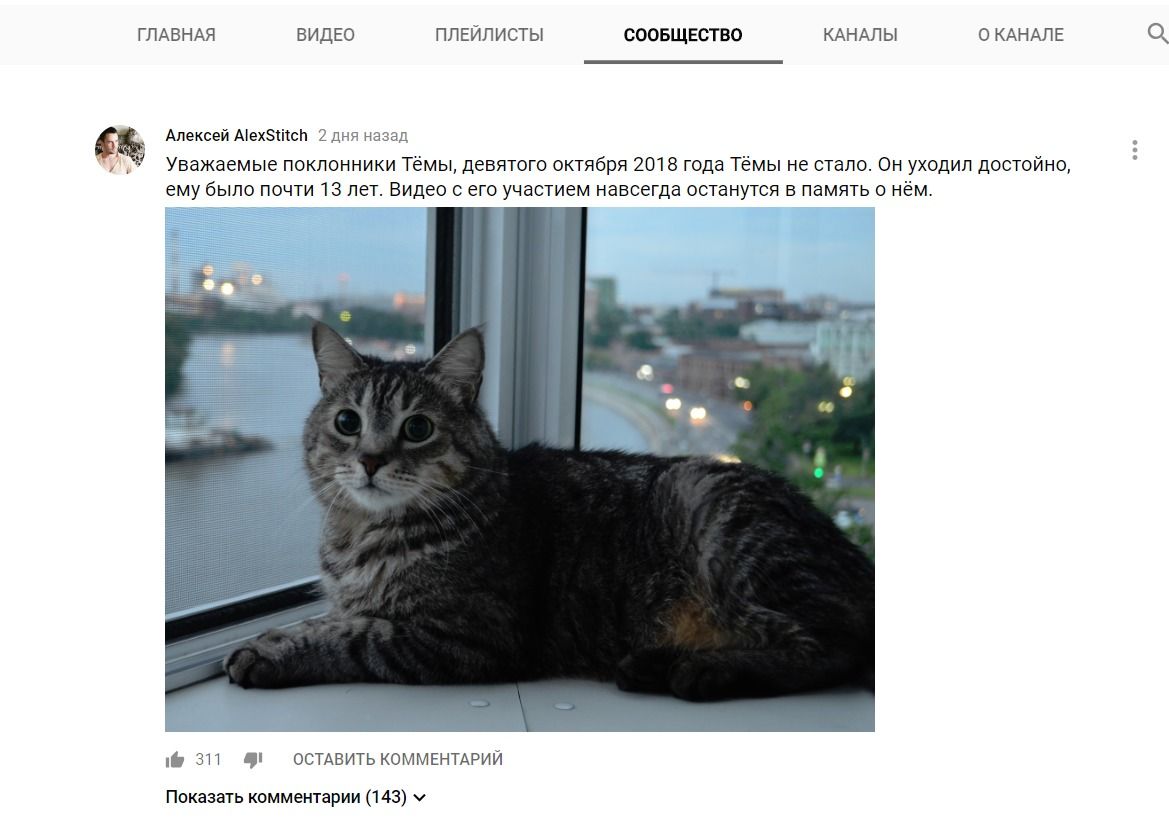 2 ноября 2018 1 час назад, Кисюня сказал: Зашла сегодня к Алексу посмотреть видео о покупках, а там такая печалька... Показать содержимое Да...Я второй день хожу чуть не плачу. У самой любимая кошечка. Страшно представить. Кисюня, Gingery, M@rgarita и 2 других сказали спасибо Поделиться сообщением Ссылка на сообщение