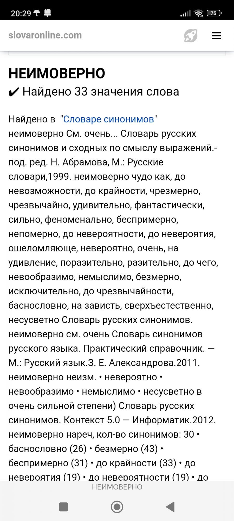 15 марта 2023 Слово неимоверно есть в словаре Ожегова. Значение слова: "Чрезмерно большой, чрезвычайный". У слова невероятный два значения: 1. Неправдоподобный, такой, которому невозможно поверить. 2. Очень большой, значительный, чрезвычайный. О том, что слово неимоверный украинского происхождения информации нигде не нашла. Из Вики: Этимология Происходит от прилагательного неимоверный, далее от праслав. имо-, от кот. в числе прочего произошли: ср. др.-русск., ст.-слав. имовитъ «состоятельный, зажиточный», а также ст.-слав. ѩти вѣрѫ «верить». (Источник - Этимологический словарь русского языка Макса Фасмера) Т.е. слово имеет славянский корень, украинское слово «нэймовирно” очевидно тоже. HeleneBlanche, irisska, tanya_mirymir и 34 других сказали спасибо Поделиться сообщением Ссылка на сообщение