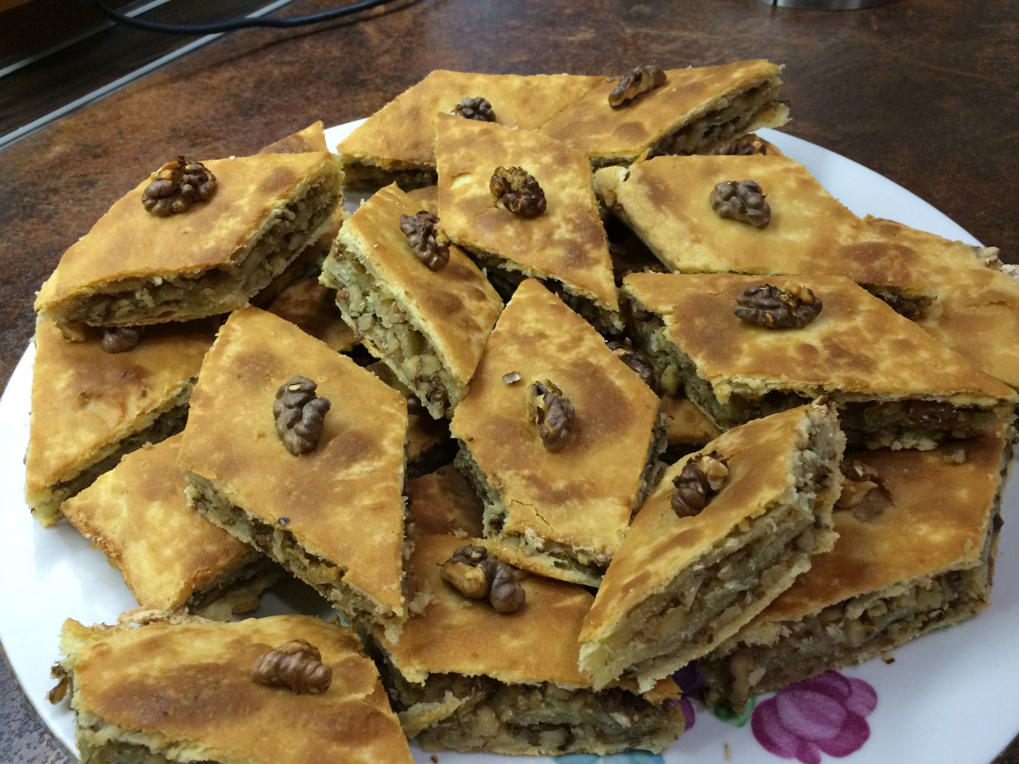 7 марта 2016 ПахвалаПахлава:) 3 желтка, 300 грамм масла, 1 стакан сметаны, 3 стакана муки. Масло должно быть мягкое, порубить его с мукой, смешать сметану с желтками , добавить В муку с маслом, замесить тесто, как только перестанет липнуть к рукам- убрать в морозилку. 3 белка взбить , добавить постепенно 1,5 стакана сахарной пудры, взбить, порубить грецкие орехи- примерно 2 стакана, если есть больше- кидайте смело больше:), все смешать. тесто разделить на 3 части, раскатать на всю поверхность противня- не очень тонко, но и не толсто, если останется на противне свободное место- не страшно, первый слой теста, половина смеси с орехами, второй слой теста, остаток смеси и накрыть третьим слоем.Сразу сделать линии разреза, но только наметить, не прорезать. Выпекать в уже разогретой духовке на 180 примерно 20 минут, потом верхний слой смазать медом, украсить орехами и допекать еще минут 10-15. Разрезать горячую. Предупреджаю- рецепт не для тех, кто на диете:) И еще- если мне хочется побольше- я добавляю одно яйцо и сметану. В морозилку это по рецепту положено- чтоб легче раскатывать, но я и так справляюсь. А вообще это такой рецепт, что можно частично и на глаз:) Удачи! Татуся, Цыпа, lubanka и 14 других сказали спасибо Поделиться сообщением Ссылка на сообщение