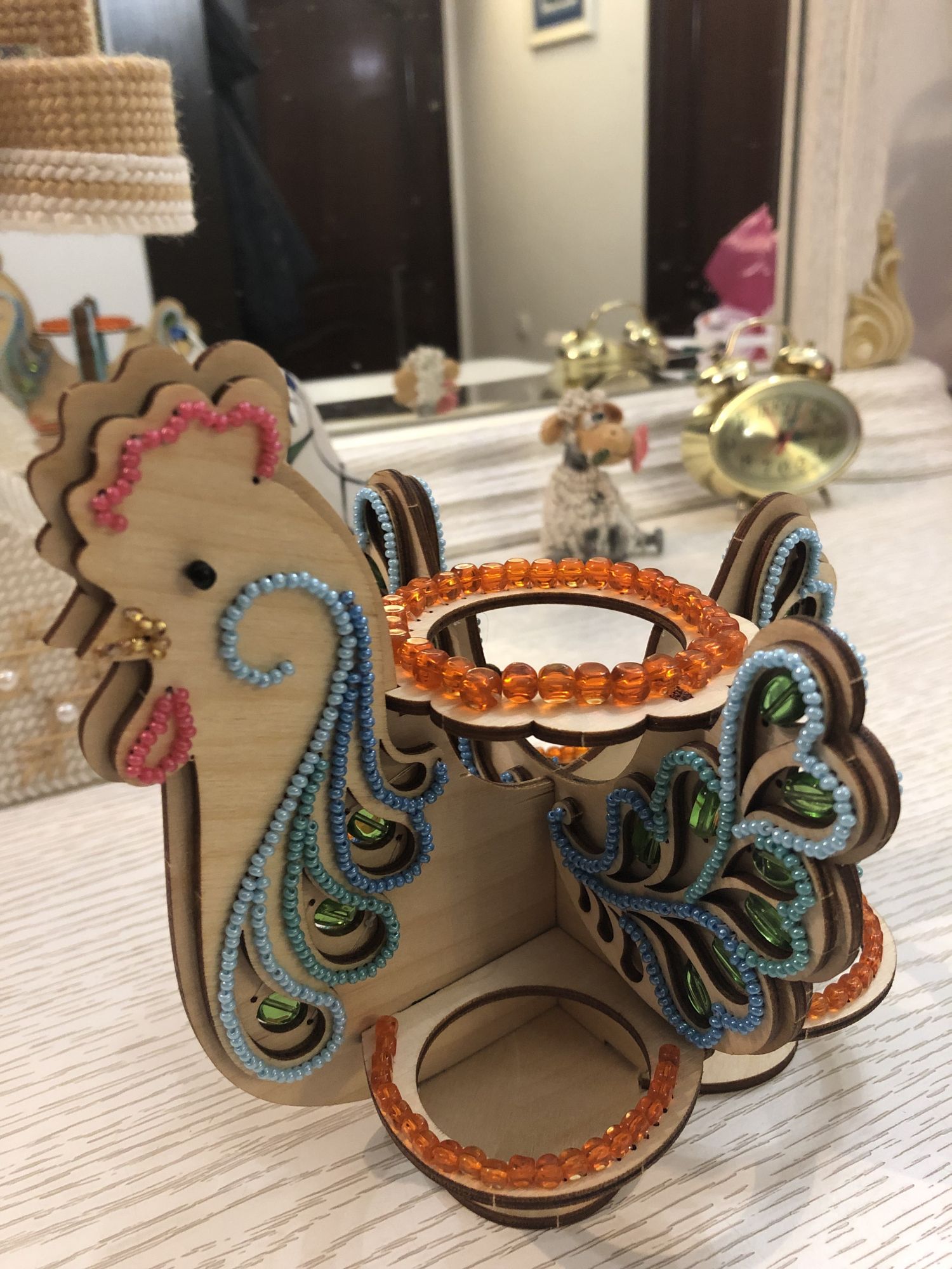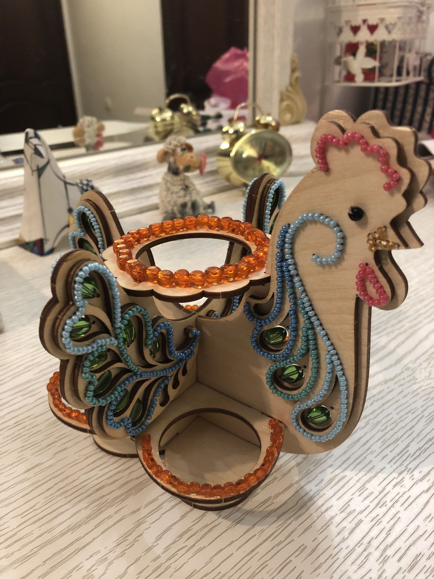 20 января 2020 Покажу ещё рабочий процесс ибо он завершен:). Чаривна Мить Пасхальная курочка. Подставка для 5 яиц. Вот процесс И собственно результат Остались некоторые вопросы - как крепить бусины , чтоб не было видно нитку с другой стороны? Ибо эту сторону потом видно ? Ответ не найден:). Как крепить бусины , если они меньше отверстий и все время крутятся ? Ответ не найден :). Как пришивать бусины в каждую дырочку на фанере , если ширина бусин больше оставленного между дырочками места ? Ну тут хоть в конце я догадалась некоторые бусины пропустить :). Получилась вот такая поделка, назовём её так - будем использовать по назначению на праздник . На ужин вам от Маши гречневая лапша с овощами и креветками - оно как ....:). Сама придумала , вышло вкусно . Юнона1960, Catopuma, Кисуля и 26 других сказали спасибо Поделиться сообщением Ссылка на сообщение