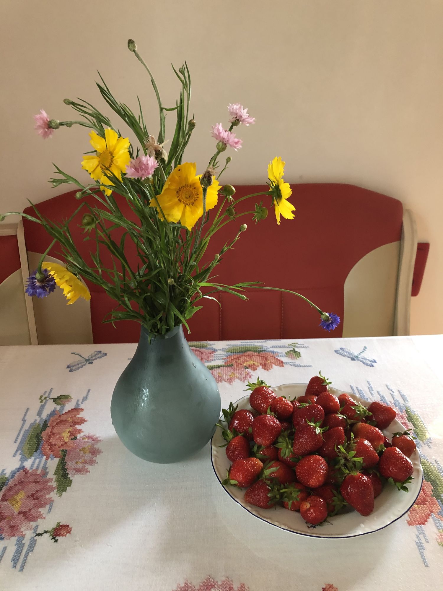 3 июня 2021 12 минут назад, svetles сказал(а): Разместила вышивки , кое что временно , не могу пока до конца определиться и новые крючки неохота вешать , стараюсь все на старых размещать )) буду глобально менять все вышивки если замучу ремонт ...) пока вот так как есть Срезала розовые пионы ,у них такие тонкие стебли , совсем не держат сам цветок , но на улице они вообще все были в земле , так что пусть уж так - вот это я понимаю , пионы так пионы - первые розочки - тоже красиво )) Не красиво, а восхитительно! И пионы, обожаемые, и розочки, и клубничка! svetles сказал(а) спасибо Поделиться сообщением Ссылка на сообщение