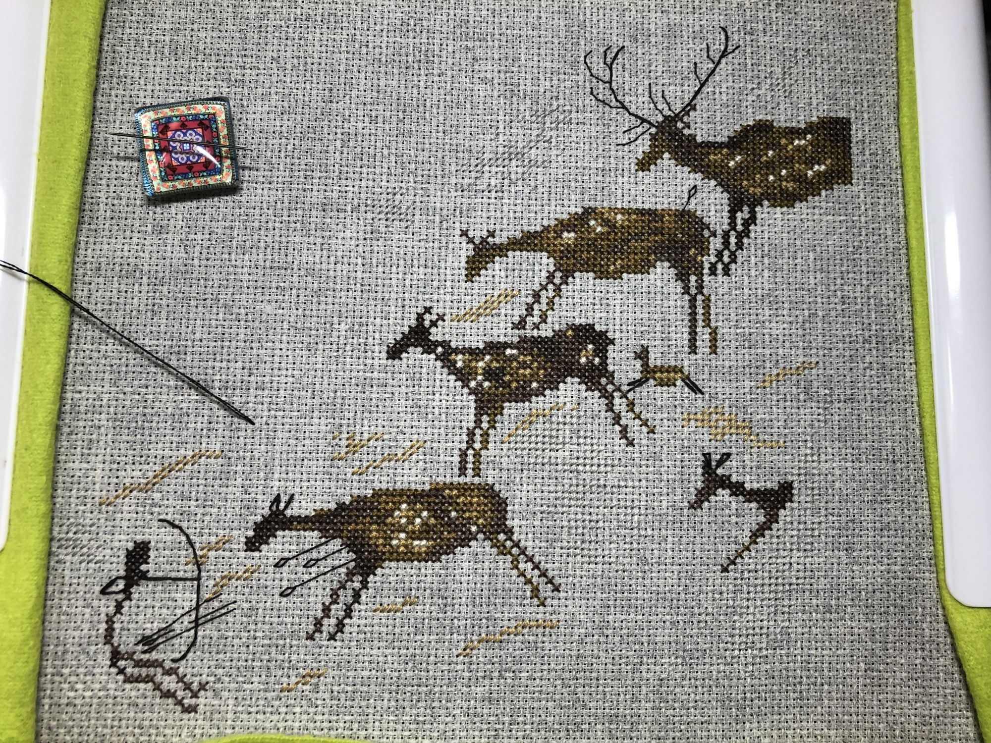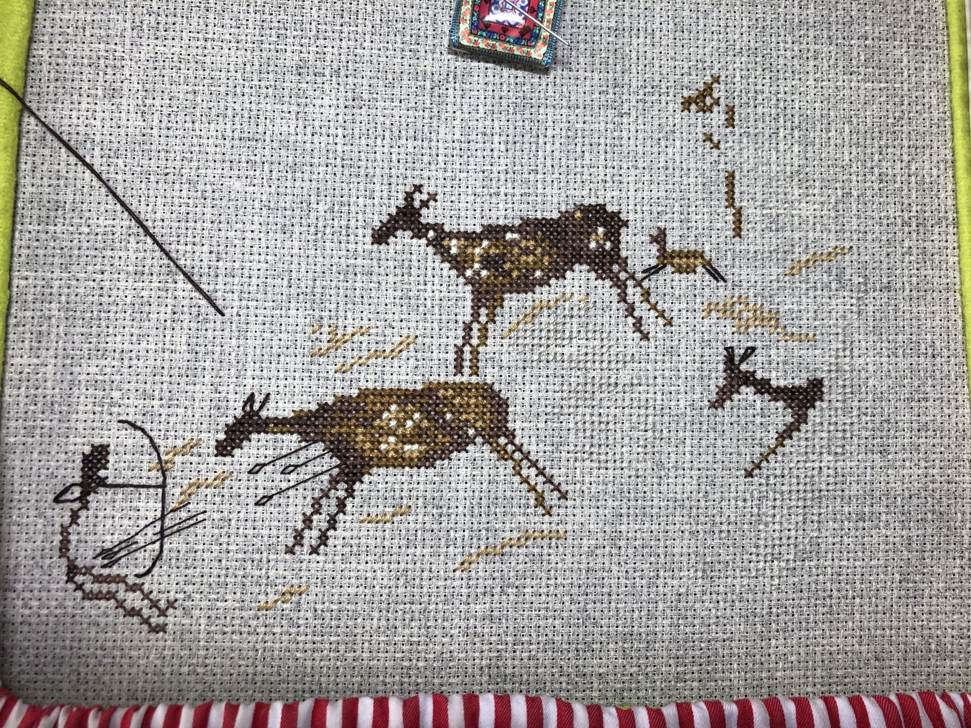 17 ноября 2021 Пришла показать супер быстрый новый процесс с финишем и попеть оды студии Нитка я ж вообще то в рамках праздника вышивальщицы заменила древнюю гайку на Гобленсет Золотой закат и честно начала его вышивать Вот- будем считать это начало продолжением процесса ) но - это дело небыстрое , тем более сюжет мне то давно нравится , но вышивать его будет - ну просто вырви глаз, ну да ладно - посему - я ж купила 4 набора от студии Нитка - но мужественно довышивала Ирисы от Хью - и теперь то честно заслужила отдыхалочку выбрала самый быстрый сюжет - Охота на оленей Вот такой нашла исходник - наскальная живопись в ущелье Валлторта Испания примерно 8 тысяч лет до нашей эры вот в таком ракурсе больше понятней )) а это вариант от Нитки вышила за полтора дня , очень сильно кайфанула , до этого вышивки были прям как работа - долгие и серьёзные )) , а это настолько приятно, быстро и легко вышивается , иголка , нитки , все , как по маслу , единственное - мне кажется , серый полукрест прям слился с канвой , а больше придраться не к чему , все очень понравилось Завтра думаю что ещё из оставшихся 3-х наборов начать )) склоняюсь к Тете Лошади . Вечером захотелось печёного , сделала минирогалики с апельсиновым и абрикосовыми джемами , чай с красной смородиной - напилась прям от души , угощайтесь , ещё осталось )) Ну и сладких снов , время то ночное . marinika, irisheckin, Хозяйка смешных зверей и 25 других сказали спасибо Поделиться сообщением Ссылка на сообщение