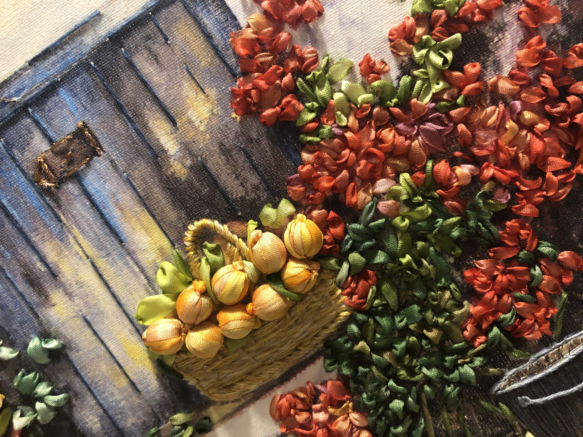 20 мая 2023 17.05.2023 в 00:56, svetles сказал(а): В соответствии с генпланом и вопреки всему ) Очень не хотелось , но - если не сейчас - то когда же ? Последняя красная гайка - зеленись ! Это были непростые 4 дня , вышивала почти от заката до рассвета , так хотелось закончить и забыть . Очередное понимание , впрочем , было понятно еще со времен Благосклонности , что ленты и объемная вышивка не мой профиль . Но набор был куплен в порыве восхищения , гайка заведена зачем то 31 декабря аж 2019 года , так что пришлось ). Я пыталась честно прочитать инструкцию , писала в Африку Ди , чтоб прислала электронный вариант , потому что инструкция написана от руки и понять сложно , она мне даже ответила , что посмотрит , но ниче не прислала , но уже и не нужно . Инструкцию я прочла в результате , но поняла , что делать по ней не буду . Делала все по своему по своим ощущениям и исходя из имеющихся материалов . В наборе только принт и ленты . Ленты совершенно не тех цветов , как на картинках . Ну подбирала из того , что дали . Кроме этого , давно уже были куплены деревянные бусины , прислан Машей из Новосиба кусочек кожи , вывалила дома все остатки мулине , шерсти , даже акрил применила так кусочек для эксперимента , Маша дала мне проволоку для цветов - использовала для придания объема в корзине , фольгу - у Ди типа от шоколадки , у меня для запекания )), ну фольги там малюсенький кусочек в ведре- имитация воды, еще понадобились плоскогубцы, иногда приходилось с их помощью протягивать иглу , и старая зубная щетка , чтоб распушить шерсть . В общем , проявляла изобретательность на ходу . Скажу сразу , у меня совсем не так , как на картинке . У нее все более художественно . Я же могу шить как то только прямо ) , или все подряд одним цветом в одной технике , не , я конечно старалась и то , что получилось , мне очень нравится . Мастером объемной вышивки я не собиралась становиться и все огрехи сама себе прощаю ). Из основных впечатлений и матчасти кажется все . Пальцы болят очень от протягивания иглы с лентами , это конечно совершенно не то , что крестик . Сейчас много фото . А после всем хорошего отдыха , беру небольшую паузу , а то дом и огород брошенки ). Светуля, очень красиво получилось! С завершением! svetles сказал(а) спасибо Поделиться сообщением Ссылка на сообщение