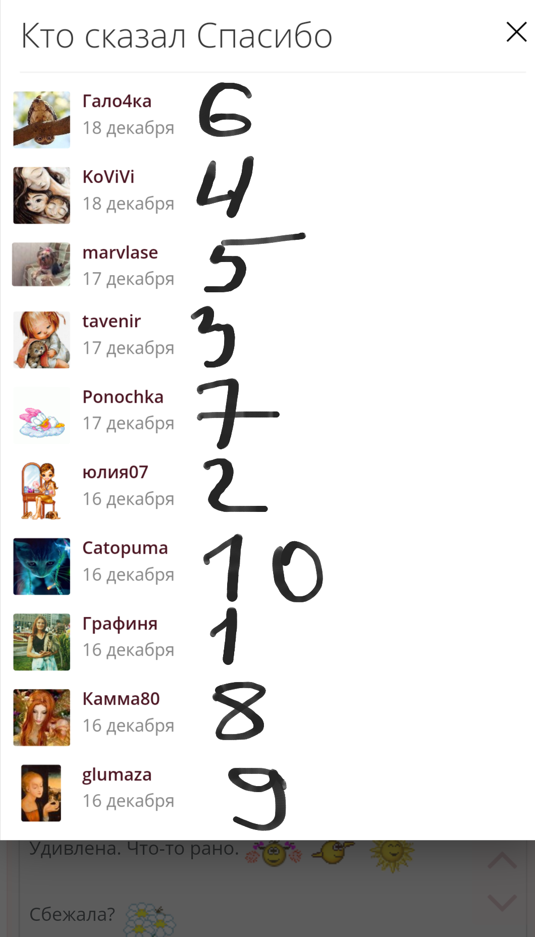 25 декабря 2017 Я тут чего сказать хотела. Девочки, если вдруг кто- то случайно, отправил мне подарок, напишите мне об этом пожалуйста У нас опять бардак- извещения не носят. И сразу и про др) вдруг отправите-тоже маякните) Спасибо) -Solovey-, Anicha, Agusia и 8 других сказали спасибо Поделиться сообщением Ссылка на сообщение