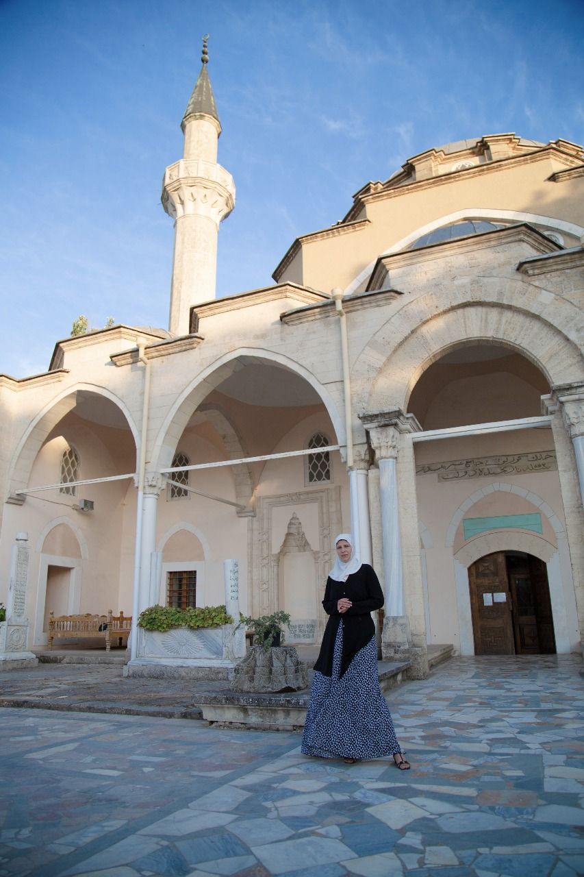 22 июня 2018 ....Ты же старая, Евпатория, Как же юною ты осталась?....( Ян Френкель) От поездки в Евпаторию меня отговаривали все местные. Что там делать? В горы полезайте. Гор мне хватило с лихвой.....А это, пожалуй лучшее, что я в Крыму увидела... наше путешествие еще не окончено, но.... чувствую я изменяю себе и влюбляюсь в даму). Но чувствуб это не с проста. Ведь есть во мне капелька или две) греческой крови. Моя прапрабабушка по папиной линии была гречанкой. Евпатория переводится с греческого как 'благородная.' Это именно так и есть. Красивый город, который окутывает старыми улочками, ты утопаешь в его зелени и в изяществе и шарме города. Город с огромной энергетикой. И не удивительно.. ему(ей) 2500 лет. Мы приехали в 15 часа. Жара стояла 35. В такую погоду мой мозг отказывается служить.... поэтому мы пошли по набережной. Красивое место... мне, пожалуй даже слов не хватит, чтобы ее описать. Это видеть надо. Вот правда. Конечно , немного все портит бесконечная торговля и палатки... но как - то я их особо и не замечала... Наш путь лежал в мечеть . Я давно хотела посетить именно мечеть с познавательной точки зрения. Оооо. Я не прогадала. Мои знания настолько пополнились., что теперь мне кажется, что все что я знала о масульманстве надо забыть и открыть себя новым знаниям. Экскурсии в мечети проводятся с целью хоть немного познакомить христиан с масульманскими основами веры. Я и муж оказались просто детьми по знаниям. И я хочу сказать огромное спасибо людям, орнанизовавшим светское просвещение от Аллаха. Думаю, что страниц мне тут не хватит рассказать все, поэтому просто несколько слов. Бог в мусульмансве не имеет образа. Его нельзя изобразить. Это сущность. Он все создал, но не по своему образу и подобию.люди верят так скажем в Силу. Но углубояться я не буду..... Просто удивительно. Но на одной улице уживаются и церковь и мечеть и синагога. Такой квартал религиозной терпимости называется Малый Иерусалим. Место потрясающее. А вообще в Евпатории уживаются армяне , караимы,индусы. Естественно и их религиозные сооружения. Невероятно. Здание мечети Джума-Джами. Очень красивое. Раньше купола были покрыты золотом, а теперь просто железом. Мечеть была зАрмян, Караимов, Иудеев, Индусов. заложена в 1552 году. И долгое время была самым высоким зданием в городе. Автором проекта и руководителем работ выступал Ходжа Синан. Подданный Турции, грек по происхождению, этот выдающийся архитектор знаменит многочисленными постройками в тогдашней турецкой столице Стамбуле. В Гезлев – так именовалась тогда Евпатория – он привез все лучшее, чему смог научиться во время труда на султана в древнем Константинополе. В результате мастер выстроил самую красивую мечеть Крыма, а в ее облике явственно просматривается сходство с византийской Святой Софией. Таким образом, получилось, что Джума-Джами изначально обязана появлением мирному сосуществованию мировых религий, ведь Софиевский собор в Константинополе – шедевр христианской архитектуры эпохи императора Юстиниана.(из инета) А вообще мечети могут быть разные. Не обязательно с круглой крышей. (Но в Европе многопульных мечетей больше нет.)Как захочется архитектору. Стригих правил нет. Мечеть могут посещать женщины, когда захотят, но обычно они совершают намаз дома.. Раньше на минарет(башни) по пять раз в день взбирался муэдзин. И призывал к молитве. А э