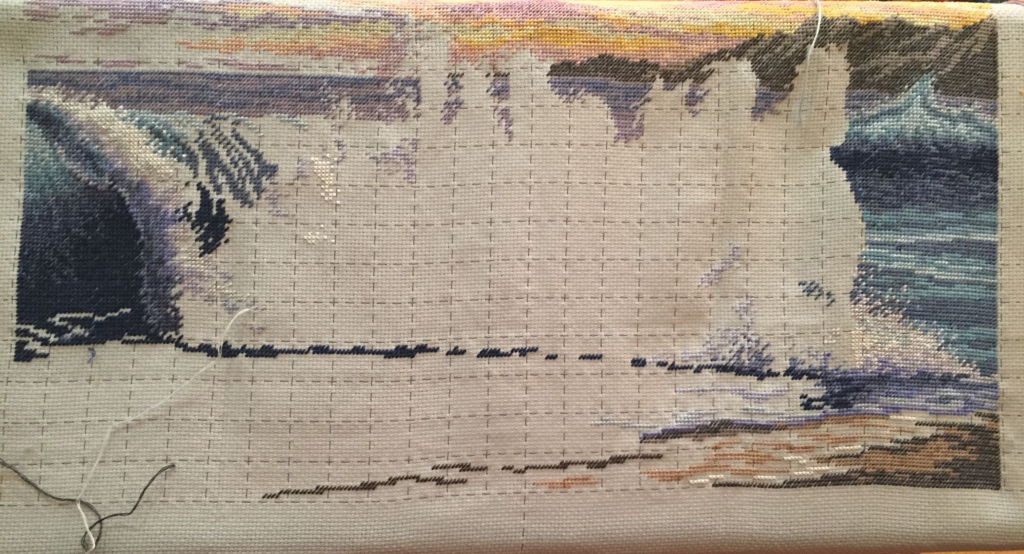 29 февраля 2016 Наташ, прилично так вышито! Какой ты кусок хотела? горы, море, контуры лошадей - столько всего появилось! Волна очень нравится... Поделиться сообщением Ссылка на сообщение