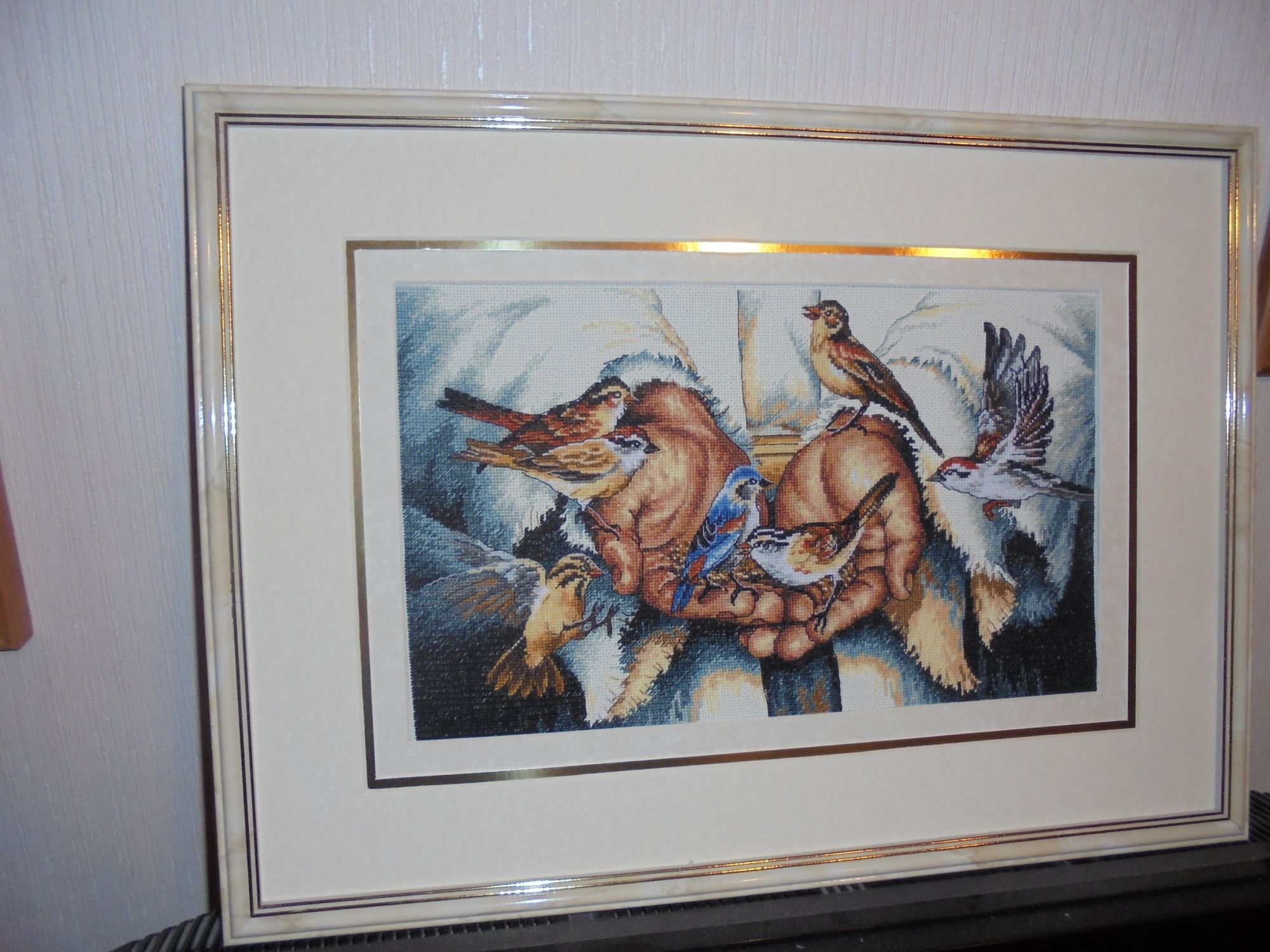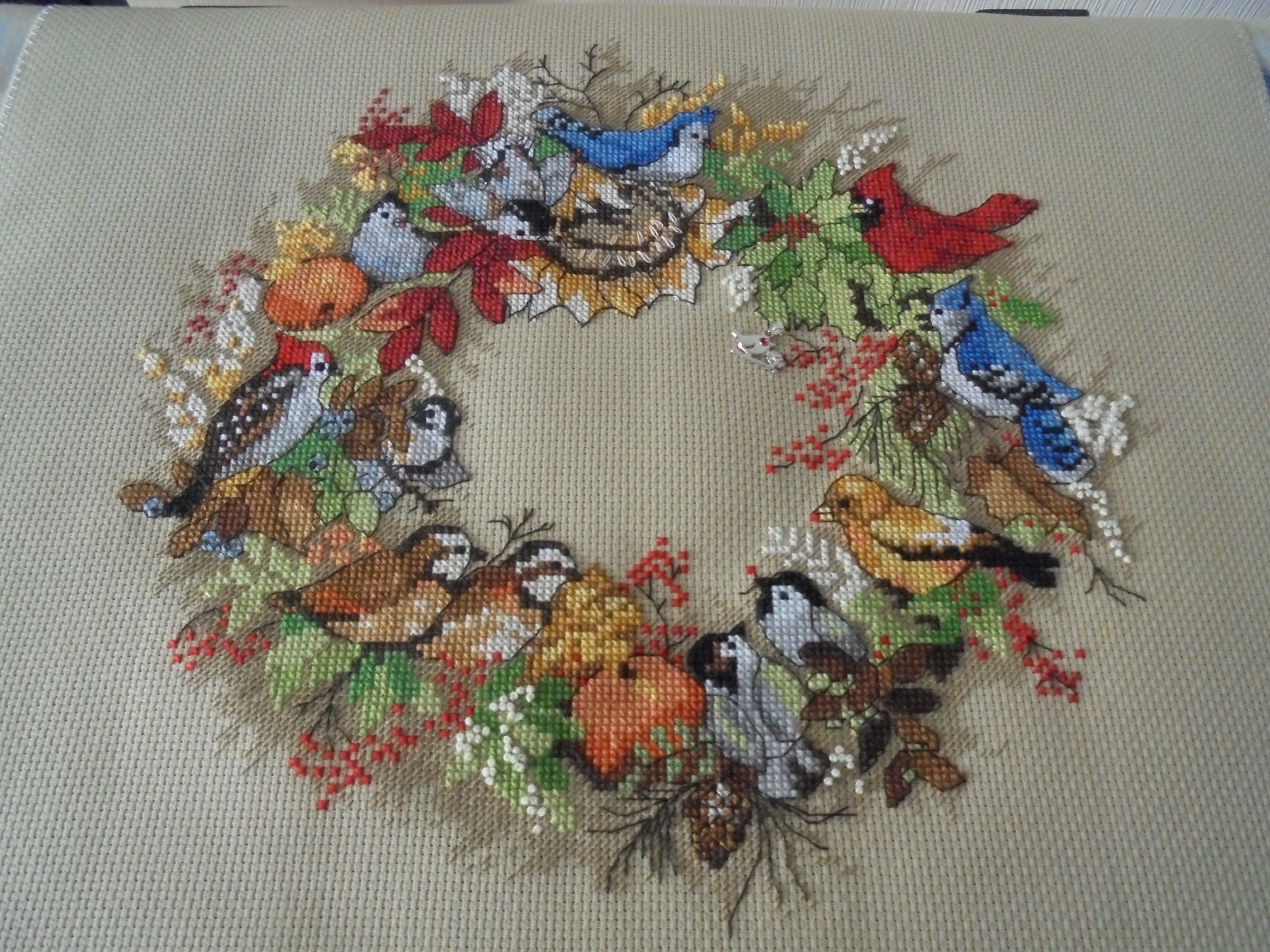 7 мая 2019 Покажу свою красоту))) 1. Прошу зазеленить гаечку - закончила рождественских птичек. Получилась красота!!! На фото не очень получается передать реальный цвет канвы - он хакки. ......Думаю как оформлять. Есть три варианта - а) багет без паспарту или с круглым паспарту, б) типа пинкипа - есть деревянные пяльцы 30 см, ими не пользуюсь, можно использовать вместо рамки, сделать подложку, только не придумаю что пустить по окружности ..и в) сделать панно с тканью на держателях. 2. Немного подросло Половодье (прошу добавить в процесс). оленек, ЛАДОМИРА, weron и 4 других сказали спасибо Поделиться сообщением Ссылка на сообщение