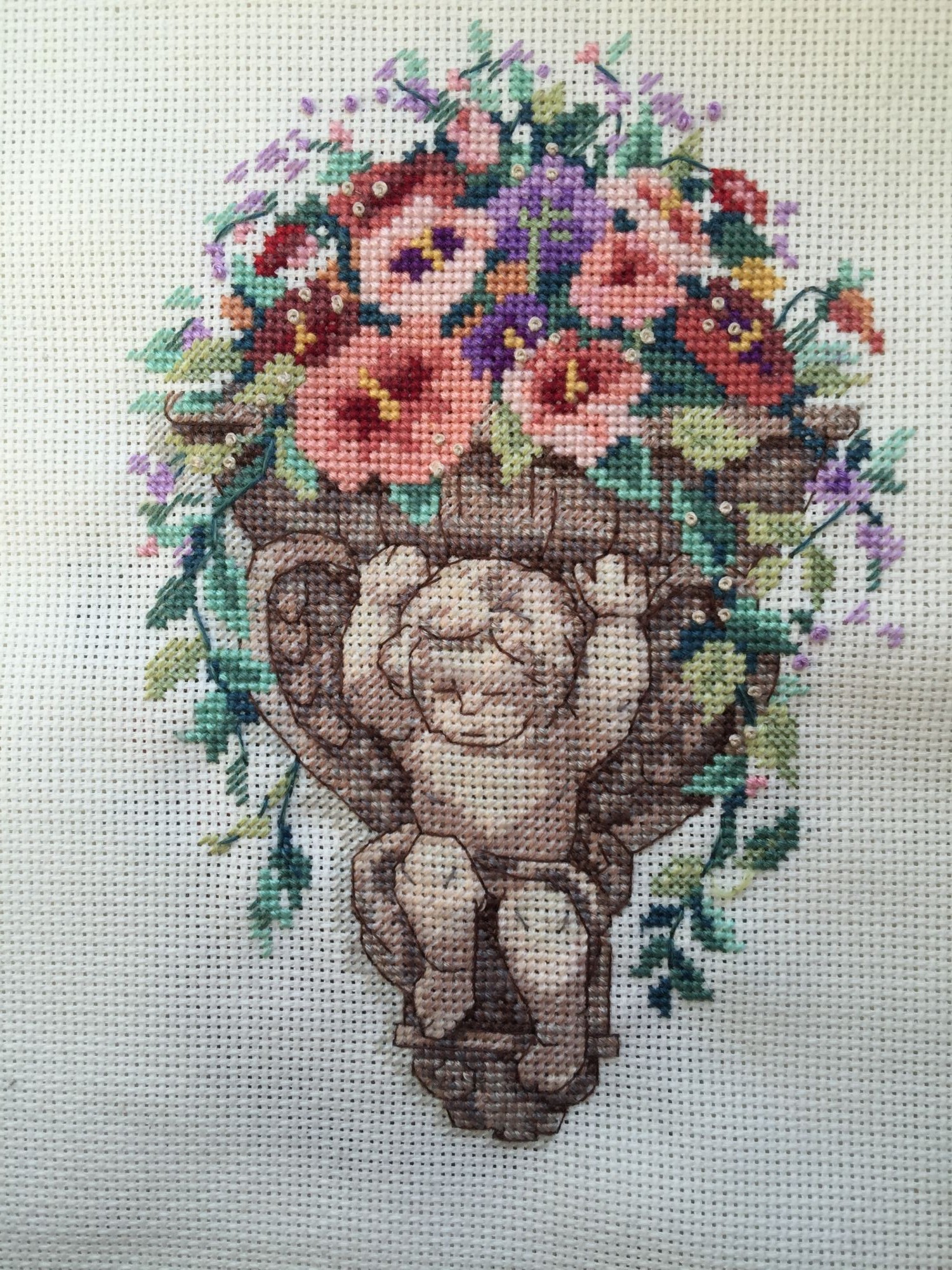 16 мая 2016 Закончила вчера свою цветочную миниатюру. Ленточные розы вышивать не буду, мне кажется, они всё несколько огрубят. Думаю, производитель изначально допускал вариант без лент, так как под ними на схеме вполне себе полноценные цветочки, с множеством цветов и переходов. Сначала они мне не нравились, но потом оказалось, что в совокупности со всем остальным они выглядят вполне гармонично. В целом и процессом, и результатом довольна. Цветочки вышилось легко и быстро. Но были некоторые казусы. Например, четыре ярко-фиолетовых крестика в розовой розочке, которые распорола и вышила темно-красными. Ещё в нескольких местах на ракушке добавила от себя стежки бэка, они прямо напрашивались. Надеюсь, что скоро начну и вторую миниатюру, только немножко отдохну от мелкой канвы и тонких иголок. Taisiya, makalicha1970, PrimaN и 27 других сказали спасибо Поделиться сообщением Ссылка на сообщение