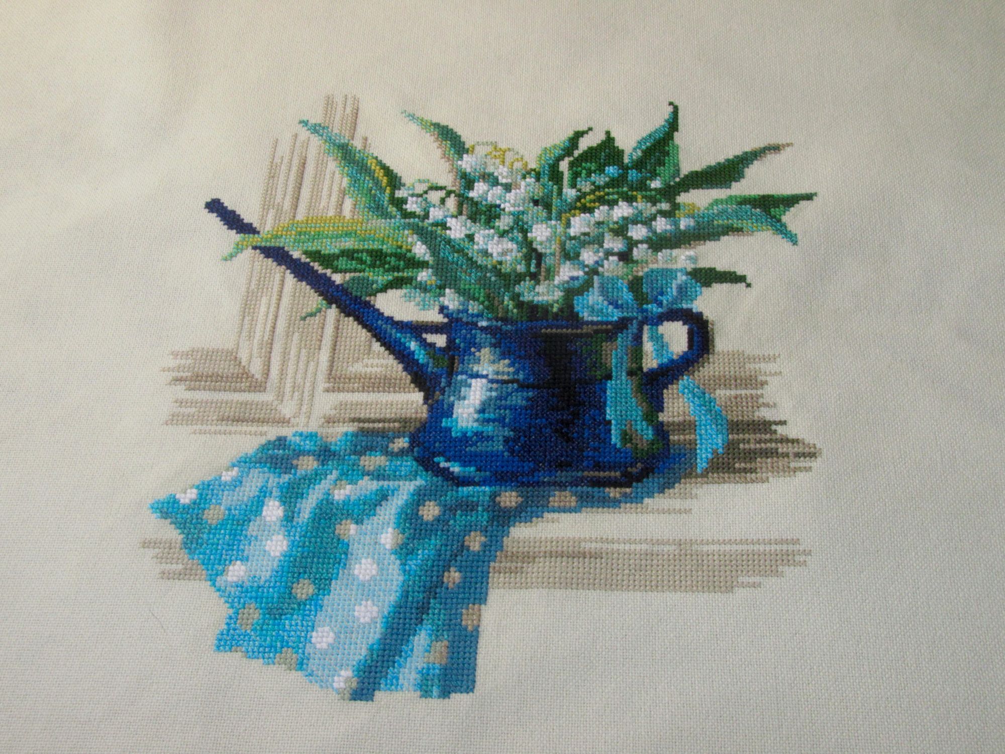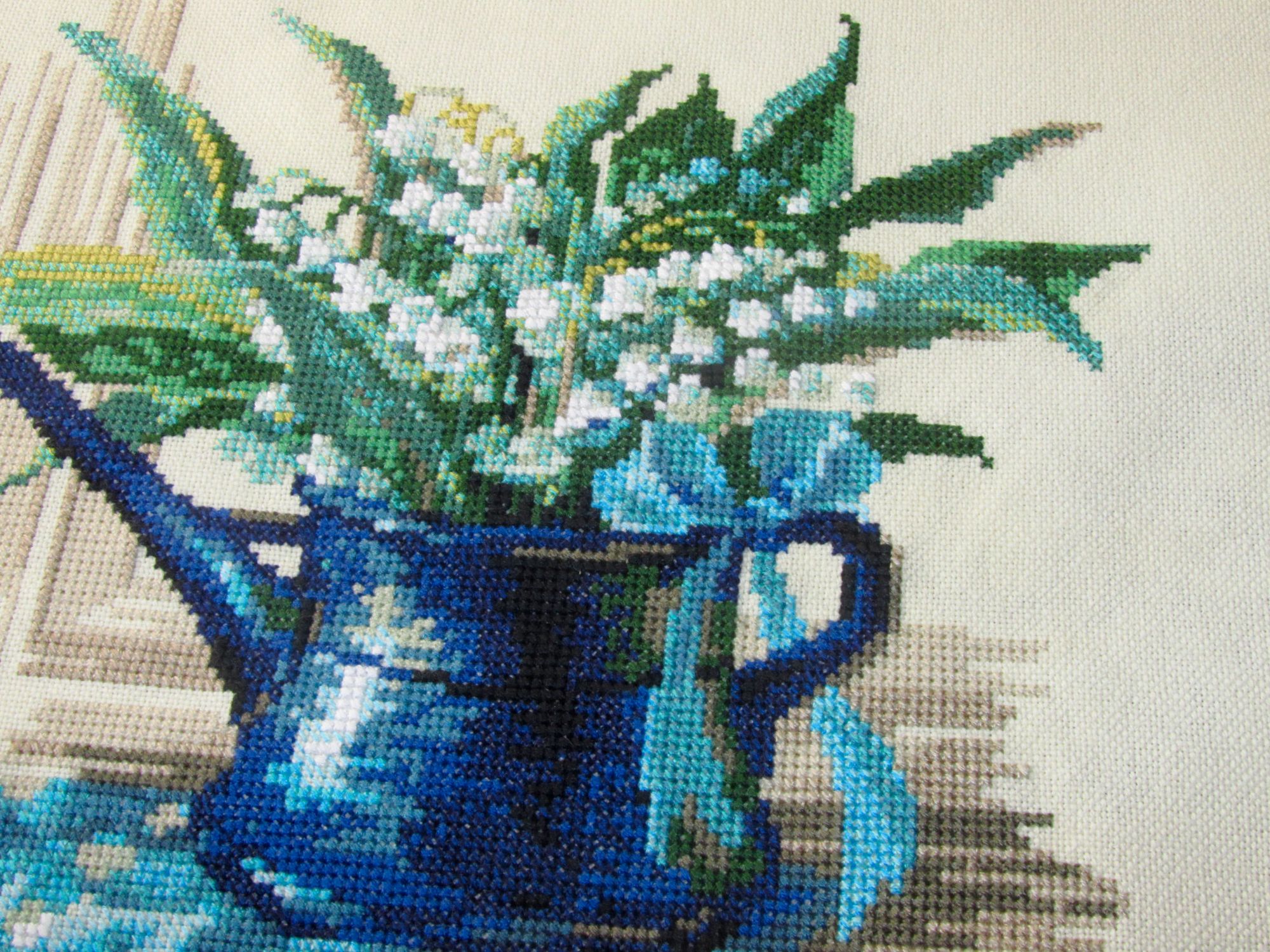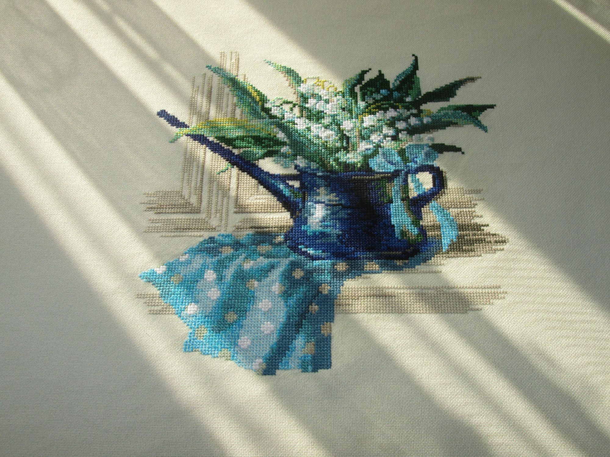 31 августа 2017 Довольно внезапно для себя завершила леечку. Просто стыдно было растянуть до осени то, что хотела закончить еще весной. Скажу честно, до последнего сомневалась в выборе цвета основы, тем более у нас в галерее есть отшив на бежевом льне и там хозяйка осталась недовольна результатом. Но в итоге мне кажется получилось неплохо. По-другому, чем на белом, но неплохо. Цвета такие милые, полинявшие-застиранные, и хорошо сочетаются с состаренным цветом основы. Зато белый цвет на ландышах стал более ярким, а с учетом крестиков в 3 сложения добавился объем. Короче говоря, встречайте результат. sakineva, Aleksacha , Люба К и 21 других сказали спасибо Поделиться сообщением Ссылка на сообщение