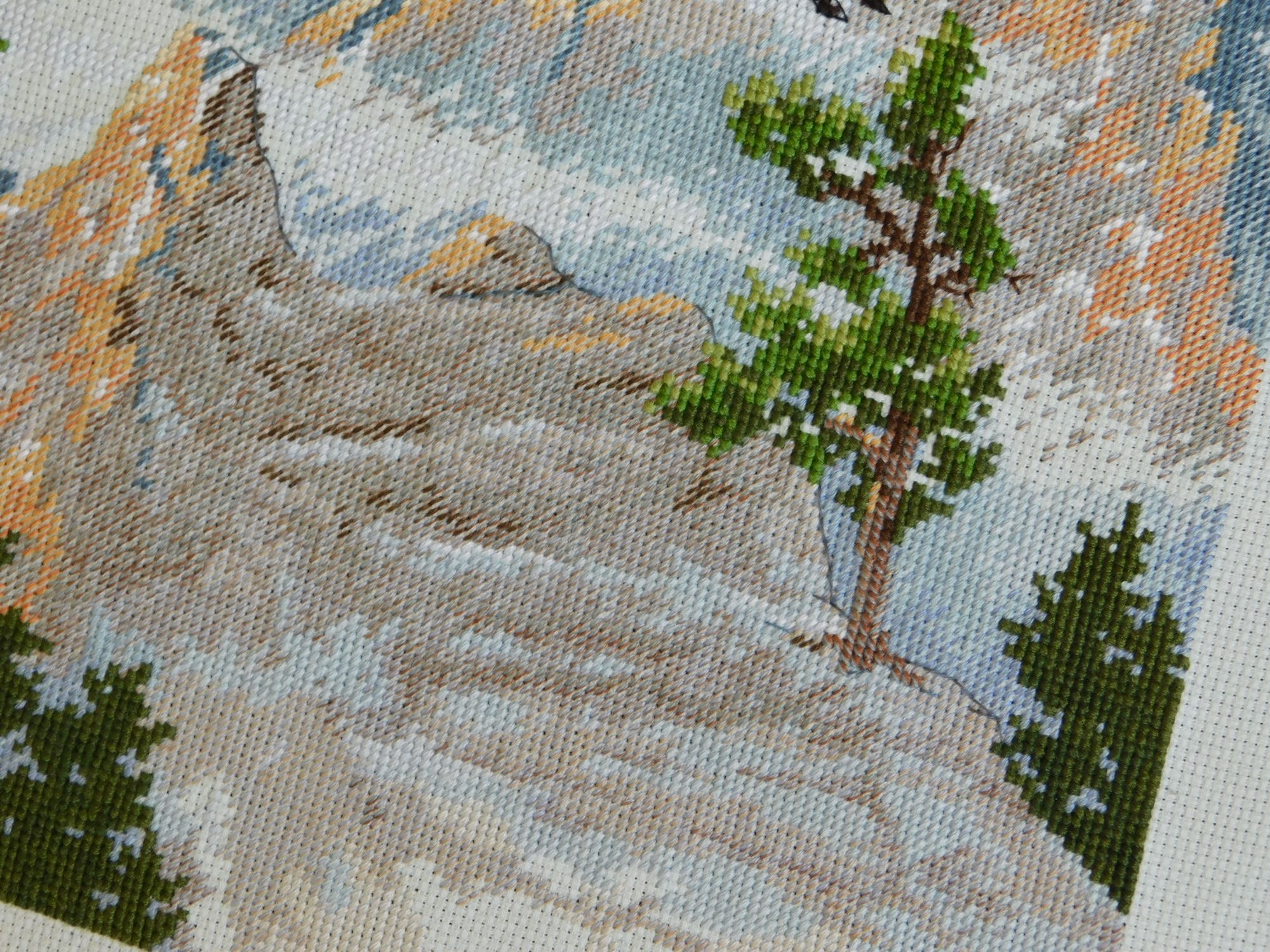 30 июля 2018 Вышила полностью нижний левый угол. Немного утомил полукрест, всё же я больше предпочитаю крестик. Правда без полукреста здесь никуда, именно он даёт тот потрясающий эффект натуральности скал. BlueeYeS, soln33, Butterfly и 16 других сказали спасибо Поделиться сообщением Ссылка на сообщение