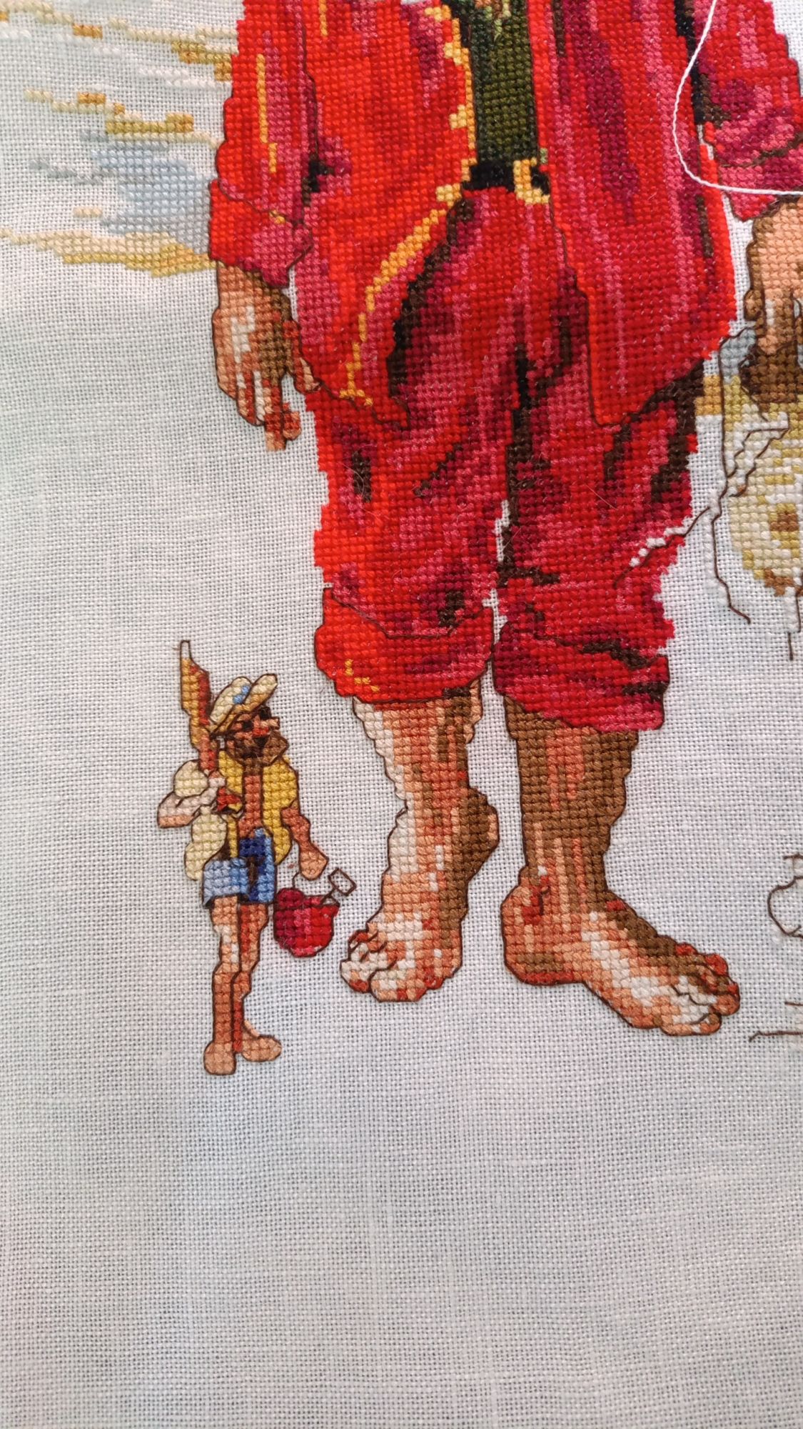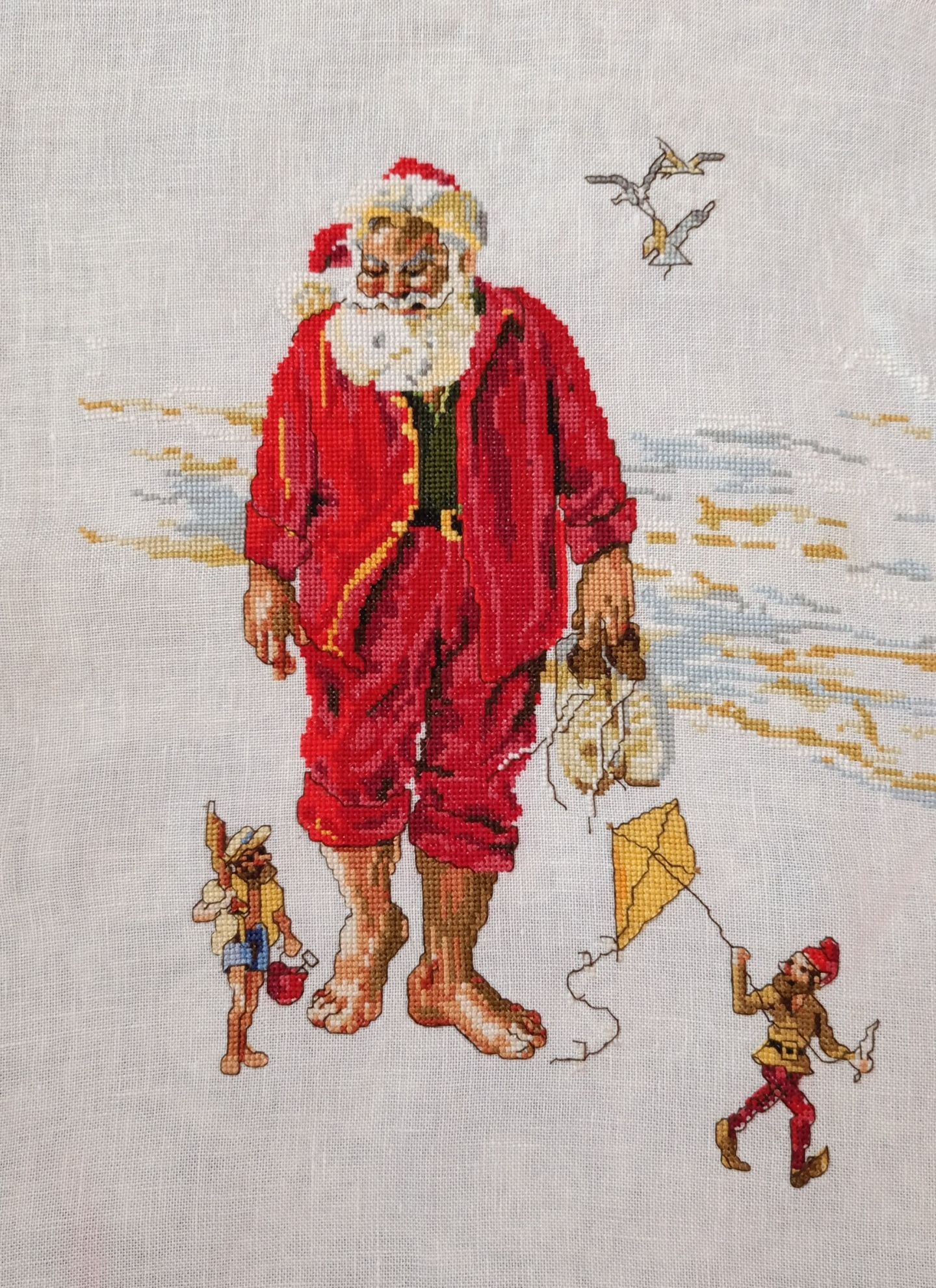 1 сентября Закончила Санту на пляже от Жанлин. Не скажу, чтобы совсем довольна. Очень нравится сама картинка добротой и атмосферностью, но подбор цветов, переходы, ну так... Набор с ебея был странный, обложка- скан со старого набора 1997 года, нитки дмс с современной палитрой. Скан ключа не перенаборный, не похож, с родного набора. Несколько раз перепроверяла свой разбор цветов, всё правильно по ключу. Разложены нитки были на три кучки под своими ленточками, всё как в ключе и указано. Может тогда так и делали грубовато. Но пока на стену применения этой вышивке не нашла, будет резать глаз. Процесс завершен, можно позеленить галочку. Но, что вышила, не жалею, Санты моя слабость, вышивать никем еще никогда не отшитое люблю, всегда загадка..) . kreolka, letka, Fascinata и 14 других сказали спасибо Поделиться сообщением Ссылка на сообщение