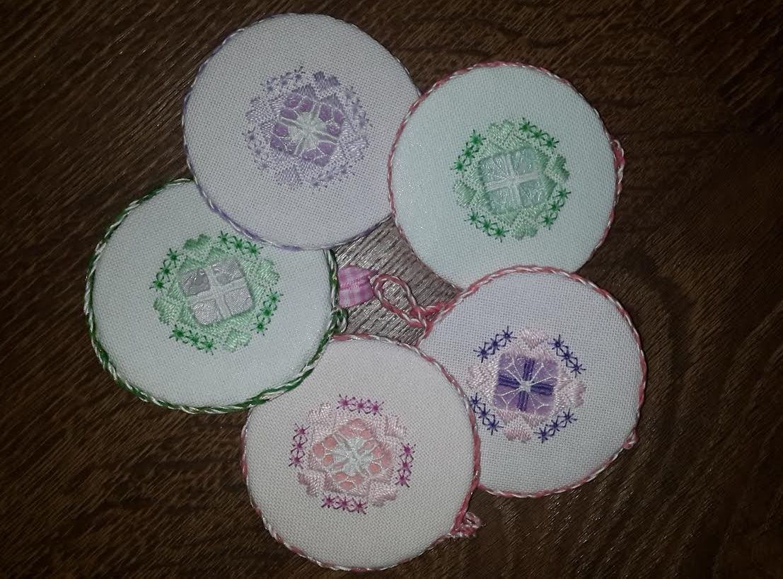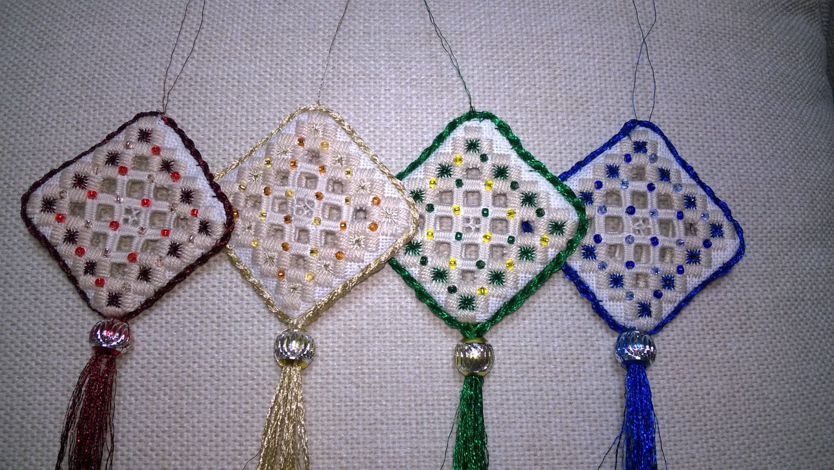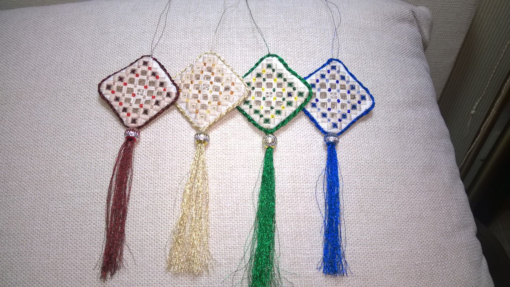 14 декабря 2015 Таня и девочки, добрый день! Каюсь, дальше первой игрушки у меня дело не пошло, но не потому, что стало неинтересно, а потому, что решила вышить 4 одинаковых в разном цвете, думала, что пойдут на подарки. Заготовки сделала быстро, вообще очень понравилось и вышивать, и вырезать окошки, и бисер пришивать, а вот со сборкой оказалось гораздо сложнее. Я только к 4-й игрушке поняла, как правильно их сшивать, чтобы получались они ровные и аккуратные. Поэтому решила, что кривенькие и пусть остаются со мной! apanjul, Verochka2307, Anicha и 11 других сказали спасибо Поделиться сообщением Ссылка на сообщение