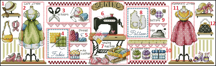 Платья отдельно, остальное вокруг них отдельно. Швейную машинку со столом и остальным напополам. Эти кусочки чуть пообъемней получаются. Остальные вроде как поменьше. Так что разбирайте, кому какое количество по душе. Все, что в итоге останется невышитым, я потом сама доделаю.