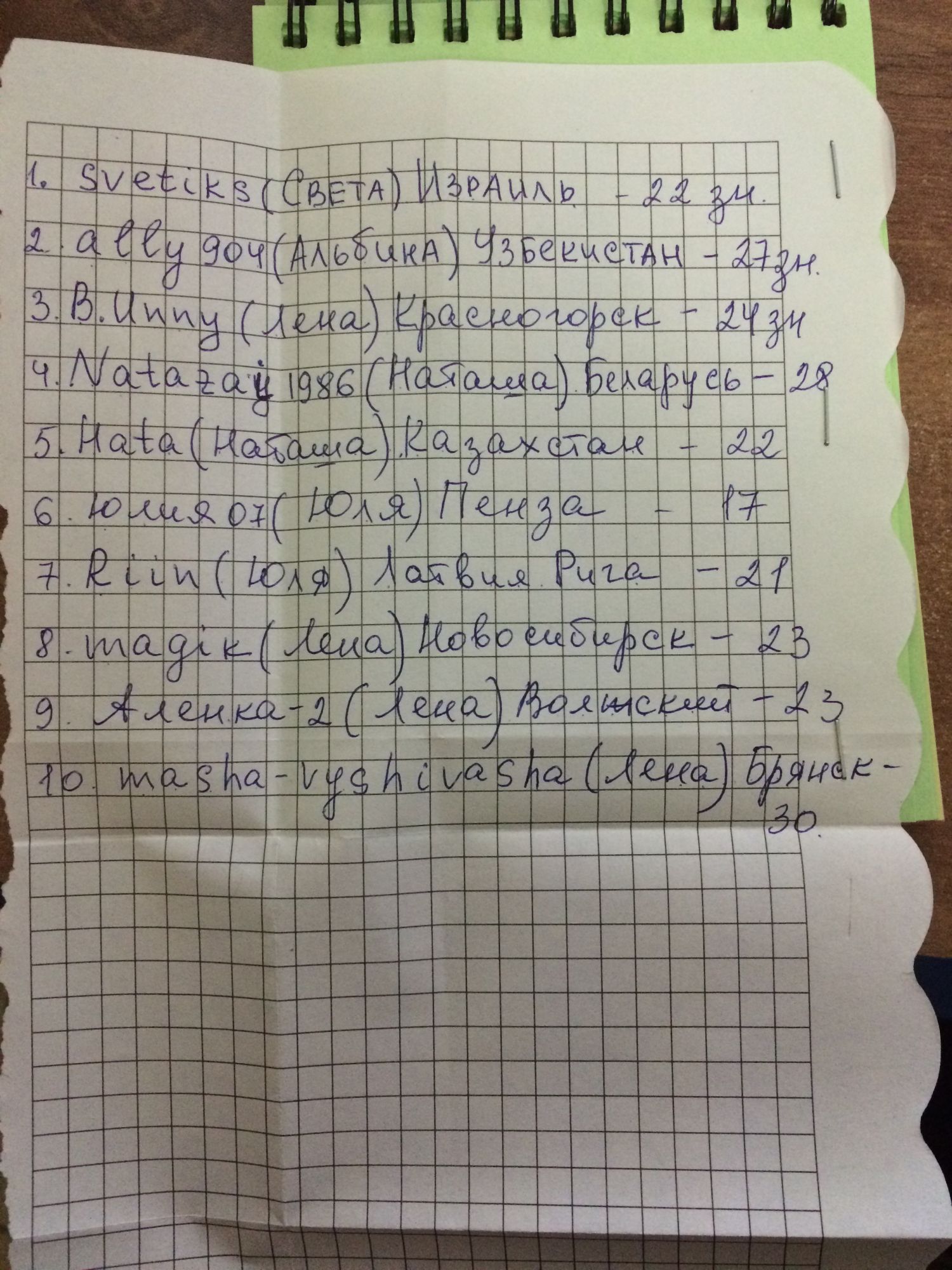 1 февраля 2016 2 минуты назад, lamina-65 сказал: magik, Лен, а у тебя блокнотика с записями не было? кстати, о блокнотиках, Свет, что у тебя за кодировка приложена в твоем блокнотике? там где список всех девочек на белой бумаге с цифрами рядом? второй вечер голову ломаю что это значит Поделиться сообщением Ссылка на сообщение