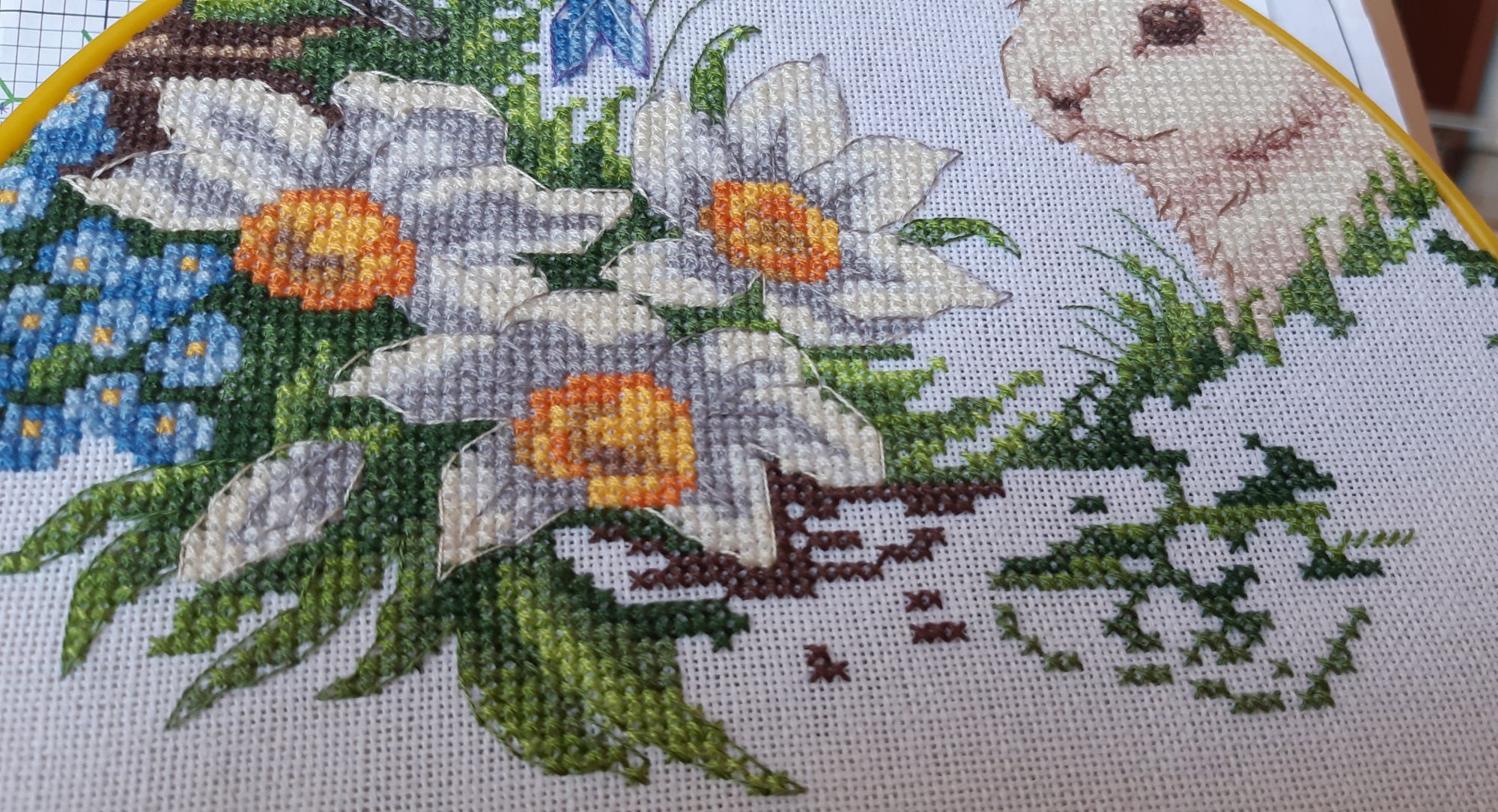 6 апреля 2020 Продолжаю" Весенний венок " У меня зацвели незабудки и нарциссы Нарциссы мне не нравятся серые и по форме цветки не красивые, ещё верхний правый куда ни шло, остальные два- Осталось немного: веточка мимозы, ландыши и крокусы, наверное уже буду показывать завершённую работу. Сейчас напало какое-то невышивальное настроение, быстро может и не получится завершить работу. Не знаю, апатия одолевает , ничего не хочу Но новый процесс уже запланировала пока хочется чего-то летнего, поэтому продолжения старых работ не будет, а будет летний пейзажик) воть Желаю вам оптимизма, весеннего настроения и конечно, не болеть! Ярославовна, Кисуля, Catopuma и 24 других сказали спасибо Поделиться сообщением Ссылка на сообщение
