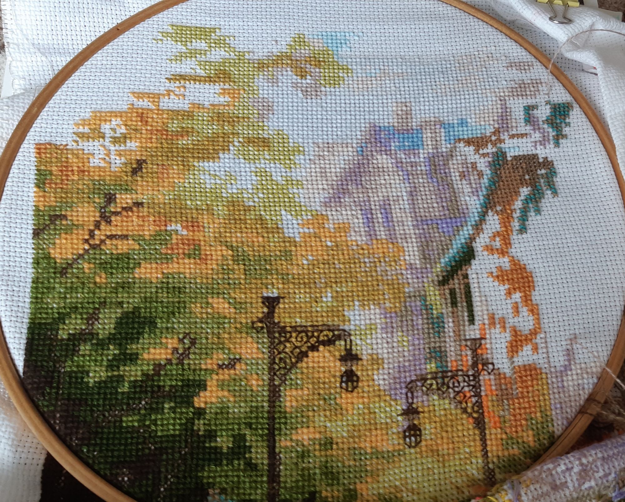 28 сентября 2021 Приветствую всех заглянувших Покажу чем занималась все это время, честно признаюсь, вышивала мало, ну прям совсем-совсем Итак, номер 1:"Цветочная улица " вышиваю по настроению, но вот что-то с настроением последнее время вообще не очень, чтобы очень Выдался на редкость холодный год: всю зимы долбили морозы, холоднющая весна, лето-дождливое, мошкары не виданное просто количество, осень наступила: обнять и плакать: три недели дожди дожди дожди и плюс 4 днём, ночью сегодня уже минус 2 было...А 26 числа выпал снег свинцовое небо с утра до вечера, у всех какой-то депрессняк. Ну и ребёнок болеет 2ую неделю а с ней и муж прицепом заразился. Короче как-то не радостно. Ничего не хочется, вообще ничего, да не , хочется:лежать на диване, пить винишко и ни о чём не думать я таки закончила брошку от Cristal Art. Было и стало Я не довольна ни процессом ни результатом, из-за того, что мне достался набор с другими бусинами в комплекте, листик на листик не похож, должен быть ярко темно- зелёный, а эти прозрачные бусины конкретно все портят. Я собирала ее по инструкции, а в итоге оказалось, что брошь достаточно большая и маленький замок ее плохо держит плюс указано было прикрепить ее не по середине , а вверху, короче брошку носить не возможно. Вот размер ее в сравнении с дочиной ладошкой Я решила, что может следующая брошка меня не разочарует и взялась за конфетку. Никаких положительных моментов: бусины со сколами, запасных нет мелкий бисер весь настолько разнокалиберный, что слов цензурных нет жёлтый так еще и по оттенку и перламутровости отличается. НУ и самое главное, я в очередной раз убедилась, если руки из жопы растут, не фиг браться... Я это бисер перешивала раза 3, но так и не получилось пришить его ровно, ну не ложится хоть тресниИ вишенкой на торте стало, то , что муж, рассыпал весь обметочный бисер. .. так что это не конечный продукт. Есть и радостный момент, я оформила Березу от Чаривной Мити.Пролежала голубушка 5 лет в шкафчике ( Результатом очень довольна, сейчас нет возможности хорошие фотографии сделать, покажу пока как есть поближе.2ой багет , стекло простое. И ещё приятности, я у Аси @Каори выиграла сертификат и вот мои обновки РТо "Синие как небо васильки"( фото не грузятся почему-то) и маки . Ах , какие там цвета , просто песня. Их я немножко началаидут тяжело, впервые вышиваю на тёмной канве, но нравится) Симуша попрасилась заниматься ещё и графикой и вот первая работа Девочки, на этом я закругляюсь, не болейте,отличной осени вам! оленек, Marusya1978, irisheckin и 22 других сказали спасибо Поделиться сообщением Ссылка на сообщение