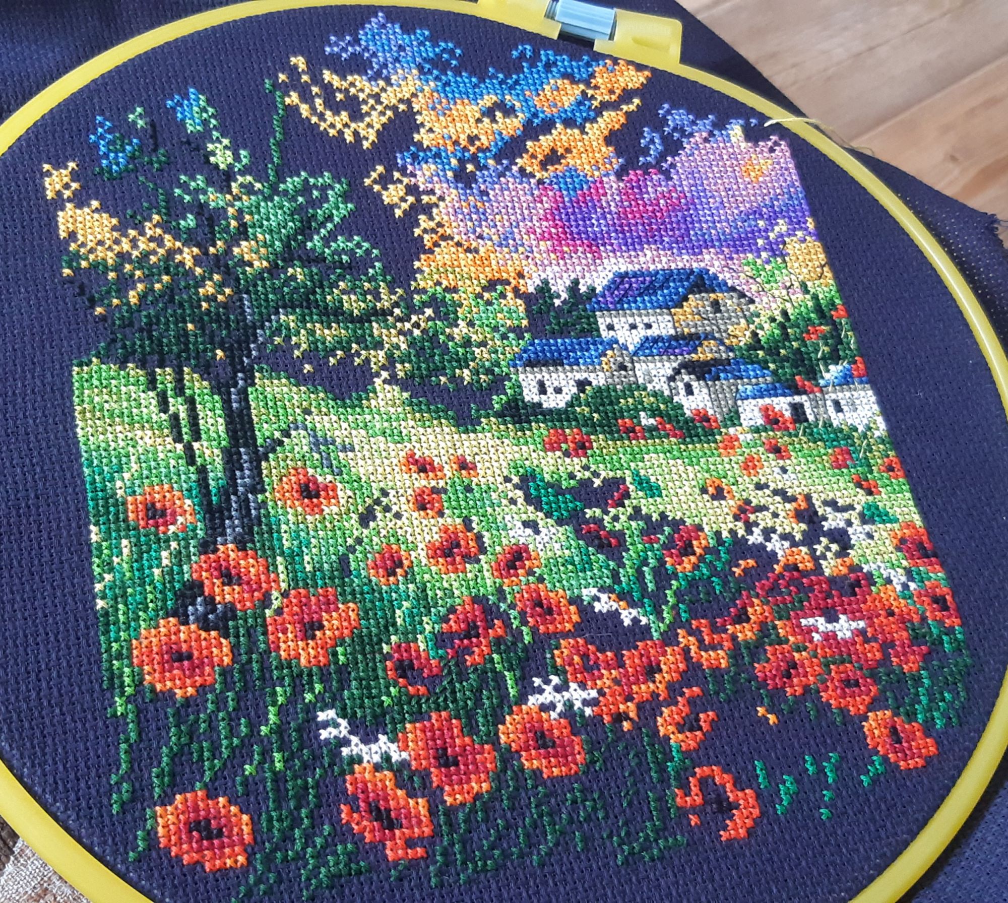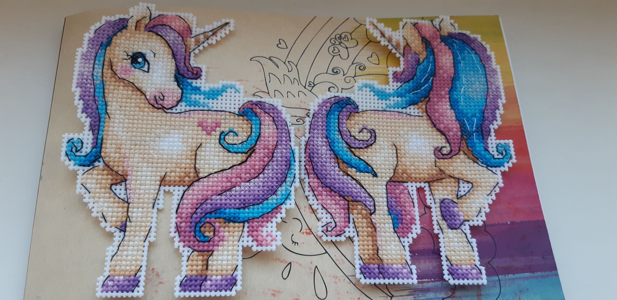 1 июня 2023 Жар птица " Единорог" две готовые половинки финиш милая хорошенькая коняшка,вышивается просто, бэк лёгкий, а вот вырезать мне было сложно, а как сшивать вообще нет никакой информации в инструкции, как хотите так и шейте Вобщем сшила как смогла) Продолжение процессов: Алиса " Зима.К вечеру" досталось совсем немножко этой работе, устала я от полукреста,очень уж его тут много,и цветовая гамма надоела ,хочется ярких цветов и они у меня есть Рто" Маки убегающие за горизонт" взрыв цвет ,необыкновенно яркая работа, но идёт медленно, буквально ползу улиткой, схема сложная, такая мешанина но ,если вышивать по саге, то наверное все просто будет, я по старинке,по бумажке ,вооружившись цветными карандашами, вышитое зачеркиваю,иначе и не разберусь, что и где. ЛАДОМИРА, Ксен40, Охотница и 17 других сказали спасибо Поделиться сообщением Ссылка на сообщение