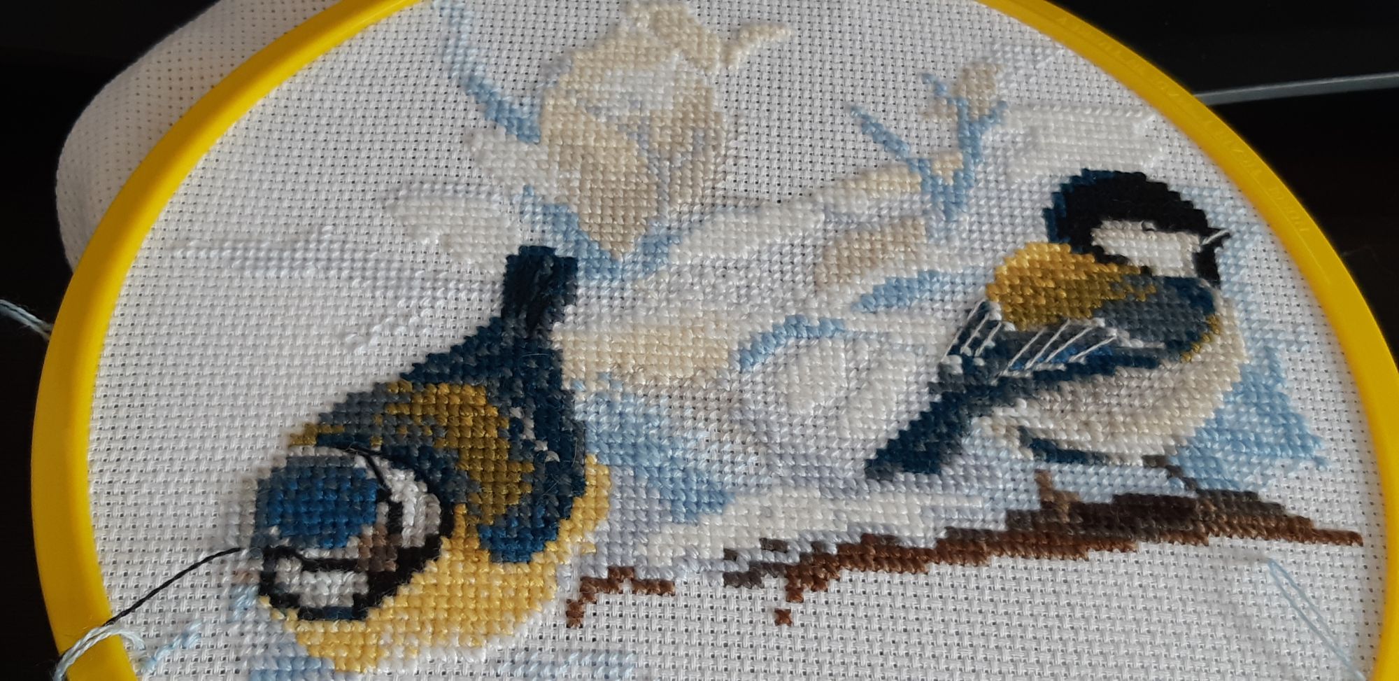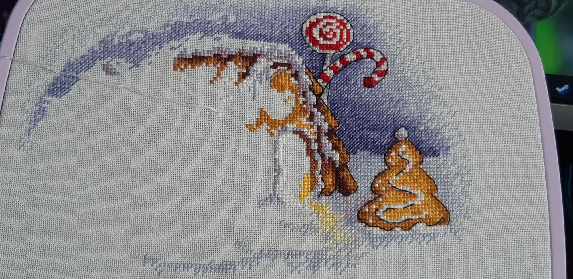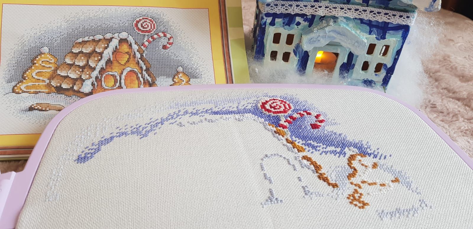 18 февраля 2024 Мои старты Когда-то Маша @Molly21 подарила мне подарочек к Новому году,чудесный наборчик "Пряничный домик " от МП Cтудии Такой милый сюжет, но вот схема это что-то с чем-то, ну не вижу я серый на сером,поэтому все время откладывала набор до лучших времён...Но решила ,что надо вышить,а то так никогда не соберусь. Выбрала мурано,цвет кажется называется " серебристая луна", такого нежного серо-голубого оттенка. На мой взгляд как нельзя лучше подходит к этому сюжету . Но в процессе работы поняла, что цвет ниток,которым вышивается фон сливается с цветом основы. Вот прям беда: сломала все глаза вот здесь я пока остановилась. Решила ,что надо дать глазам отдохнуть и взялась ,нет чтобы за какой-нибудь старый процесс, а опять начала новый Это Риолис ,шерсть, "Синички и рябина". Пошёл процесс сначала бодро, а потом у меня случился жёсткий приступ аллергии, думала глаза вытекут. В этом наборе оказалась очень жёсткая канва и как никогда достаточно толстые нитки, при вышивании шерстинки летели во все стороны просто.Обчихались все,кто рядом был,включая кота. Пришлось временно отложить процесс, и в будущем видимо придётся вышивать его понемногу. начало, Синички просто прелесть, именно такие у нас в Сибири, пузатенькие и яркие. Сам процесс совсем несложный, вышивать его одно удовольствие, если бы не аллергия... Гало4ка, юлия07, ЛАДОМИРА и 22 других сказали спасибо Поделиться сообщением Ссылка на сообщение