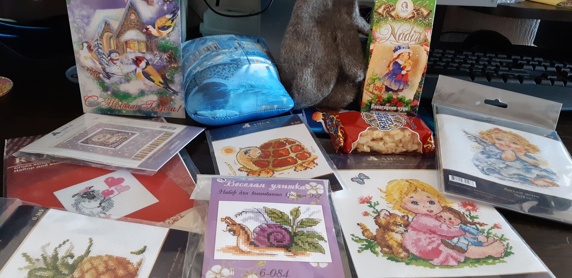 26 декабря 2018 Мой отчёт сегодня посвящён феечкам- снегурочкам нашего форума Так случилось, что повезло мне и конфетку прекрасную выиграть, а вторую- мне специально для меня приготовили, это был конечно СЮРПРИЗ И получить прекрасные подарки к Новому году от наших дорогих девочек А теперь покажу всё по порядку)) Итак Сашенька @Tomcat прислала мне специально для меня приготовленную конфетку, а по факту просто царский подарок это один из самых любимых и желанных наборов, великолепная гортензия , а какие тут невероятно красивые цвета вот такую прелестную игольницу Саша сделала , я жила всё это время без игольницы, а теперь я счастливая обладательница чудесного грибочка. Ножка у гриба раскручивается и там можно хранить иглы. Я сразу же пустила игольничку в дело, очень удобно А ещё Саша положила магнитик и мурано А это новогодний мешок подарков от Ириши @irisheckin Я ирочкин подарок назвала- подарок-антистресс: тут и подушечка и чаек и сладости и много- много маленьких отдыхалочек) я хочу попробовать их вышить на одежде для дочки ( в планах черепашка и улитка) и посмотрите какие классные подарочки Ириша положила для моей малышки она в полном восторге Самым сюрпризным сюрпризом оказался подарок от Машеньки @Molly21 Стою я на почте в очереди, отхожу от морозяки, дай думаю почту пока проверю, а там сообщение от Машули, что ждёт меня " открыточка " на почте. Ой, я вам даже описать не могу, сколько радости, волнения и удивления я испытала вот такую прелесть Маша приготовила для меня очень новогодний подарок поднимающий настроение Открыточку с ёлочкой я уже и вышила, осталось только собрать. Как представится возможность, сразу ей займусь. Скрытый текст Нас накрыли арктические морозы, сидим с дочей дома, она конечно, ничего делать не даёт, даже стоит только мне сесть за комп, она уже тут как тут- " ня" на ручки А этот пряничный домик хочу вышить на равномерке, наверно возьму голубую Машуля так замечательно всё в тему подобрала А теперь похвастаюсь роскошным платком, который мне повезло выиграть в конфетке у Оленьки @МамаЛё очень красивый, мои любимые огурцы и цвета Ещё Оля послала замечательную равномерочку цвета мяты, рыбку на удачу ( она уже уплыла в кошелёк) и вкусную шоколадку, которую я тут же слопала Олечкин платок меня спасает во время наших 35 градусных морозов, не даёт моему носу отвалиться а- ля сибирский хеджаб)) И вот такой наборчик, новогодний- новогодний, я получила от Ирочки @АриЯ тоже планирую тут заменить основу, пока не определилась какую выбрать) Дорогие мои девочки, Ирочка АриЯ, Машенька Molly 21, Сашенька Tomcat, Оленька МамаЛё, Ириша irishechkin, огромное вам спасибо за такие прекрасные подарки, ваше тепло и щедрость! Мне безумно приятно и ценно Ваше внимание!!! Девочки, пусть ваша доброта вернётся вам стократно. Крепко обнимаю)) я не прощаюсь надолго, скоро покажу, чем записалась этот месяц. Nata_Struchkowa, Lenara, Tomcat и 34 других сказали спасибо Поделиться сообщением Ссылка на сообщение