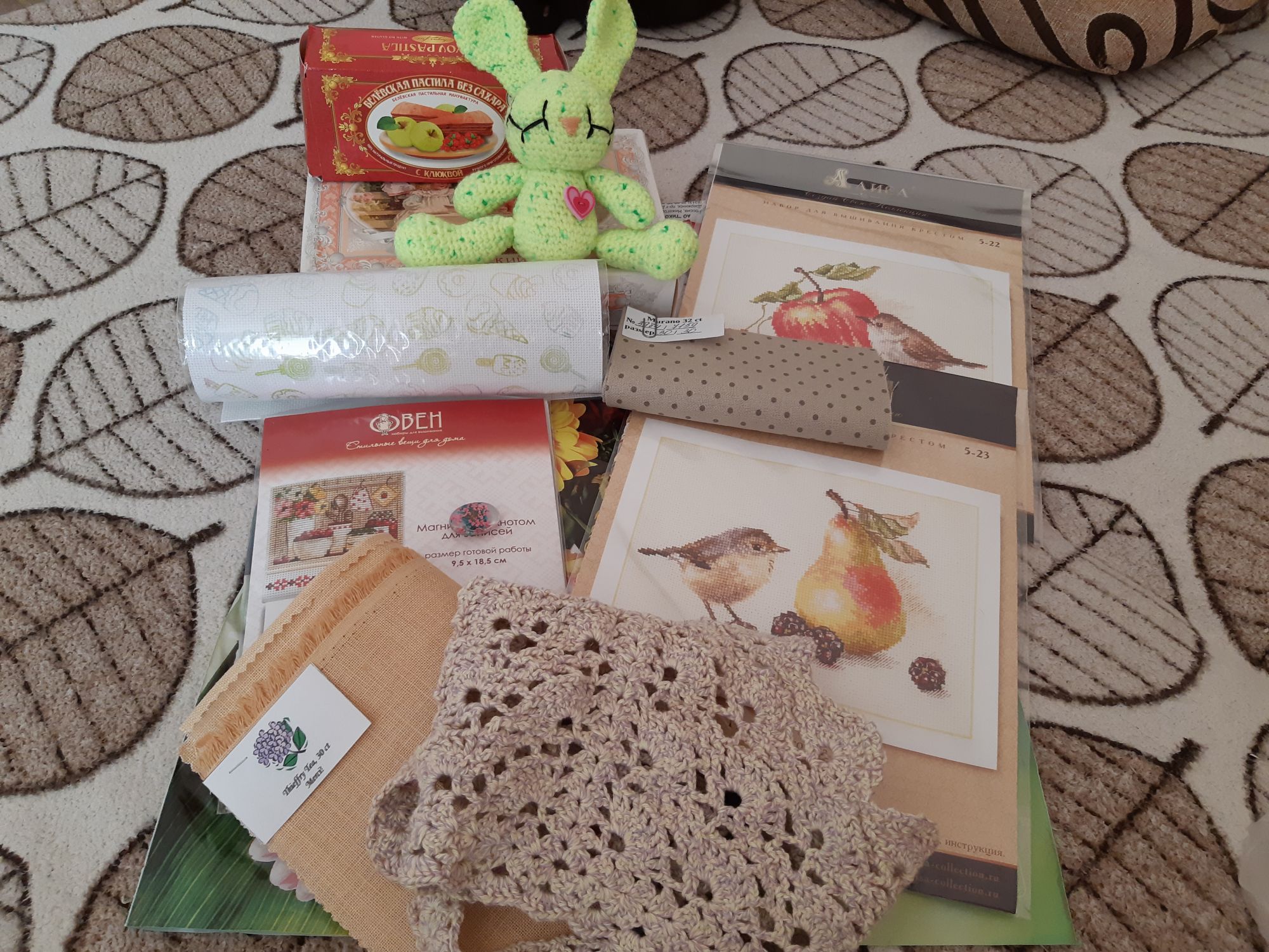 18 апреля 2019 Я практически не вышивала (( у нас скачет погода, а я как-то совсем тяжело стала переносить её капризы то голова болит, то всё оттаяло, аллергия началась... Сегодня у нас минус 7, дикий ветер и буран. Короче- апрель по- сибирски () Ну не буду о грустном. Хочу поделиться, какой я супер подарок получила от Анюты @Камма80 Анечка, солнышко, спасибо тебе огромное за потрясающий подарок Девочки, Аня связала моей дочке очаровательного летнего зайку и чудо какую красивую косыночку на фотографиях не очень видно её реальный цвет, она нежно сиреневого с зелёным цветом. Воть моя радость скачет от счатья с новым зайцем и в косынке)) А я получила от Ани своих любимых пташек, блокнотик от Овна ( уже не терпится поскорее всё начать) , мурано в горошек, лен, дизайнерскую канву ,магнитик с сакурой и очень вкусный зефир и пастилу ! Я обалдела от такого вышивального счастья Улыбочка от моего кота Всем весны, солнышка и улыбок! Хозяйка смешных зверей, sunny981, ЛАДОМИРА и 26 других сказали спасибо Поделиться сообщением Ссылка на сообщение