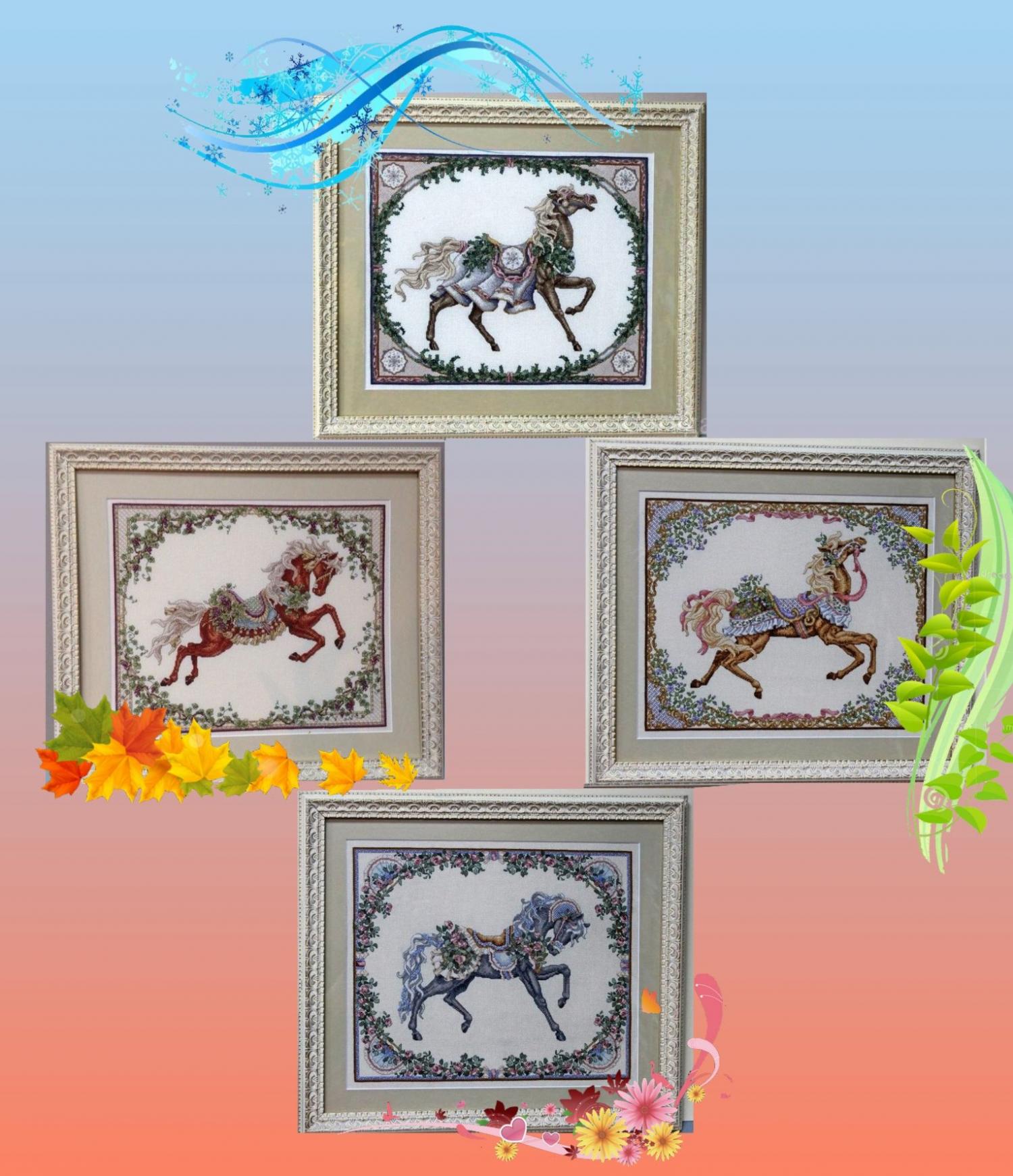 26 октября 2015 Решила все-таки. Вроде и вышитых, и оформленных много, а выставить нечего - то дублируют работы других девочек, то не знаю, к какой категории отнести. 1. "Тень твоей улыбки" Чудесная игла. Приятная работа, в которой используются ленты, бисер, крейник. 2. "Лиловое время" от фирмы Rajmahal. Цветы вышиваются шелковой гладью. В работе также используются золотая и серебренная канитель, бисер, пайетки. 3. Ну и спорная работа. Даже не знаю, честно говоря, в какую категорию Александра этих лошадок пристроит. Может что-то типа "Времена года", "Сезоны"? Не смогла выбрать одну,поэтому сделала коллаж из всех. Если так нельзя, то все-таки выберу одну. Карусельные сезонные лошадки от Терезы Венцлер. Три вышиты на мурано 32, зимняя на белфасте с люрексом. Во всех лошадках используется крейник, в некоторых бисер. Слева направо: осень, зима, весна, лето. Syt_T, olnikva, Tanya_RTK и 46 других сказали спасибо Поделиться сообщением Ссылка на сообщение