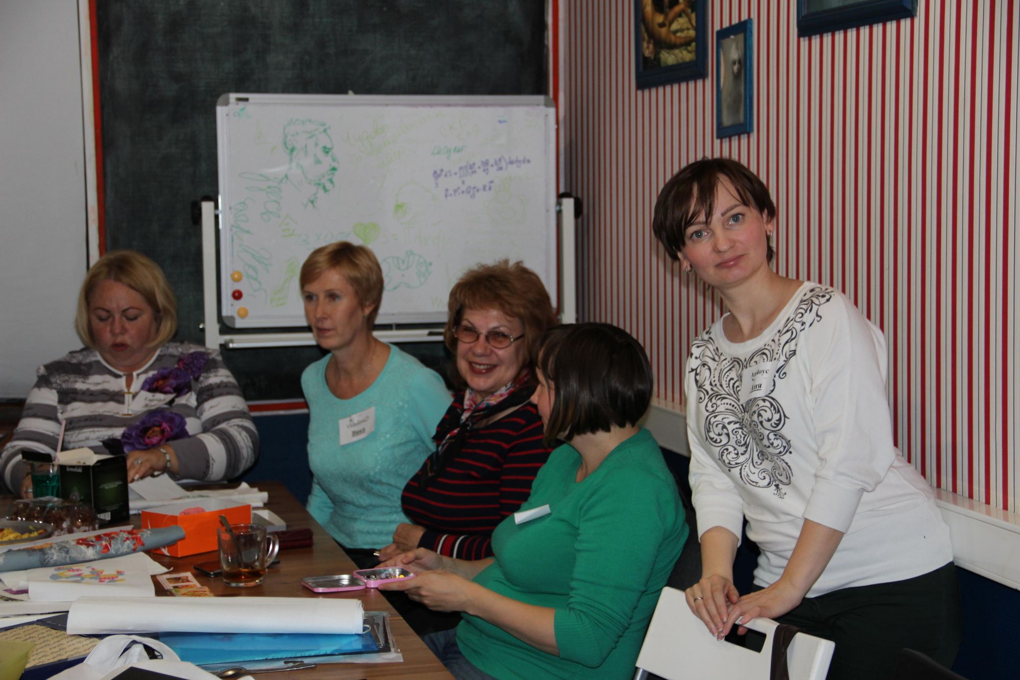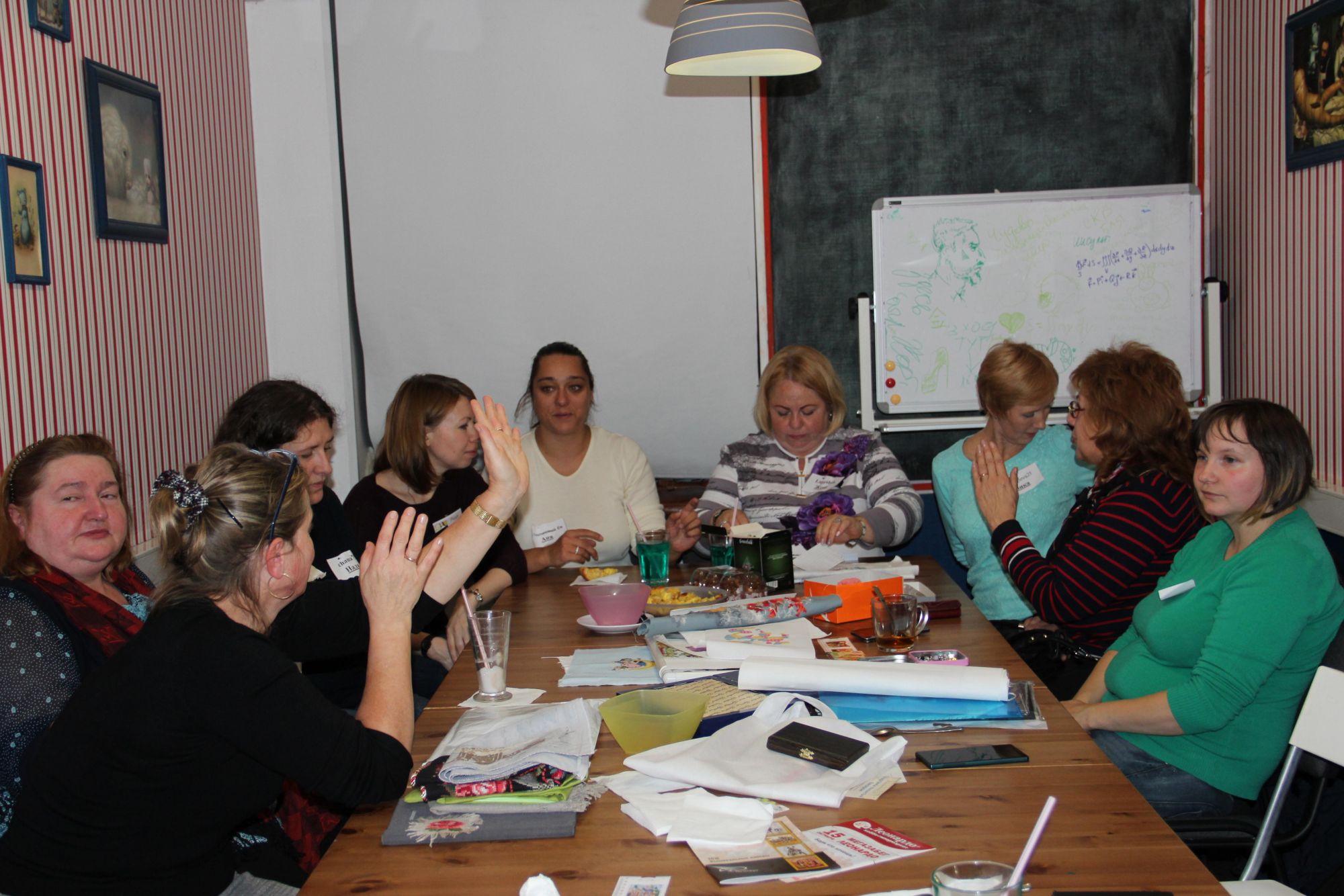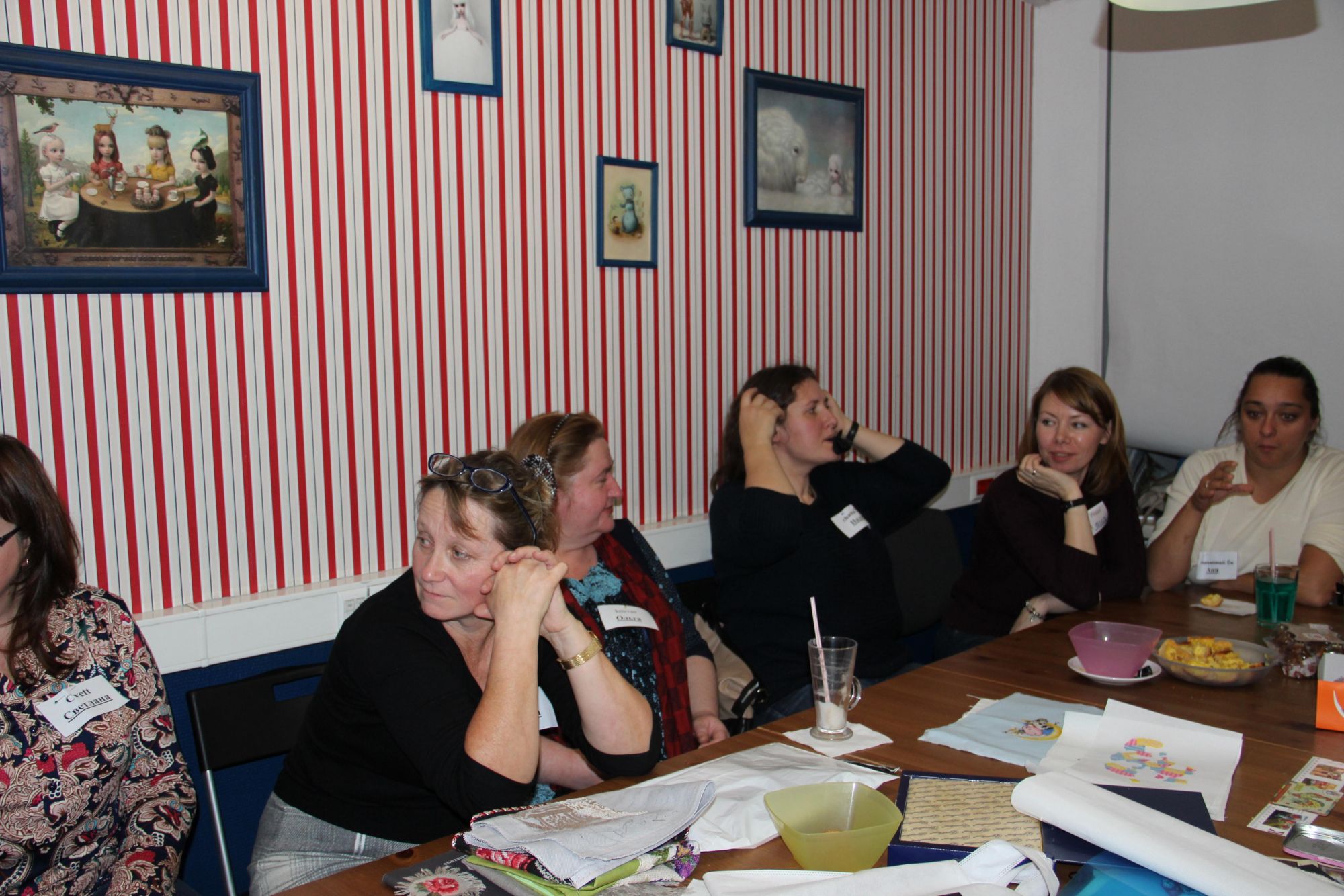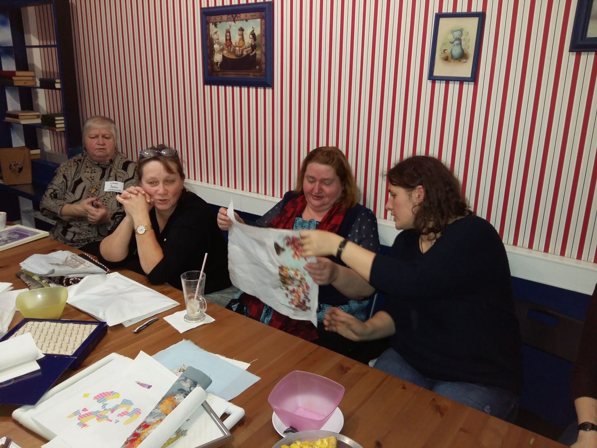 8 октября 2016 Итак, приступим! Встреча у нас в этот раз была самой многочисленной за все то время, что я хожу (может, старожилы меня поправят и скажут, бывал ли еще бОльший аншлаг) Наше любимое антикафе на такие масштабы не рассчитано, но как говорится - в тесноте, да не в обиде! Слева направо I_Konst, Cvett, marusya64, ketevan, chana75, Peppi, Платиновый Еж, Lapyshok, Vkiseleva21, Galina*, nicvo4ka, Maury. Стоят monstrochka, Анчоус, Svetl@n@. Позже еще подошли ketmis и teplos. Аня примеряет чудесное украшение, которое принесла показать Вика Vkiseleva21, очень яркая и в то же время нежная работа! На двух последних фото: Аня Платиновый Еж выиграла фиалочки от Жени Lapyshok, а Аня Анчоус рассматривает вышивку Инны teplos Наталья2013, yuss, Marteire и 31 других сказали спасибо Поделиться сообщением Ссылка на сообщение