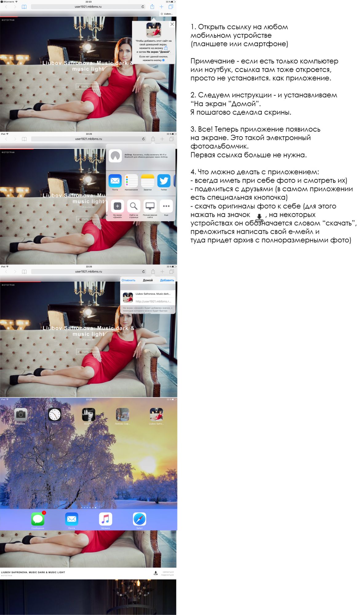 5 января 2018 Девочки, фото хоть и не так много (около 50), но для форума многовато, да и тяжелые они. Я подумала залить их в одну удобную штуку, в которую я для своих заказчиков снимки оформляю. Вот ссылка на фото http://user1921.mblbms.ru/jsm7avihb0 Там все очень-очень просто и удобно, но на всякий случая я подробную фотоинструкцию прилагаю Ссылка рассчитана на мобильные и планшеты, но на обычных компьютерах тоже можно и просмотреть и скачать фото, если надо будет. Платиновый Еж, ЛюдмилаЕр, I_Konst и 24 других сказали спасибо Поделиться сообщением Ссылка на сообщение