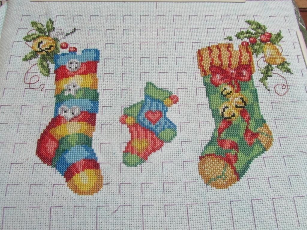 16 декабря 2015 Завершаем новогоднюю авантюру, в результате у вас должны получиться три носочка. Для оформления: - в раму гирлянды из носочков придется дошить прищепки, бант и бусы; - на пластике маленьким носочкам по желанию можно дошить бантик, сделать место для крепления подвесочки и обратную сторону (фетром или тканью). - если отдельными игрушками на канве, то можно дополнить вышитой обратной стороной (для этого прилагаю зеркальную схемку) или для объемности вышитыми отдельными элементами на пластике (конфетками, бантиками, пуговичками, звездочками). Итоги авантюры будем подводить уже в новом году и определим двух победителей, которые получат от дедушки мороза новогодний подарочек!) 18 этап, цвет 310 и 895 (бэкстич), прищепки цвет 436 и 738 (по желанию), бант и бусы цвет 347, 351, 498 (по желанию). Оригинал схемы от фирмы Janlynn "Cheery Christmas Stokings" ss-kostenko, Lakis, Татьяна И и 5 других сказали спасибо Поделиться сообщением Ссылка на сообщение